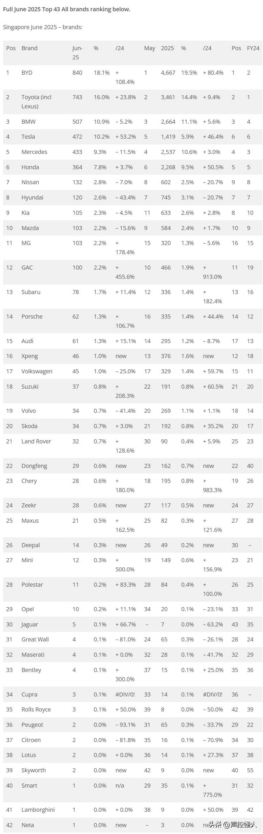 作为东南亚最发达的国家新加坡,丰田终被比亚迪超越了。就连我也不曾想到,比亚迪的冠军会如此地快拿到。
