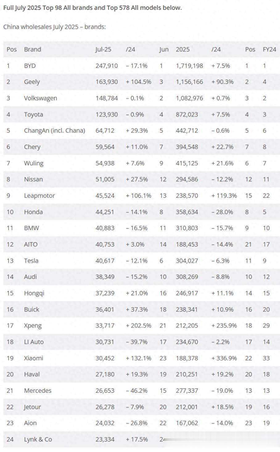 进入今年以来,国产车在国内的市占率已经超过了70%,而日系车从之前的20%多腰斩到2025年7月的12.94%。所以如果我们更努力的话,跌破10%也是指日可待的。