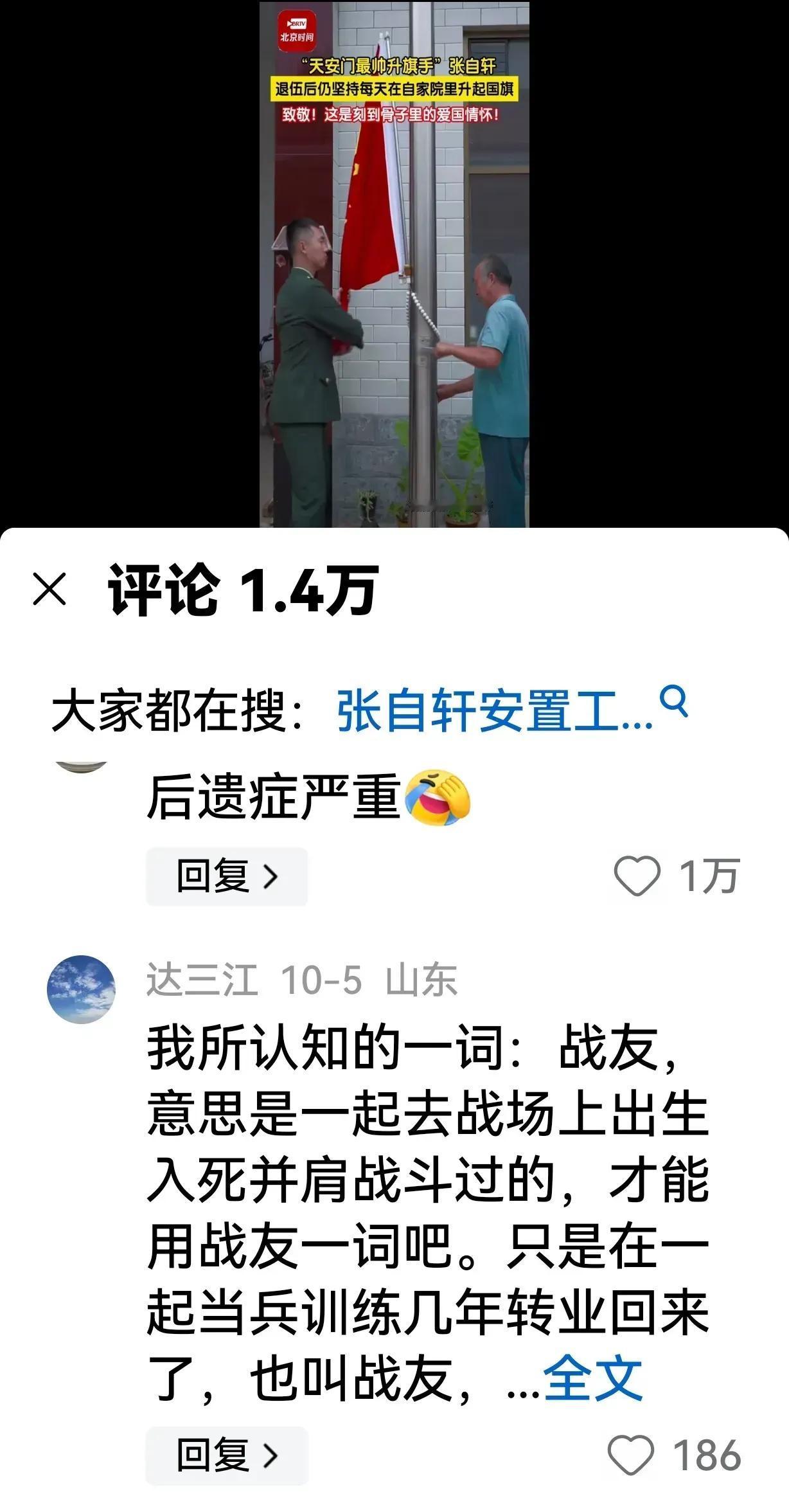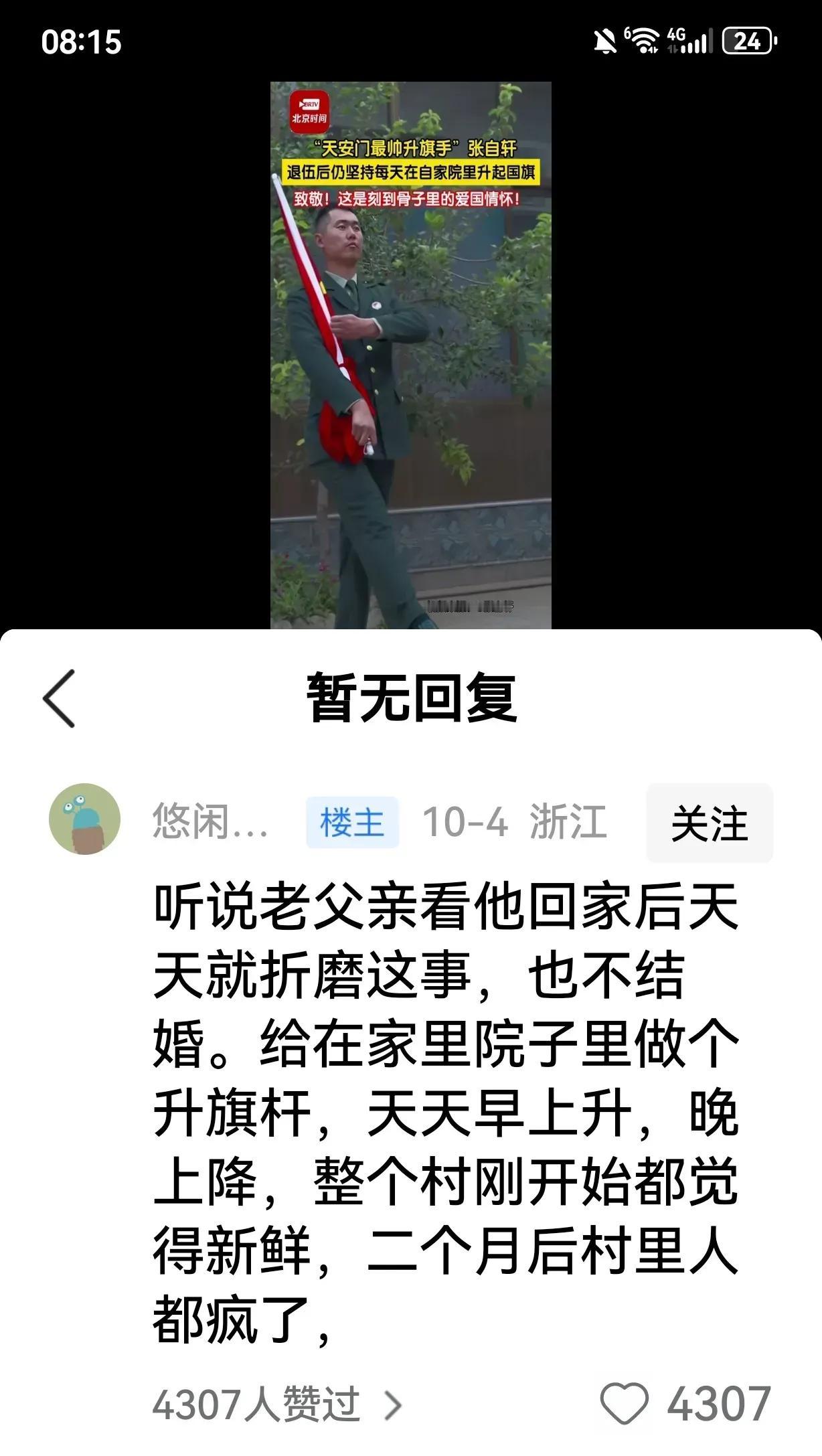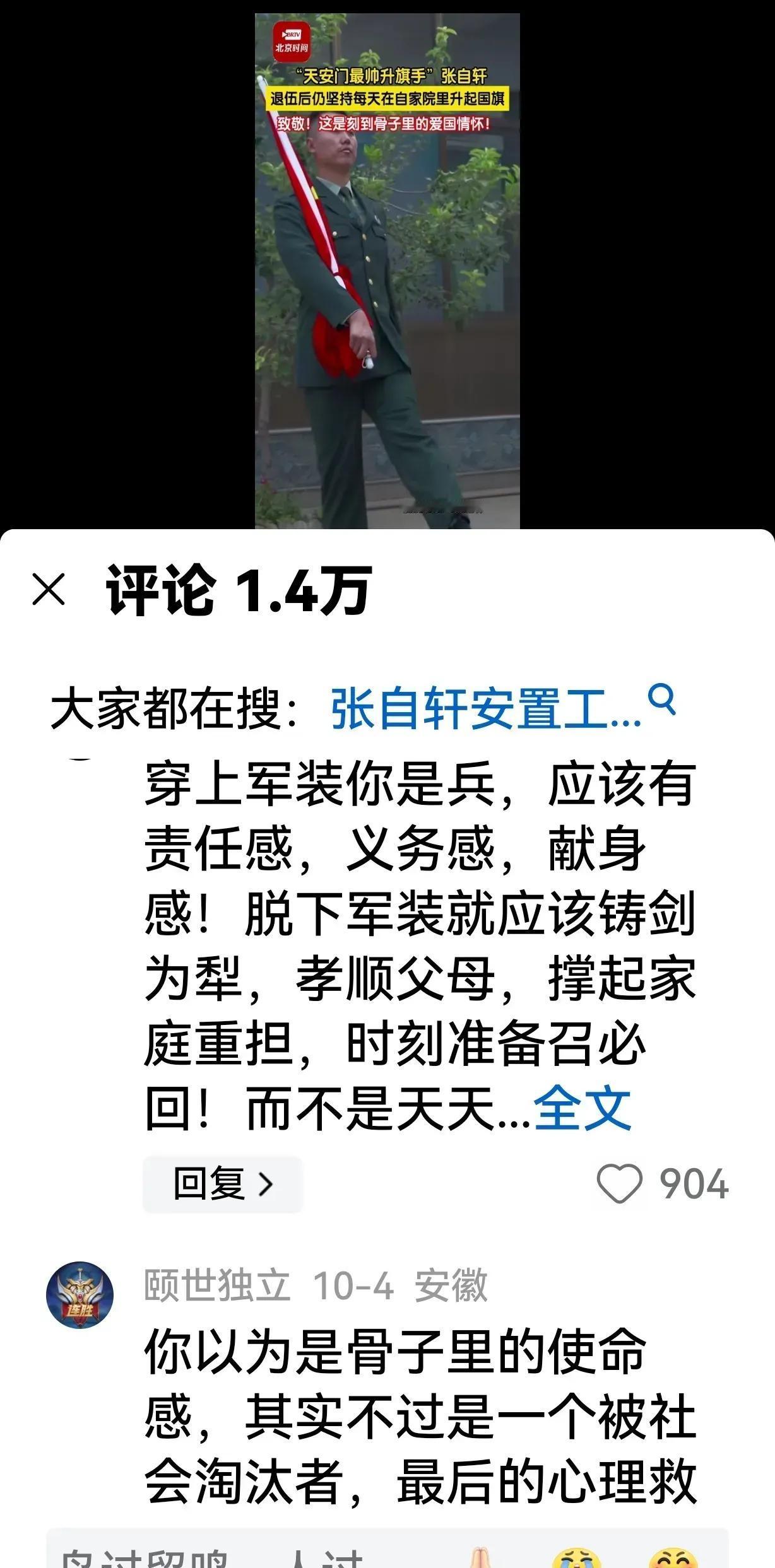 【离开岗位,也要开导适应新生活的思维】 一位升旗手,离开岗位,却有点魔障了,家人