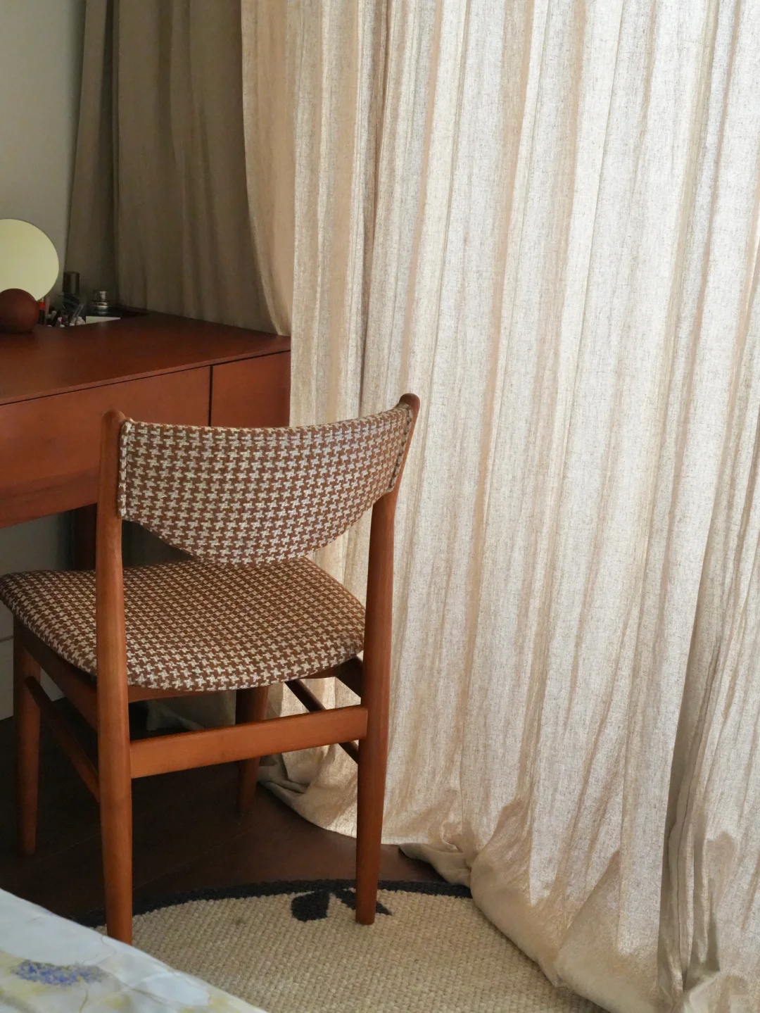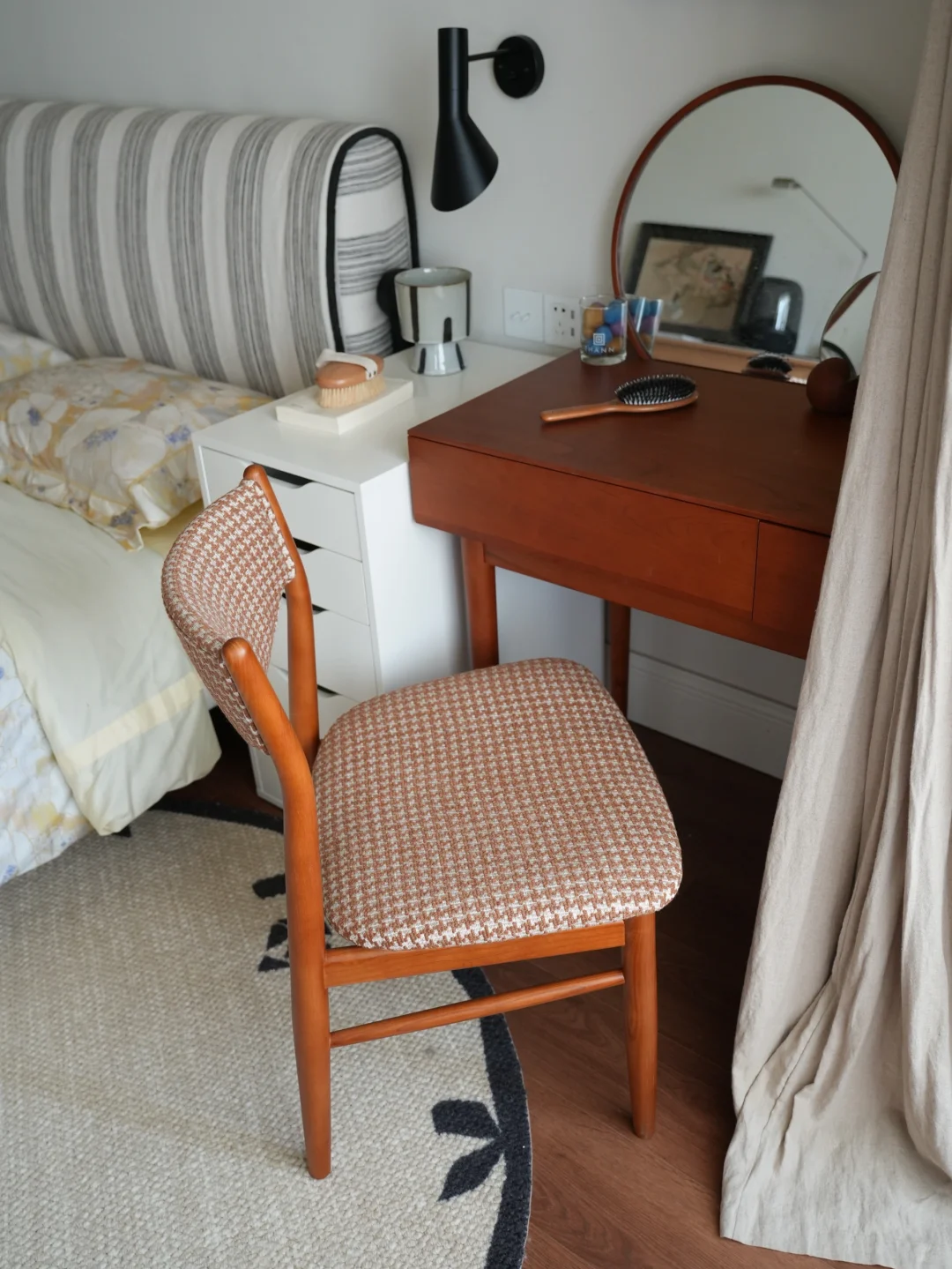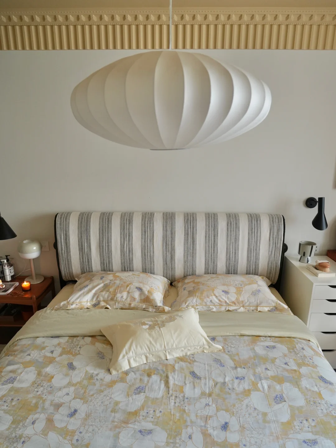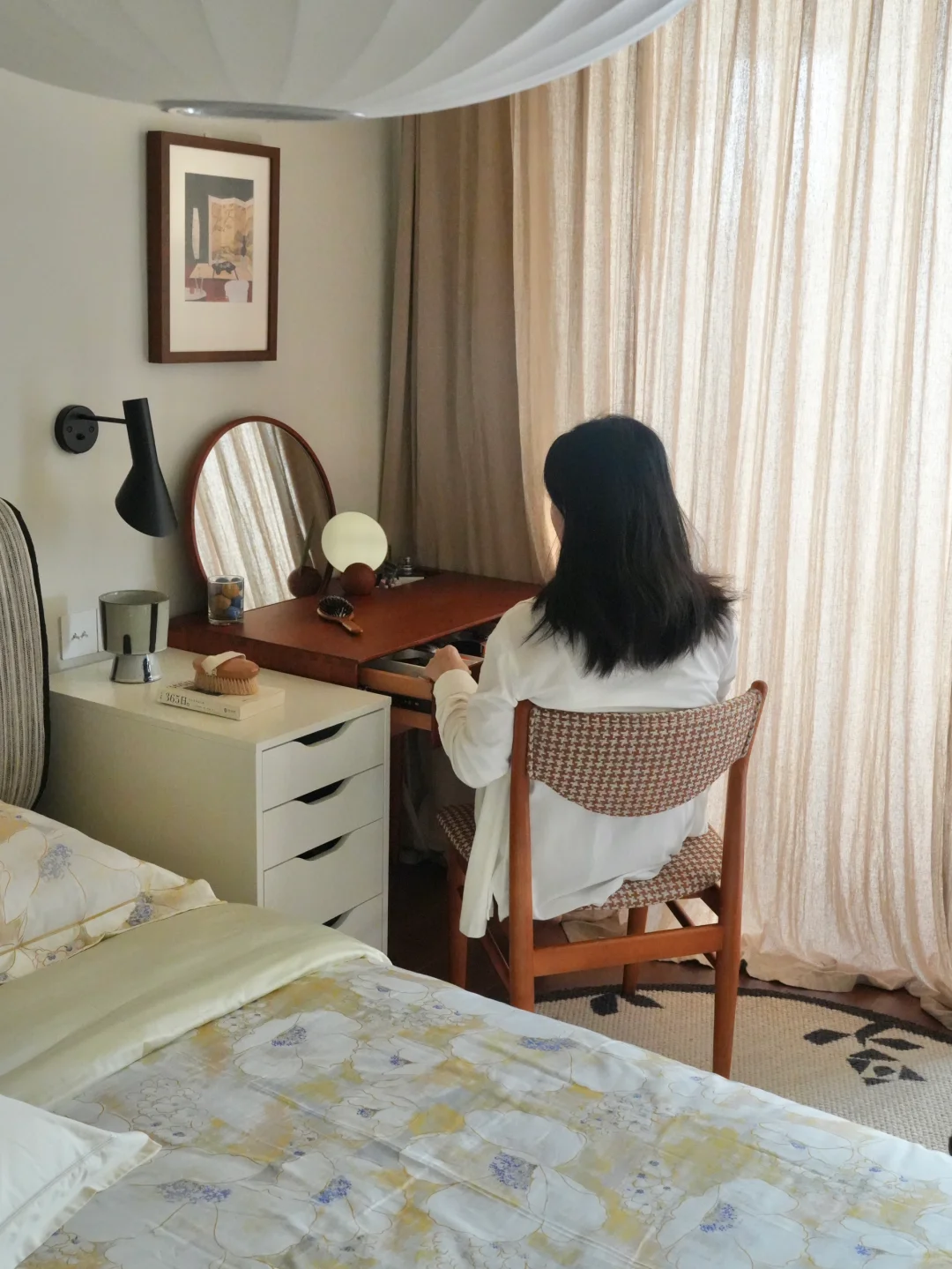 🛏 关于我的卧室: 宽3.1mx长5.3m 集休息,梳妆穿搭,办公于一体 📚从左到右的布局: 1️⃣ 双人沙发 2️⃣ 床和床尾柜 3️⃣ 梳妆台和衣架 4️⃣ 阳台是办公桌和展示柜 因为没有定制柜 可以随着自己的的心情 调整卧室的布局氛围 温柔复古的感觉舒服又静谧 🎨 颜色: 🤍 法式复古的双 开门 💛 黄色石膏线屋顶,装饰画,明亮的奶黄四件套 🤎 木色中古的梳妆台和梳妆椅 🖤 优雅耐看的支吾原野床 床头面料采用37%木天丝+46%细亚麻的材质 比市面上的常规亚麻更加透气亲肤 适合高度的软包床头,平时倚靠更舒服软弹 也采用了可拆洗的设计,不用担心打理问题 床体是AB分区的实木排骨架 除了安装入户便捷省力 整体也是结构稳定不晃动 - 入住一年半了 双开门的款式和颜色也是越看越有质感 波浪线的黄色屋顶赋予了卧室一点子浪漫 整体的单品都寻求复古浅色的低饱和,温润耐看 -