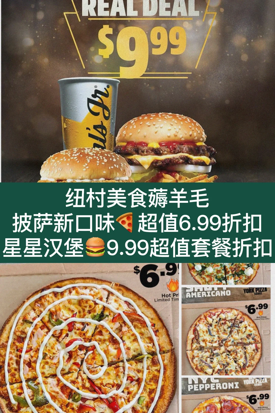 [向右R]纽村星星⭐汉堡店(Carls Jr)又来超值优惠套餐啦💰9.9四件套!包括一个双层芝士汉堡、鸡肉汉堡、小薯条和一杯小饮料![赞R]