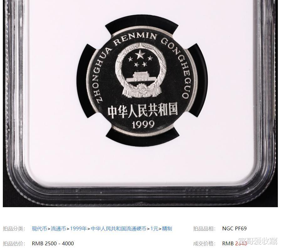 上面这枚就是1999年的牡丹1元精制币,它的估价达到了4000。