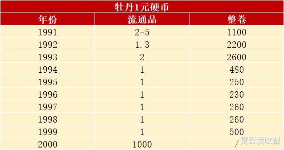 很多人可能不知道!牡丹1元硬币,其实每年都会发行少量的精制币。