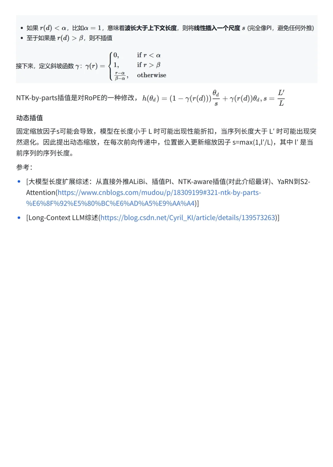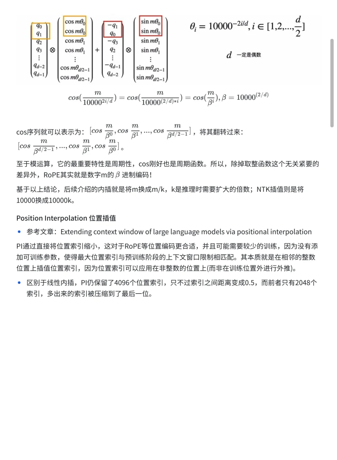 前面的联想面经中提到过扩展大模型上下文窗口有多种方法。 🐬其中,插值法通过缩放位置索引,可以将未见过的长位置映射到预训练阶段见过的短位置,从而扩展上下文长度。 🐬这种方法的好处是,能够在不牺牲太多性能的情况下,显著扩展上下文窗口。 一起来看看这种方法有哪些具体实现方法吧!