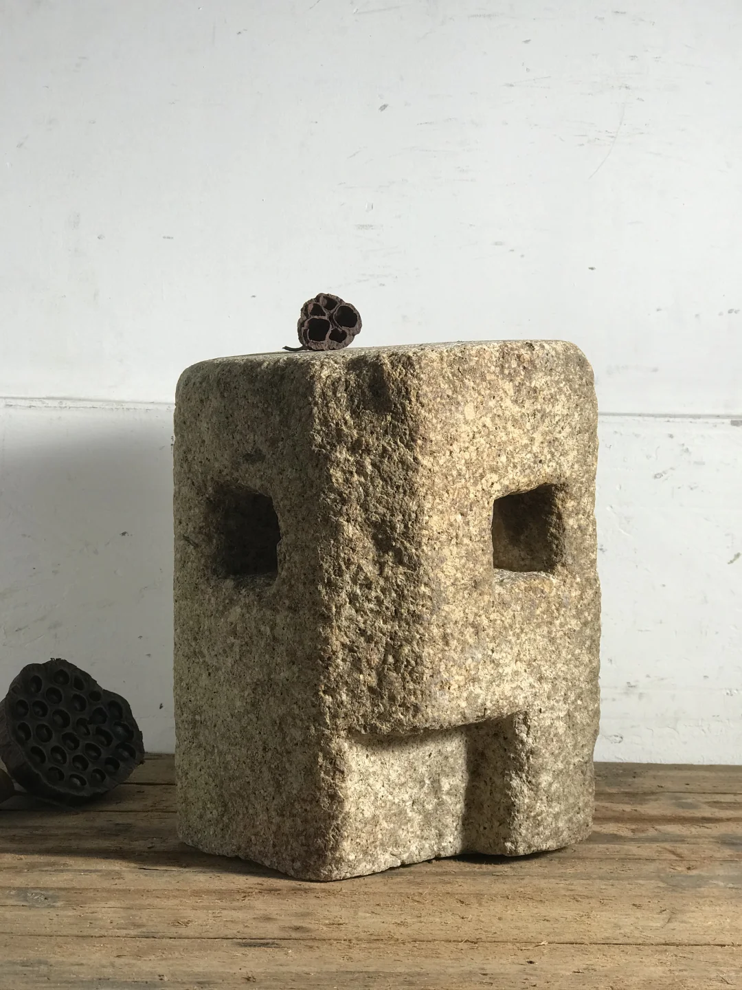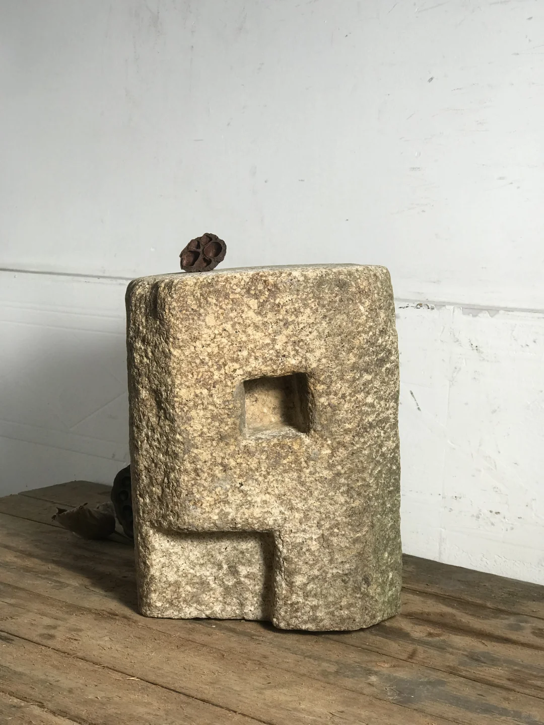 老宅柱基石、案石、麻石墩;极简侘寂复古摆件;摄影造景道具;民宿硬装柱石。20*20*28厘米高,重约40斤。