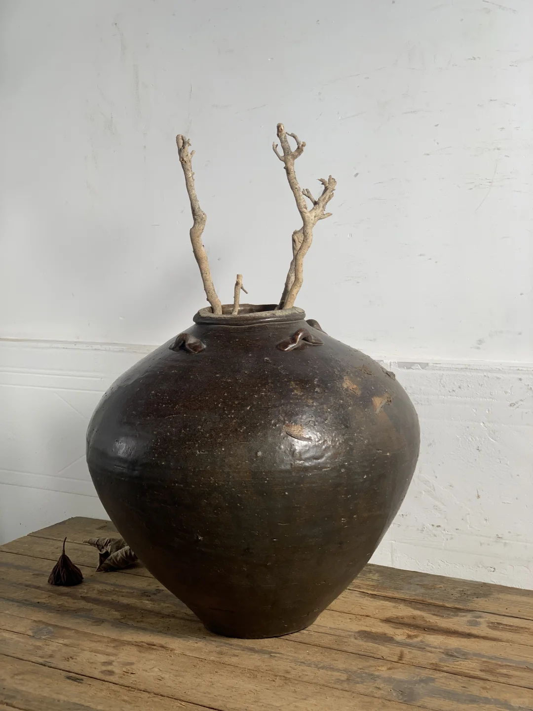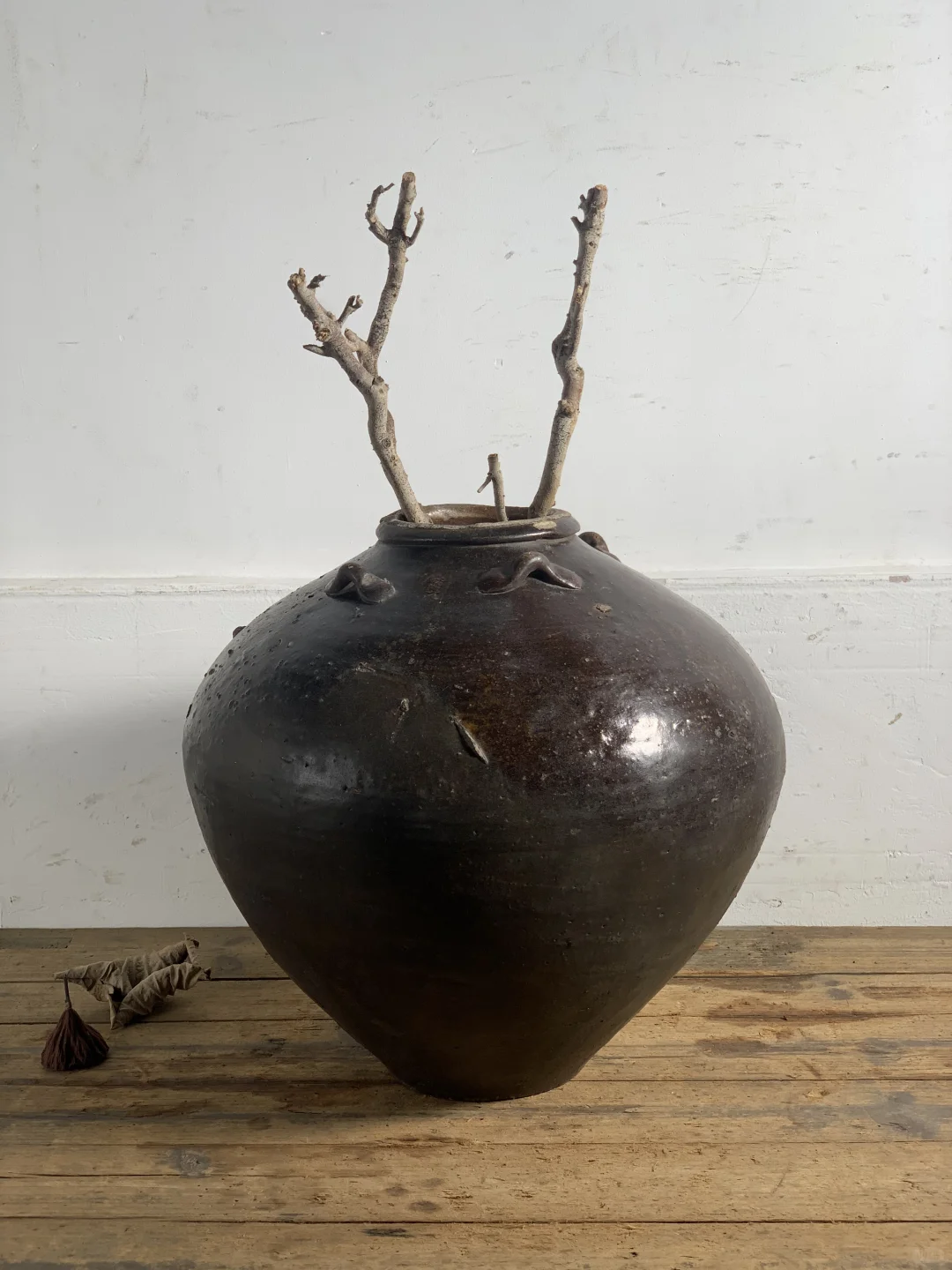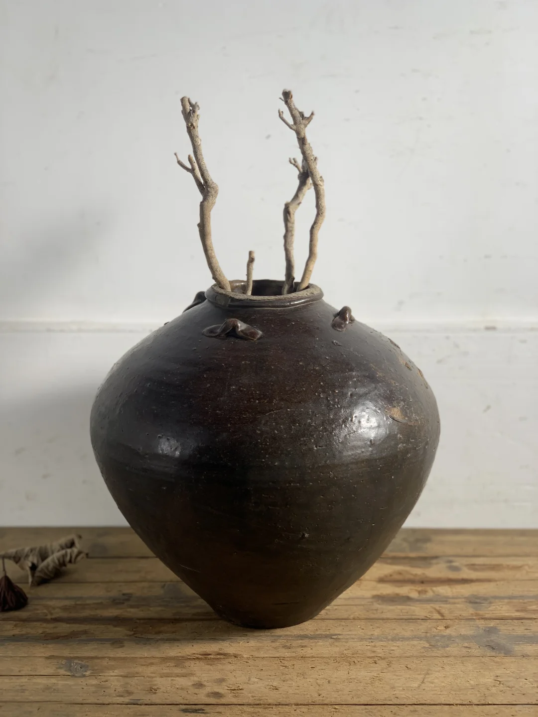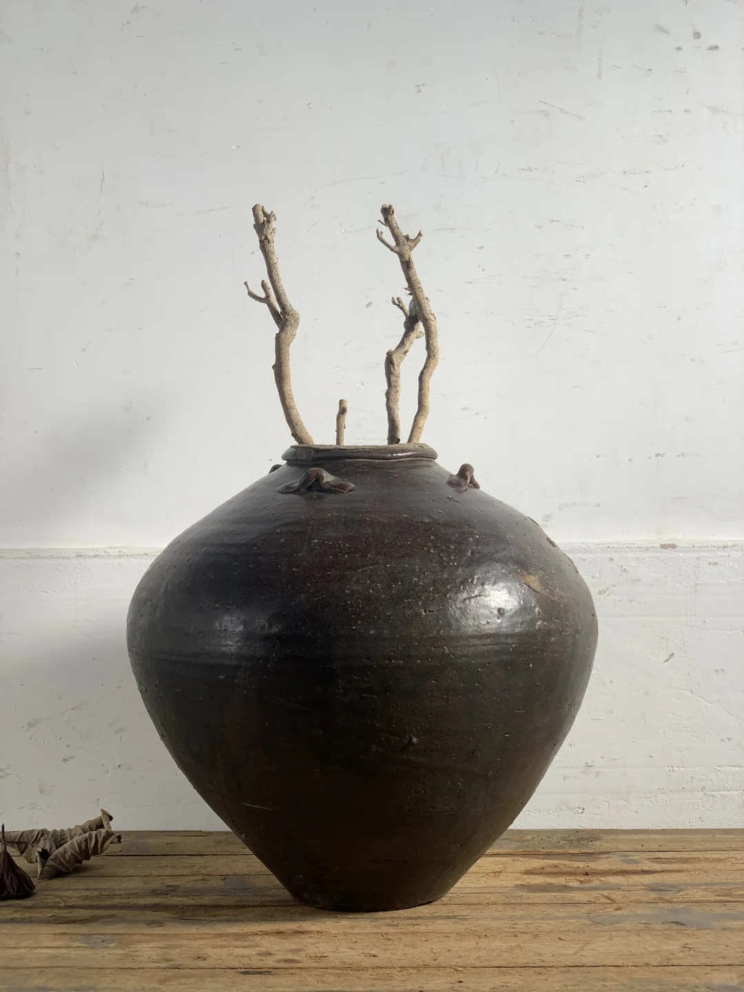 四耳落款大肚罐;花艺插花;民宿茶室侘寂摆件