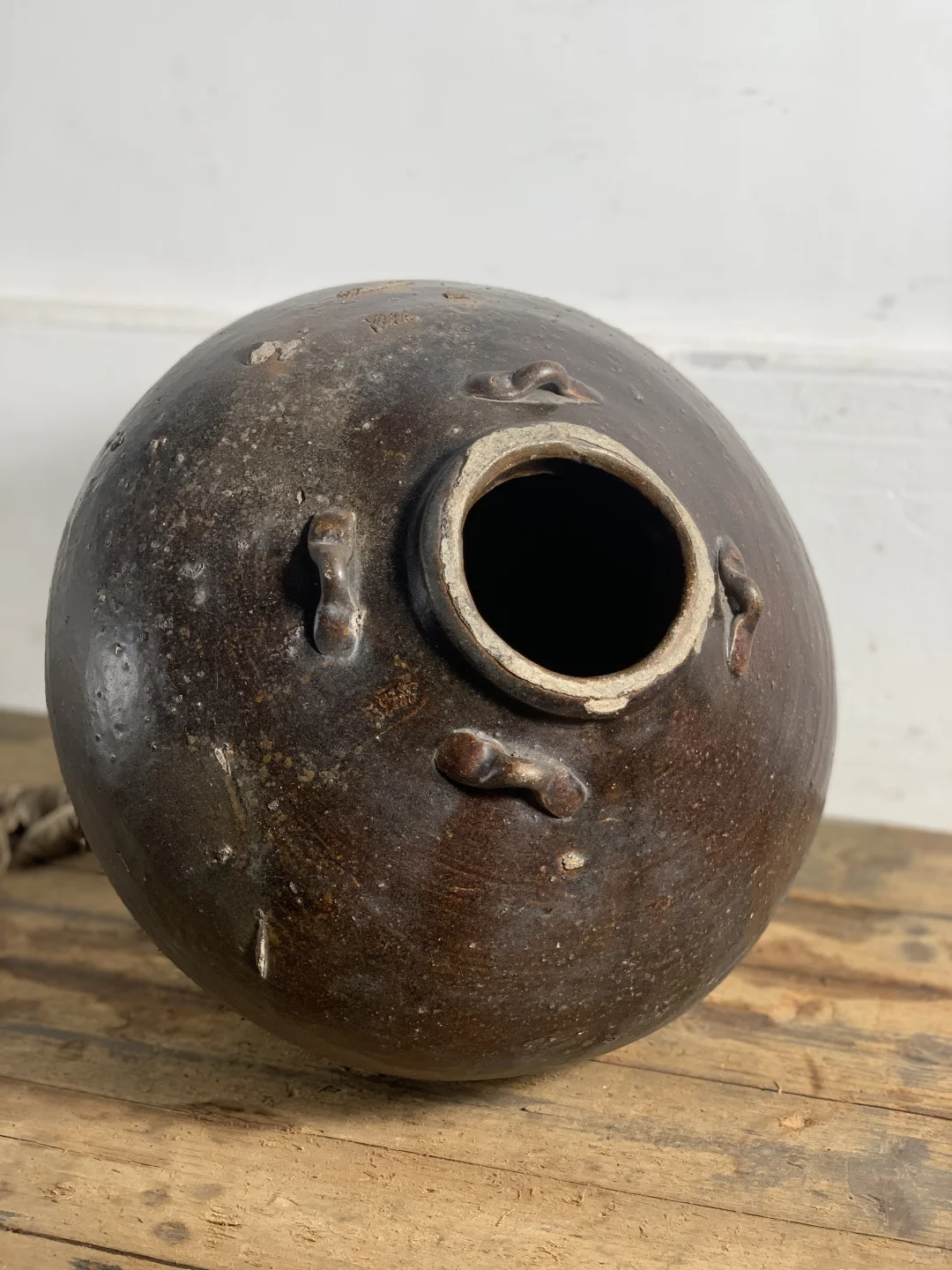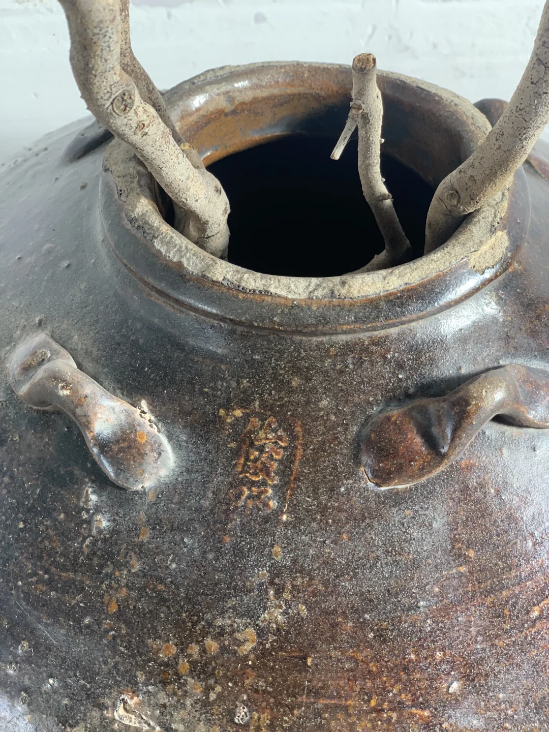 四耳落款大肚罐;花艺插花;民宿、茶室、书房等极简侘寂摆件;30*30*30厘米高,口径8厘米宽。