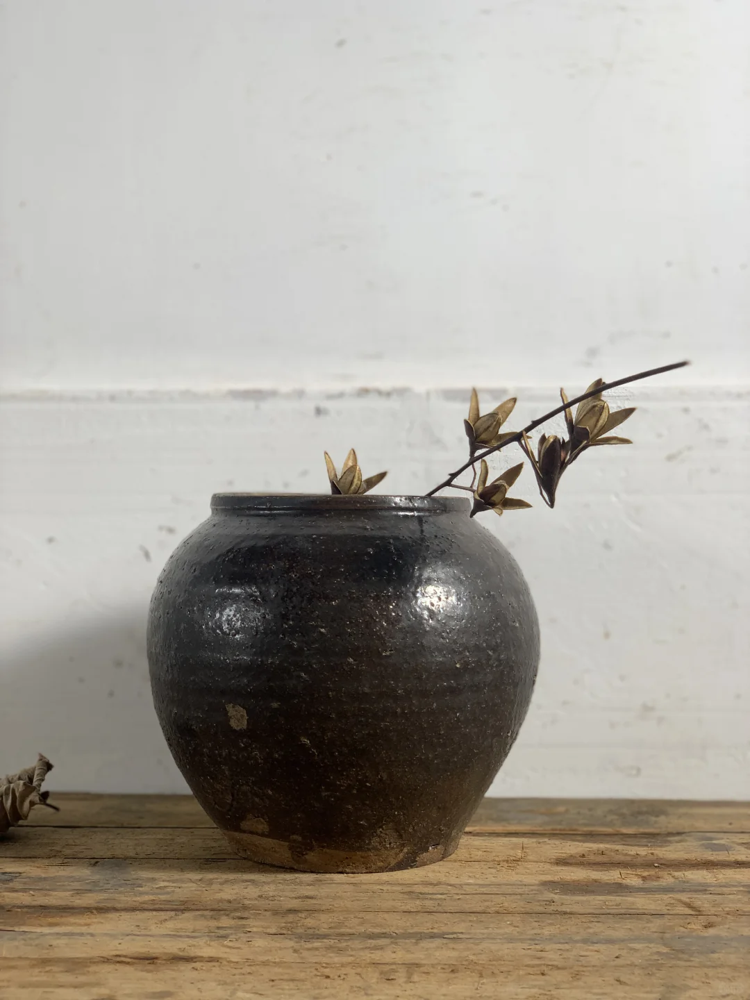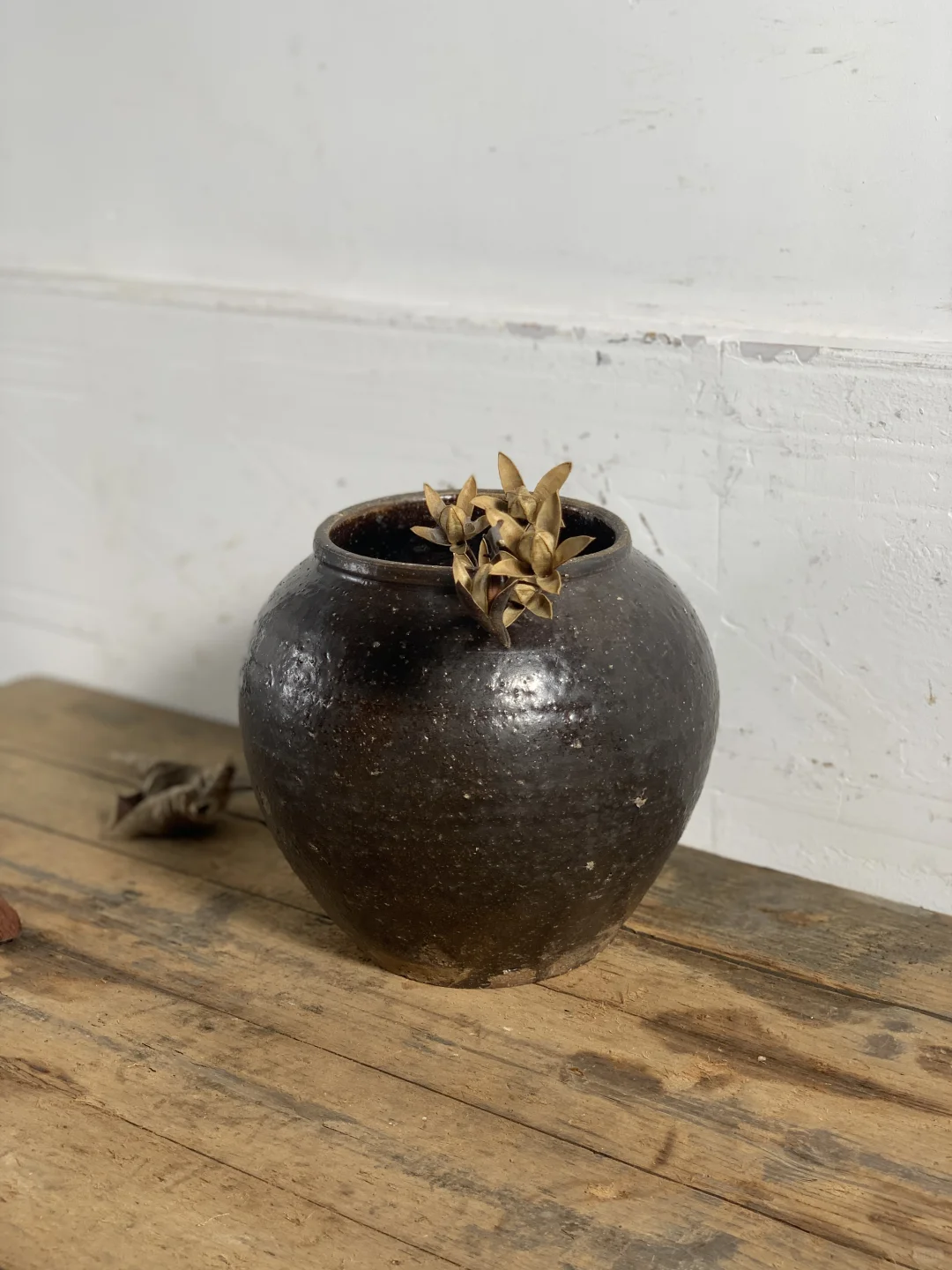 小陶罐;花艺插花老陶罐;庭院、民宿、书房、茶室极简侘寂空间摆件;18*18*17厘米高。口径11厘米宽。