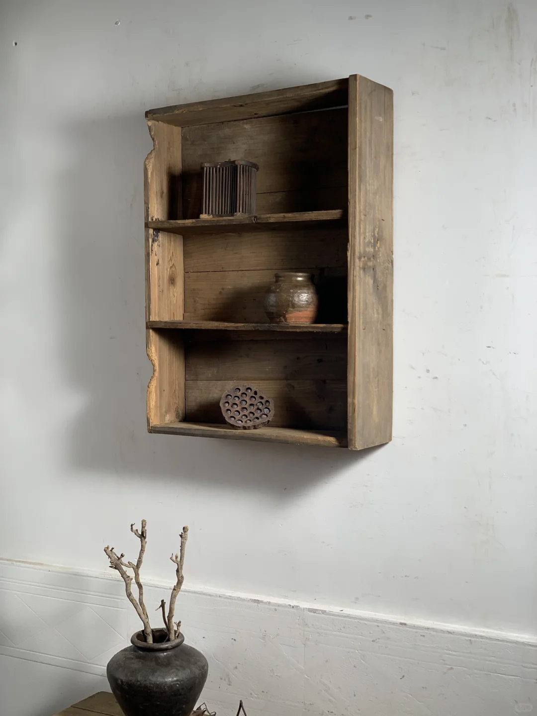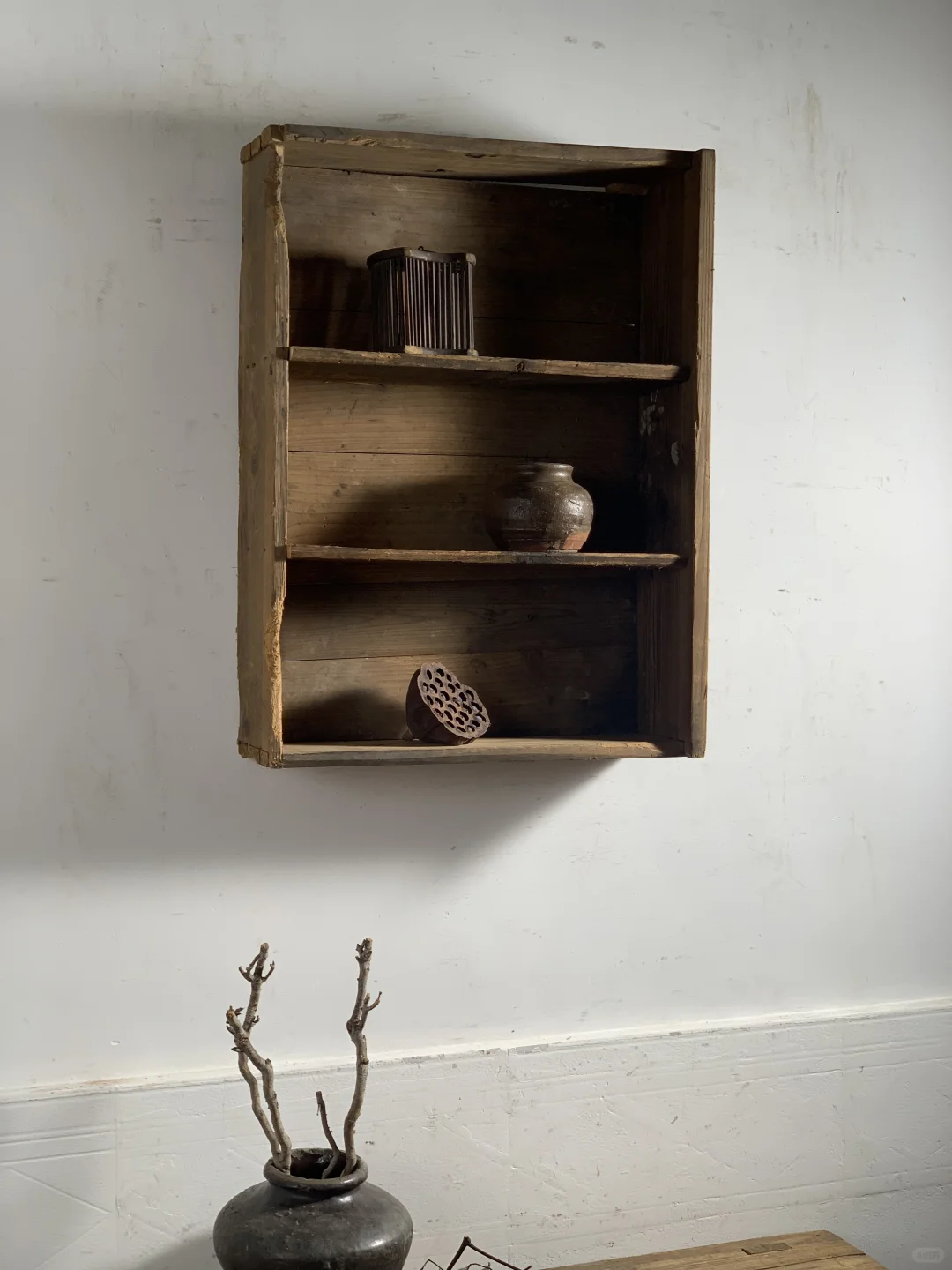 茶具柜、壁挂置物格;民宿、书房、茶室等极简侘寂软摆件;58*43*12厘米深。旧料手工改造,略显粗糙。