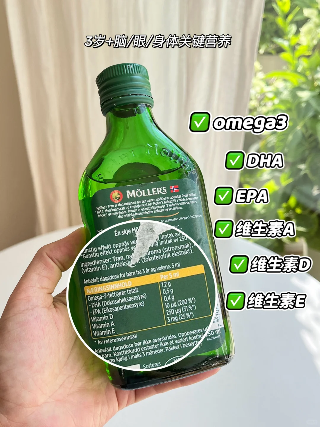 🔺Omega-3:每5ml鱼油含Omega-3达到1000mg就是非常不错的!(⚠️每日Omega-3摄入量达1000mg,才能满足人体摄入需求)