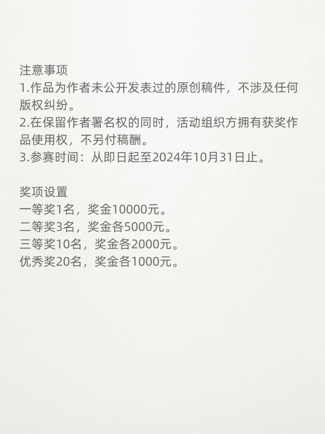 3.参赛时间:从即日起至2024年10月31日止。