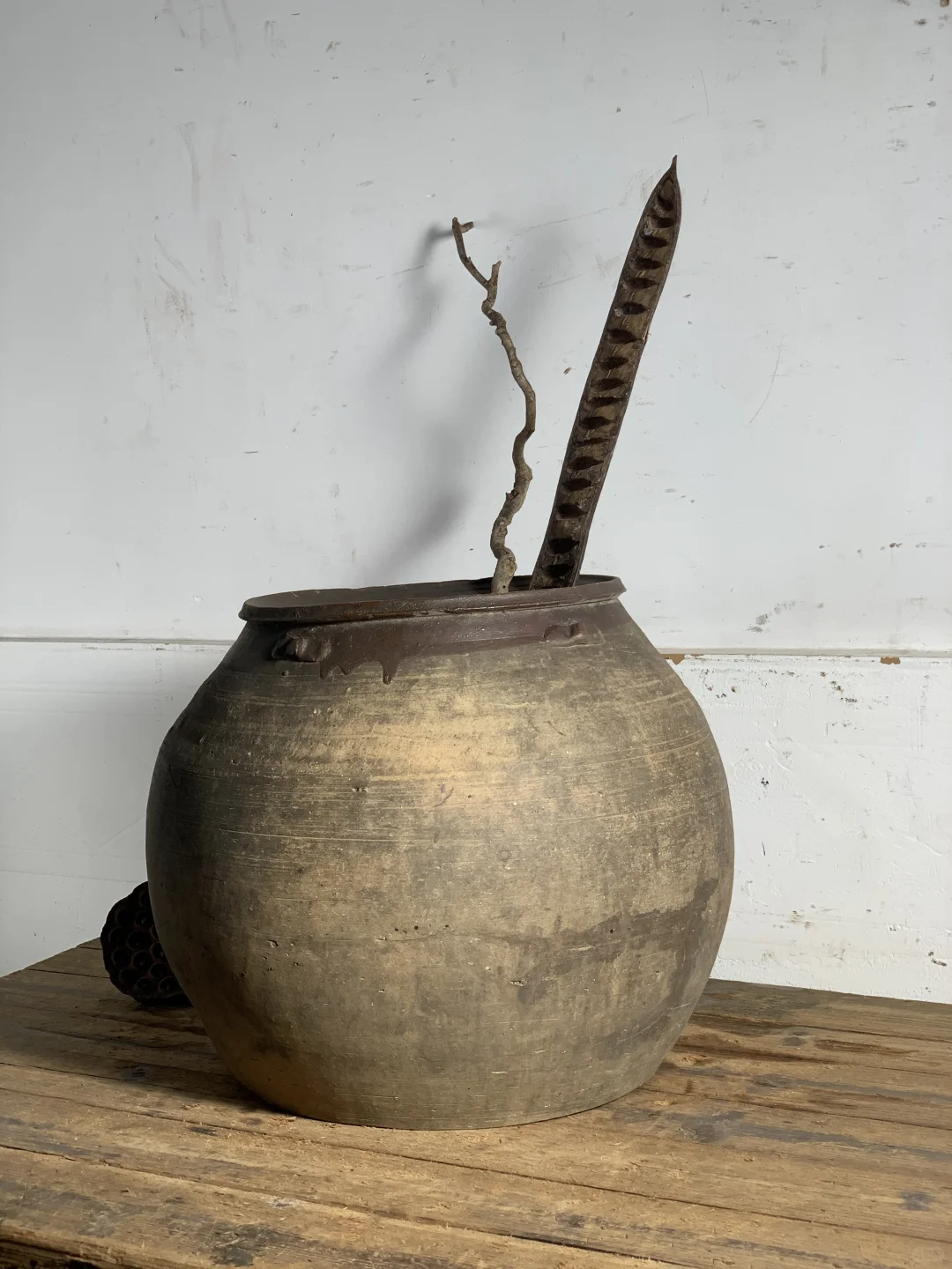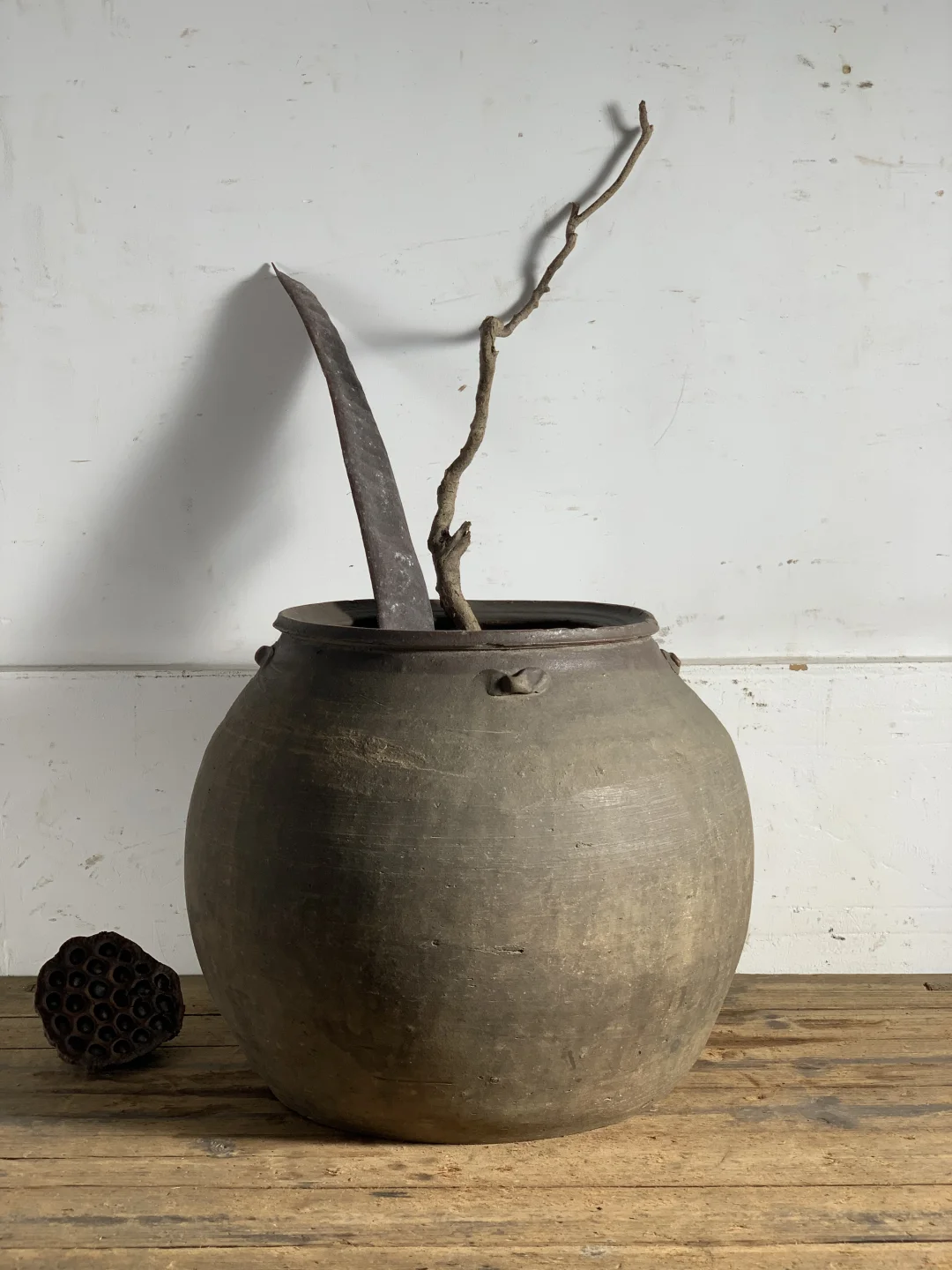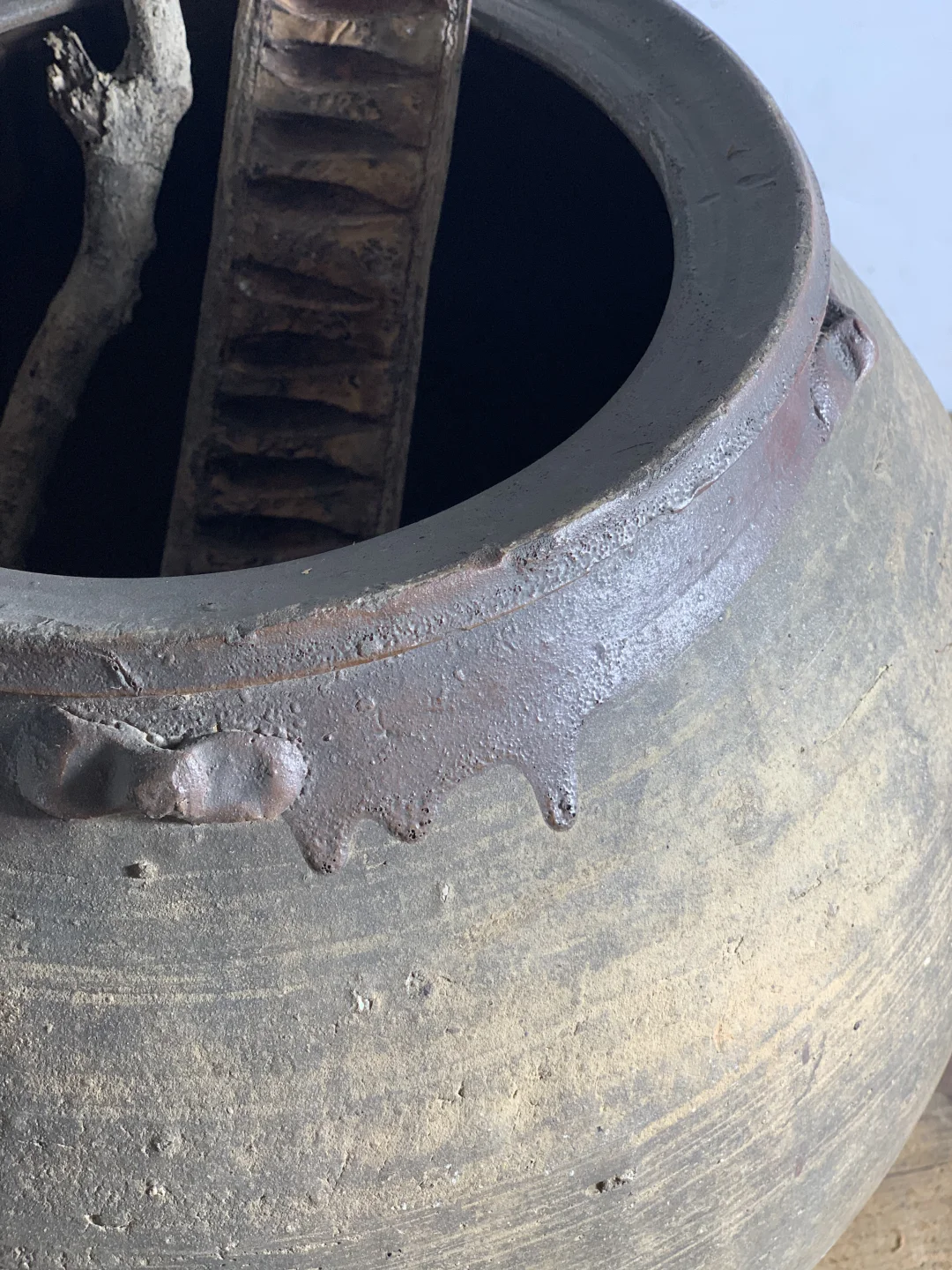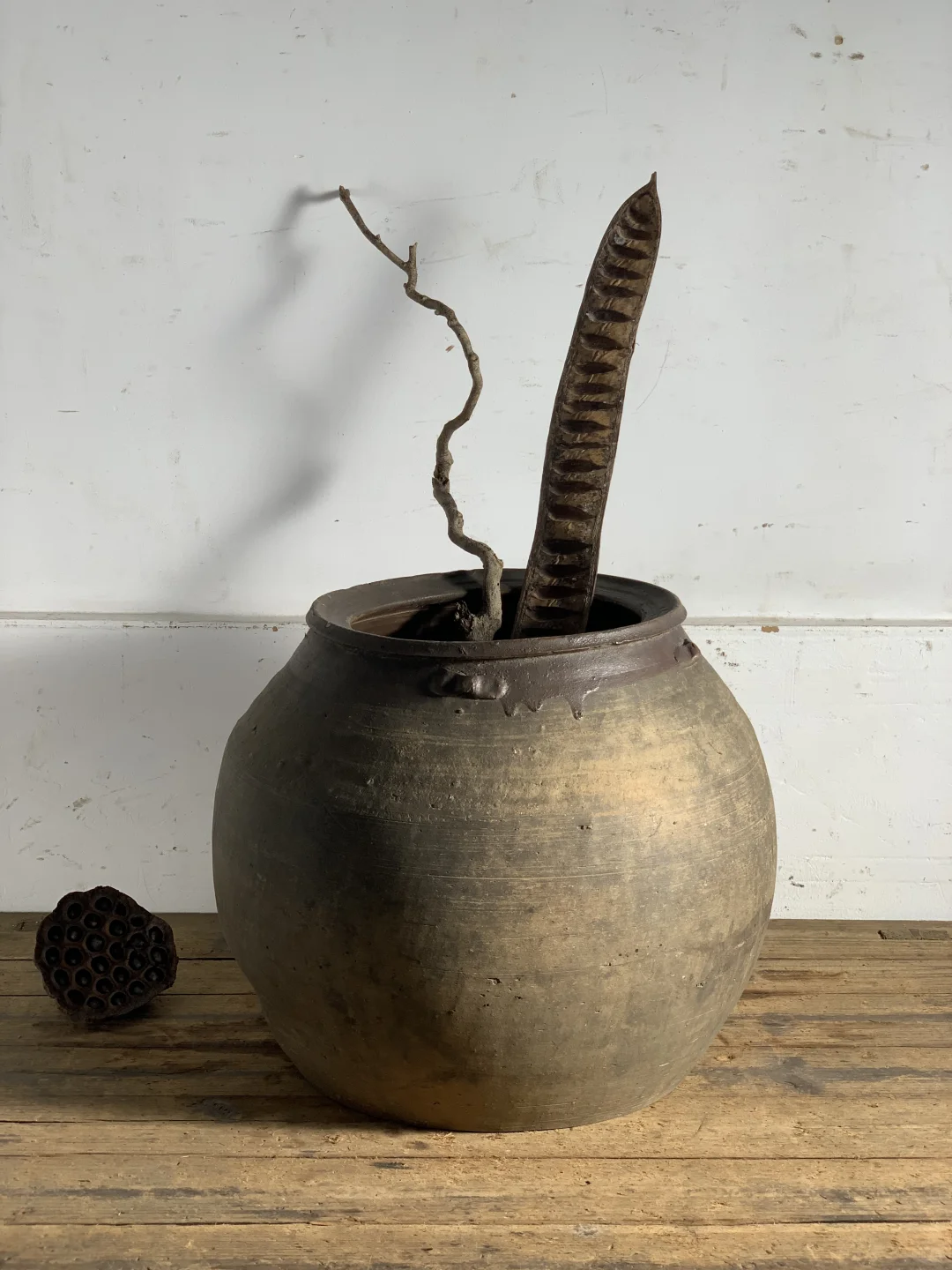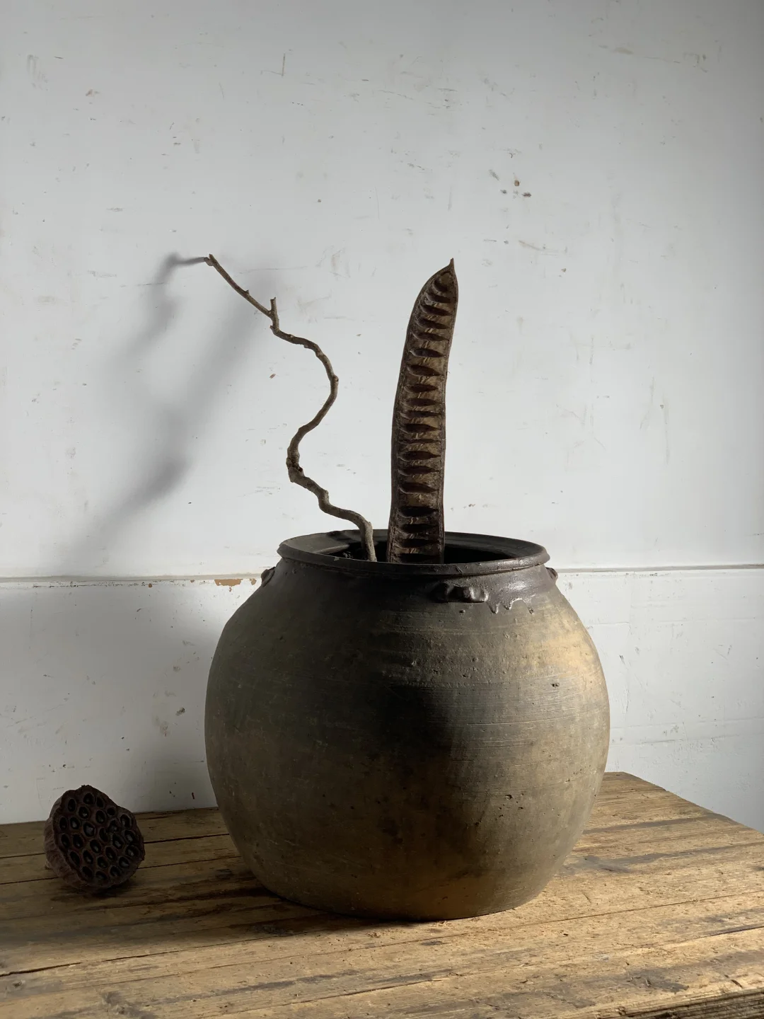 素陶罐、备前烧奶滴罐;花艺插花;民宿、茶室、书房等极简侘寂摆件;33*33*30厘米高,口径18厘米宽。