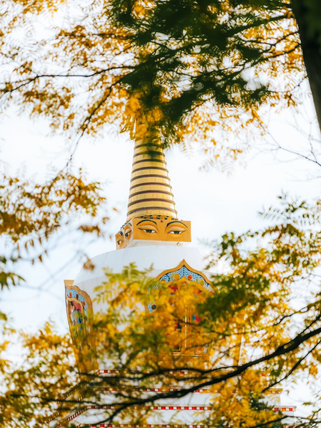 佛塔的建筑风格很有特色,塔顶有佛眼和眼光门,象征着佛的眼睛时刻注视着世上的万物