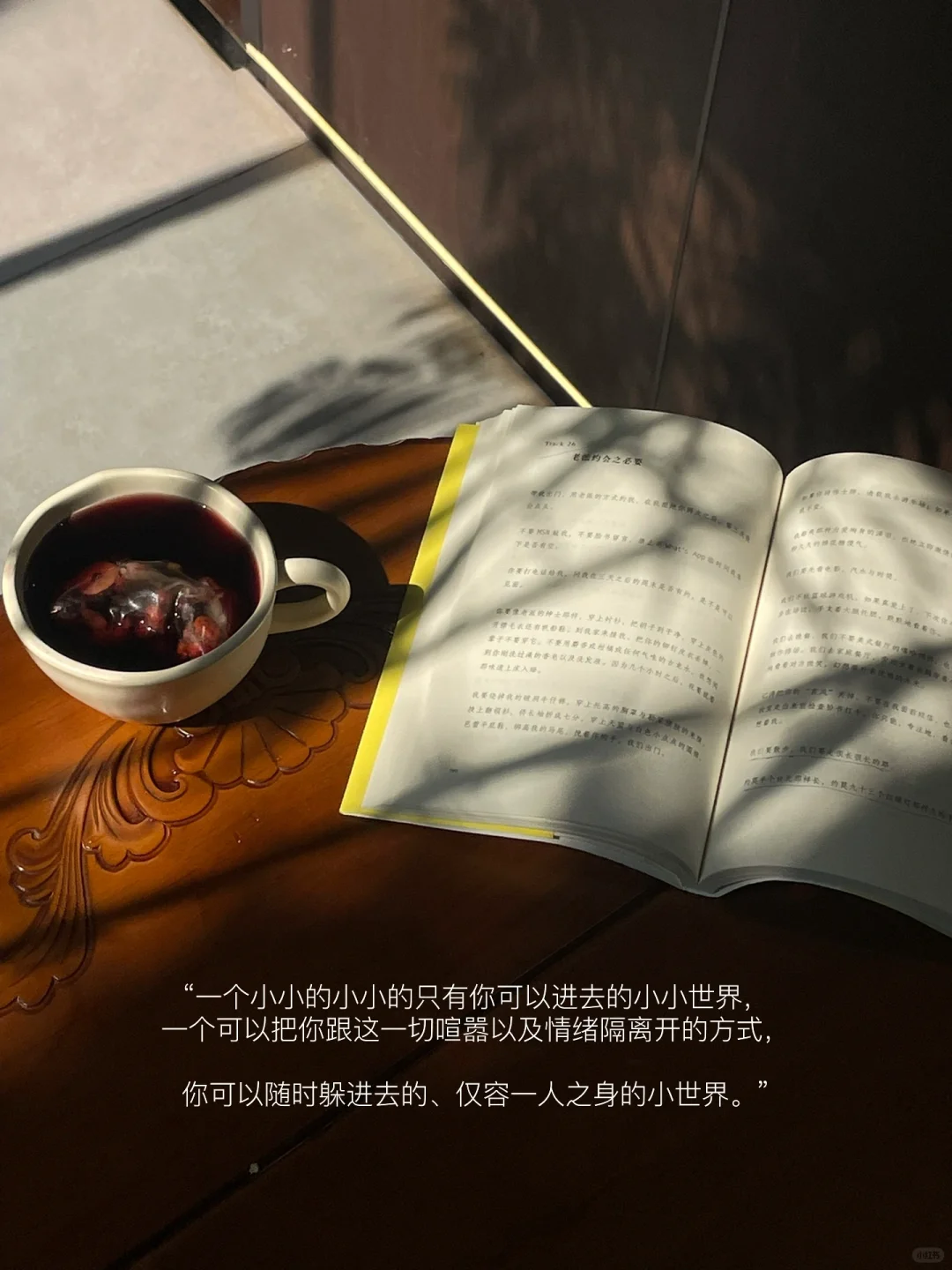 “一个小小的小小的只有你可以进去的小小世界,一个可以把你跟这一切喧嚣以及情绪隔离开的方式,你可以随时躲进去的、仅容一人之身的小世界。”
