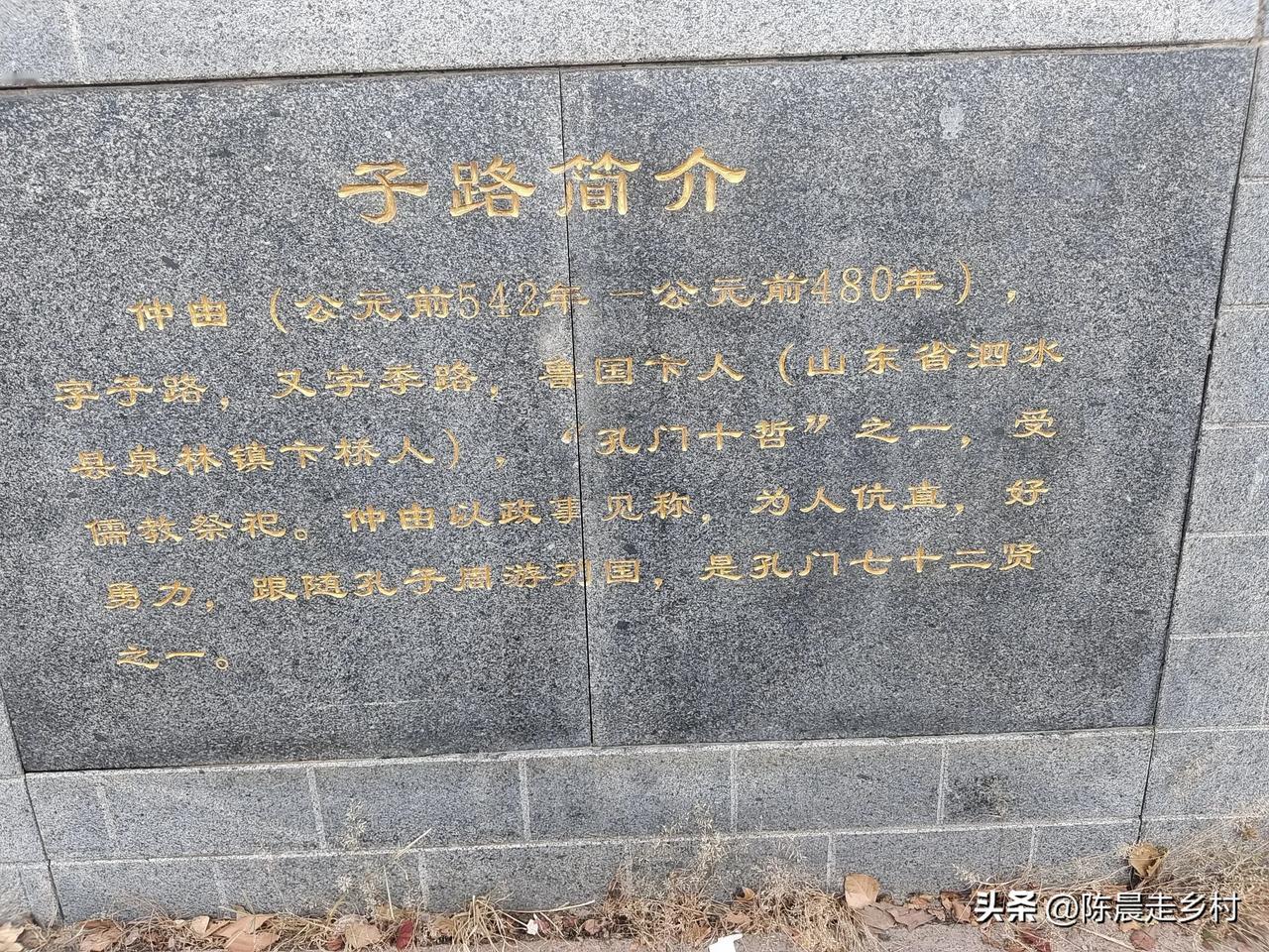 在乡村一广场上游玩,广场上矗立着一尊高大的雕像。像为孔子七十二贤之一的子路,想来