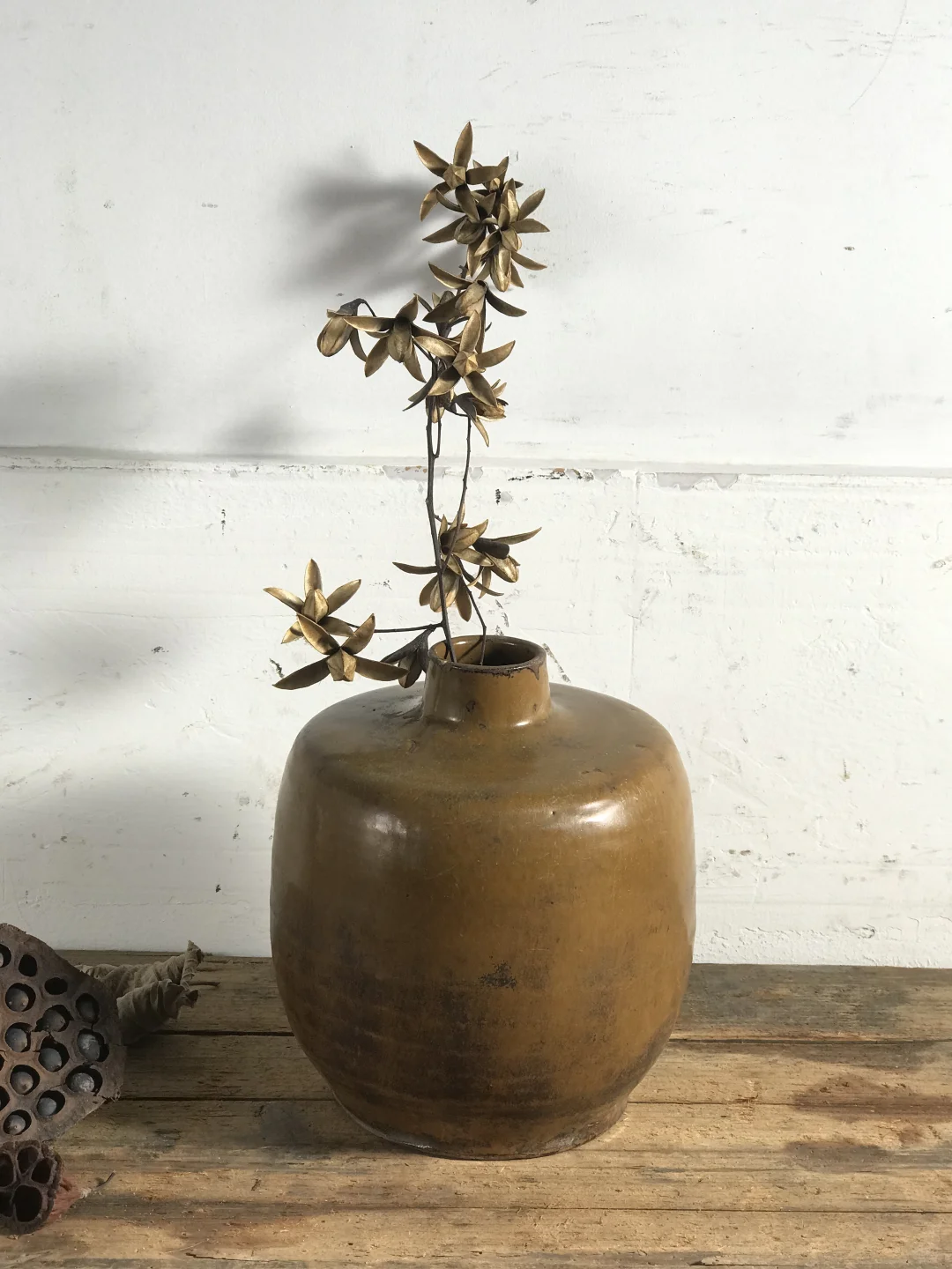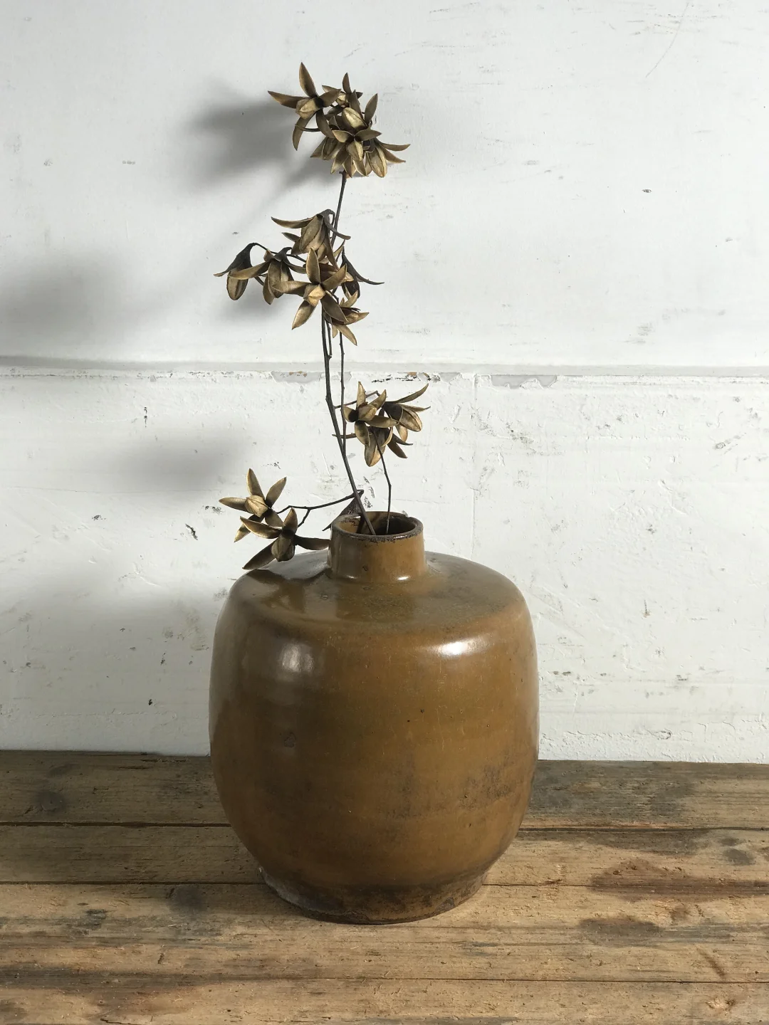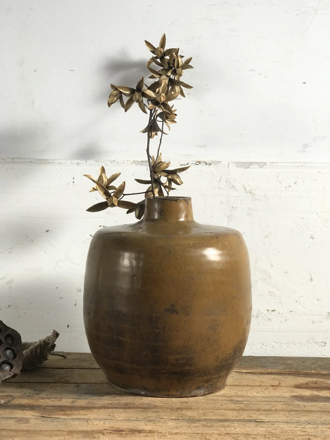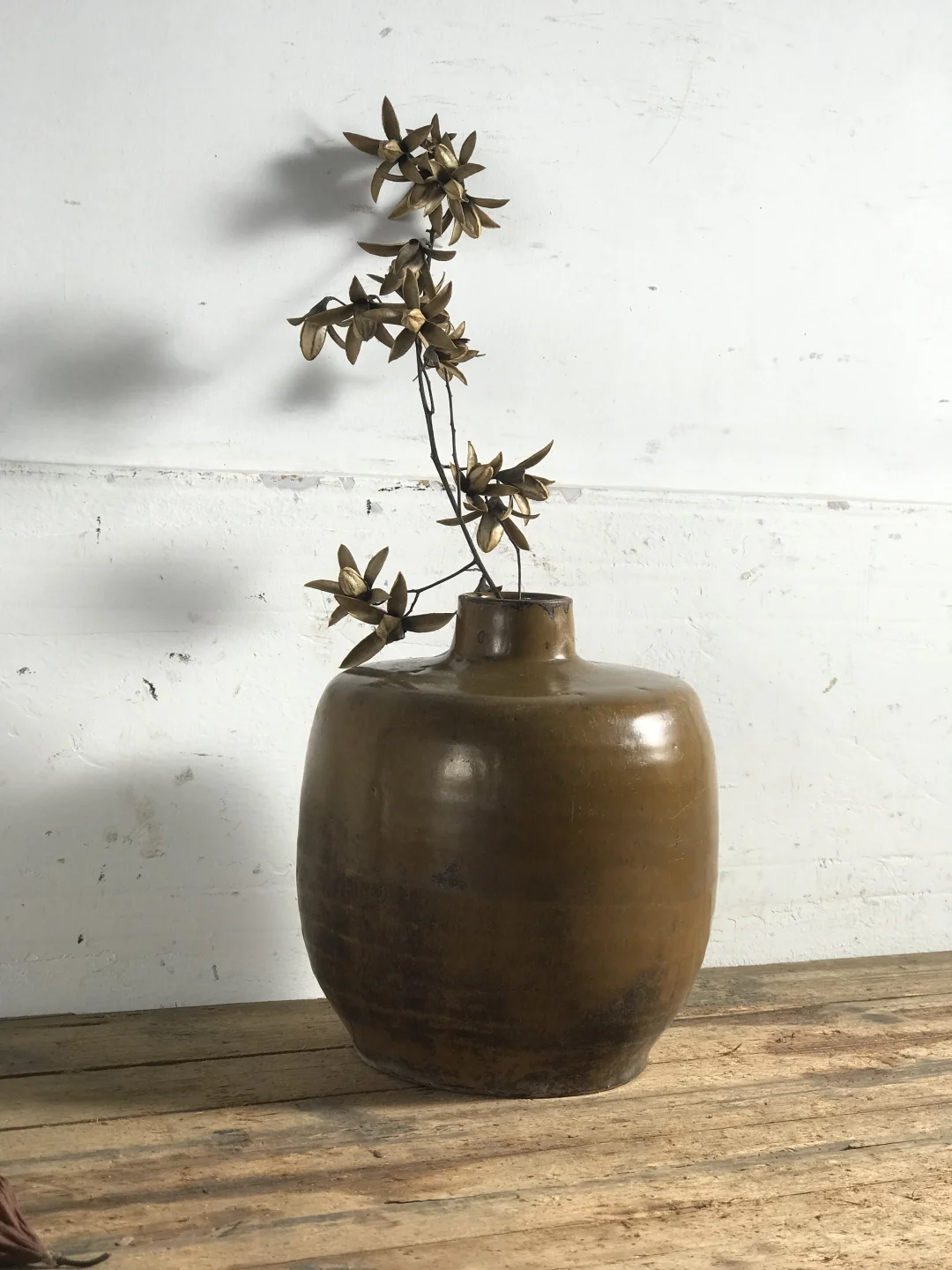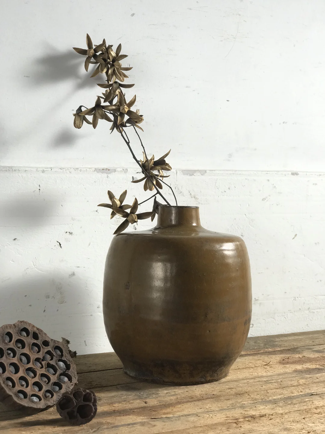 老陶瓶、插花花器、民宿茶室极简侘寂摆件;摄影造景道具;古朴圆润、包浆佳;16*16*18厘米高。
