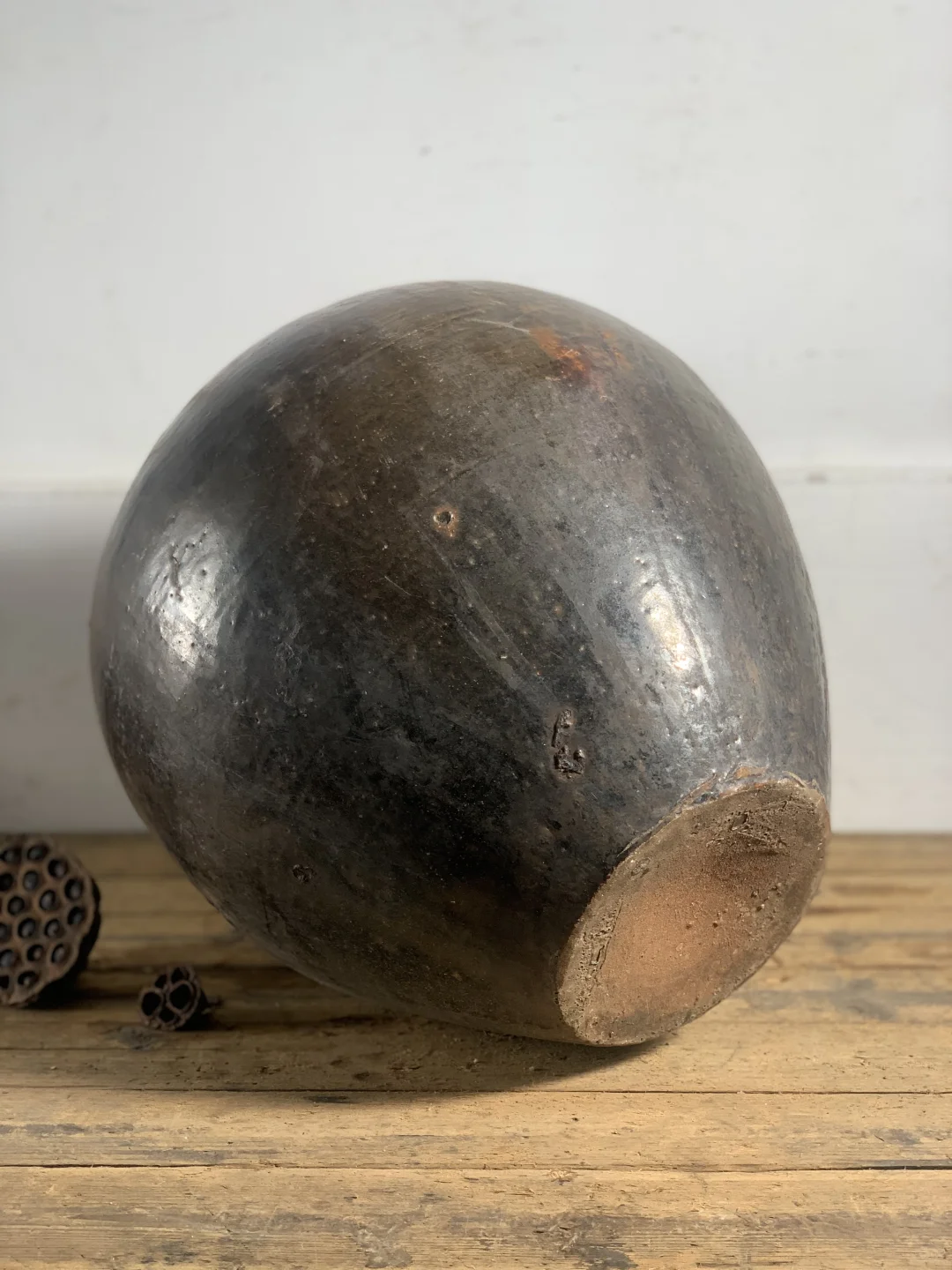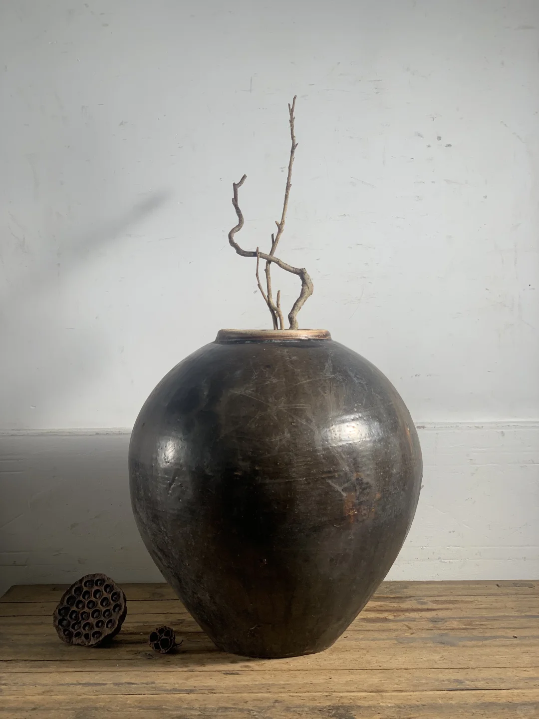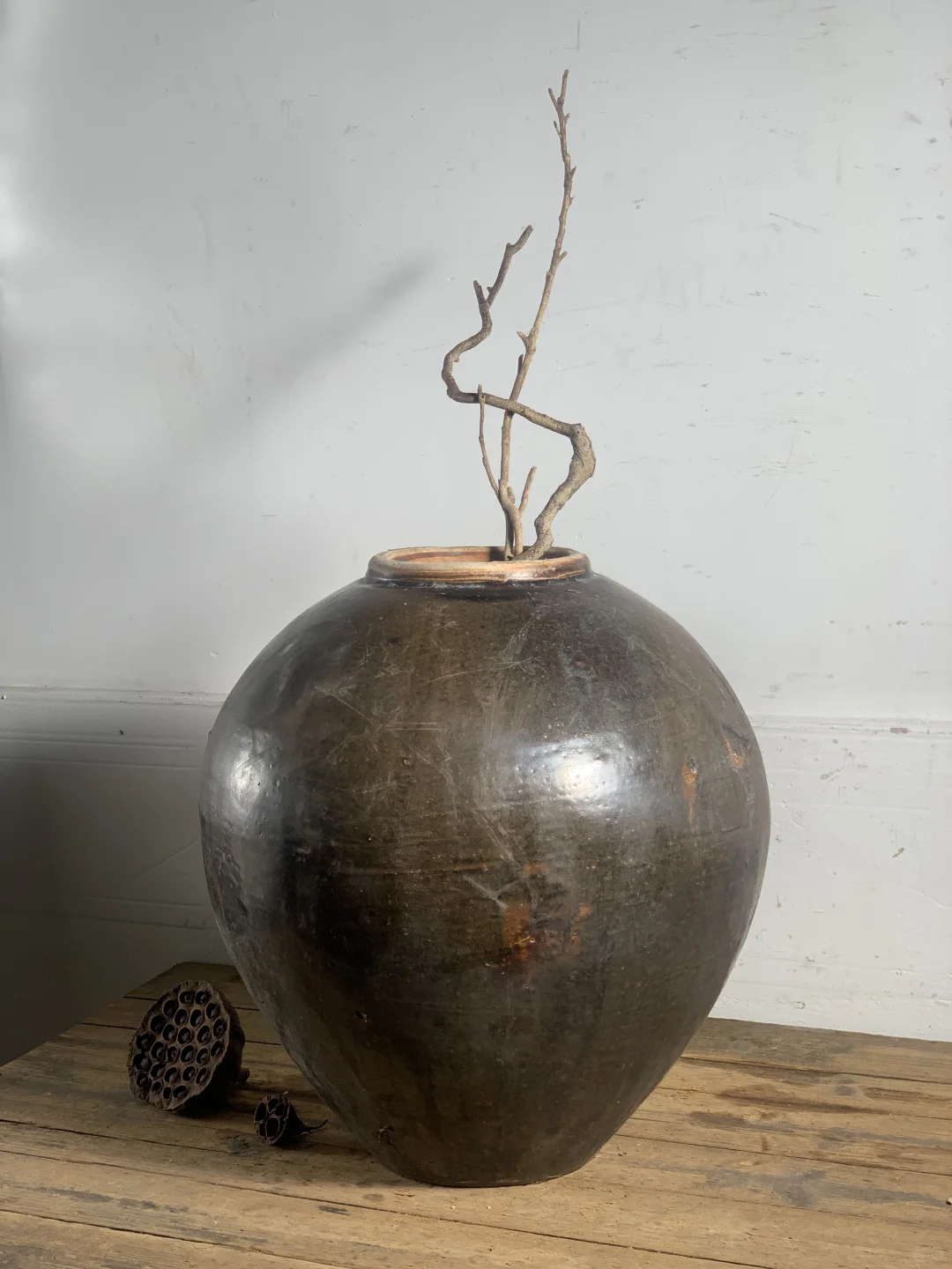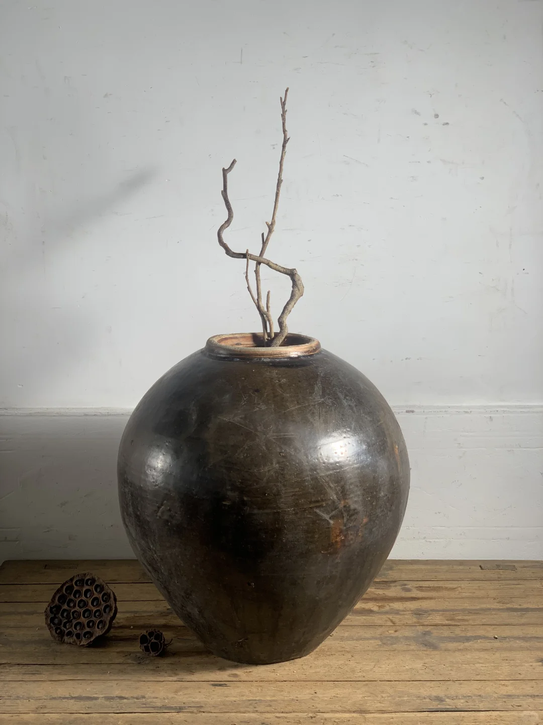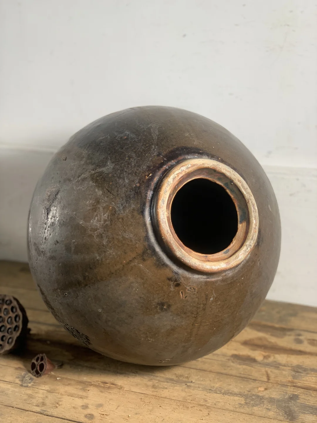 浑圆包浆大肚罐,柴火手工烧制;花艺插花;民宿、茶室、书房等极简侘寂摆件;33*33*38厘米高。口径9厘米宽。