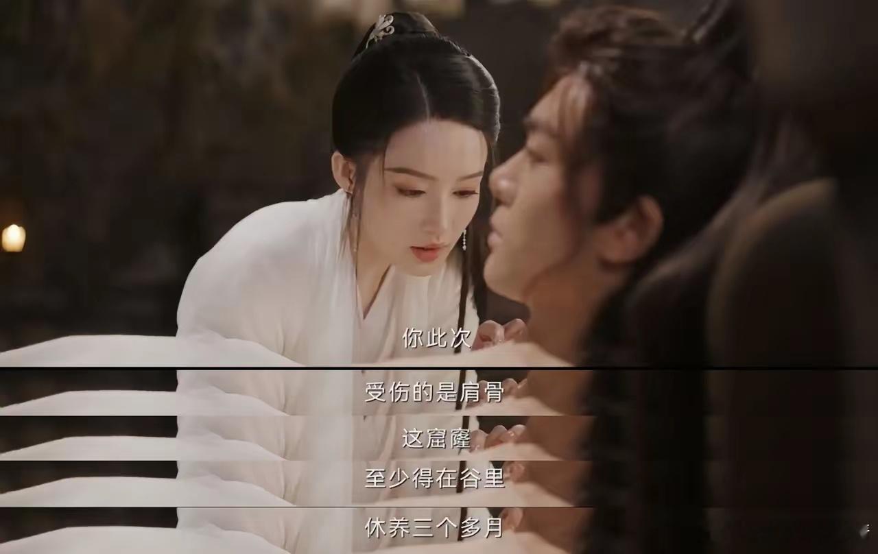 薛紫夜给霍展白疗伤,两人离得这么近,霍展白看着认真给他护理伤口的薛紫夜,心动了,两人对视的那一刻,霍展白彻底沦陷了。