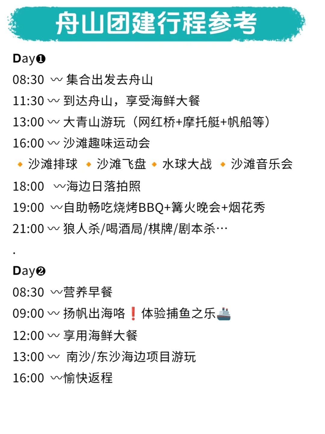 【朱家尖团建2日行程参考】