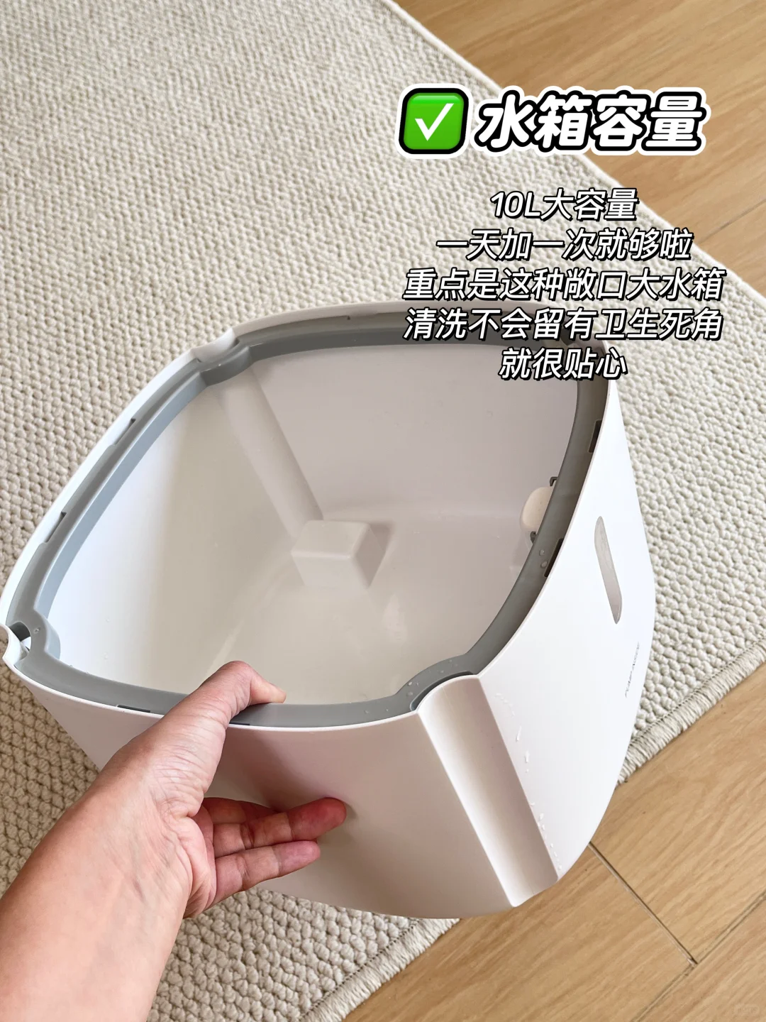10 L大水箱,无需频繁加水。重点是还能上加水,加水很方便!