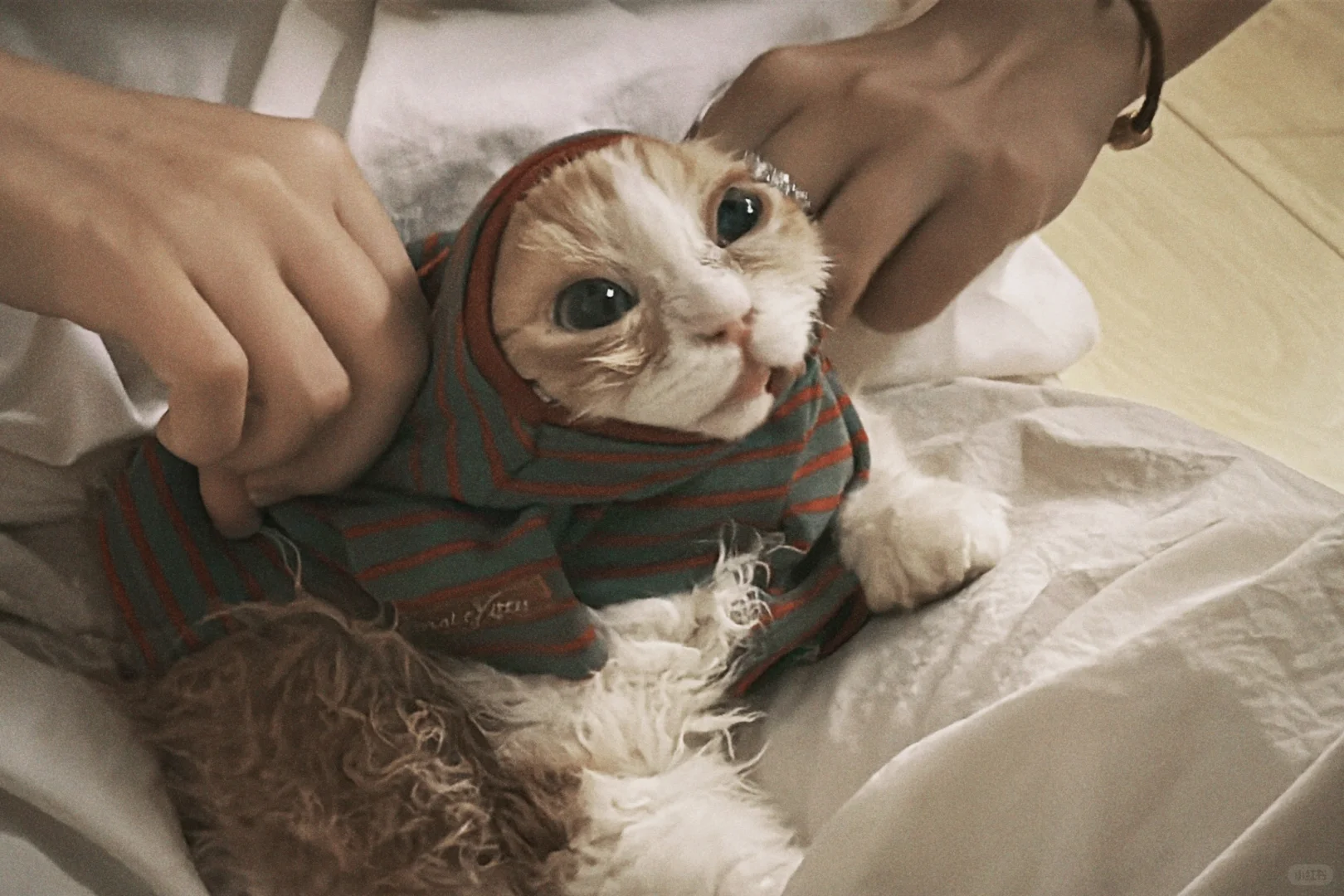 欧包从一开始胆小到缩在角落,到现在随地大小睡 工作到深夜也会陪着我,在毯子上踩奶 好像慢慢变成家人了