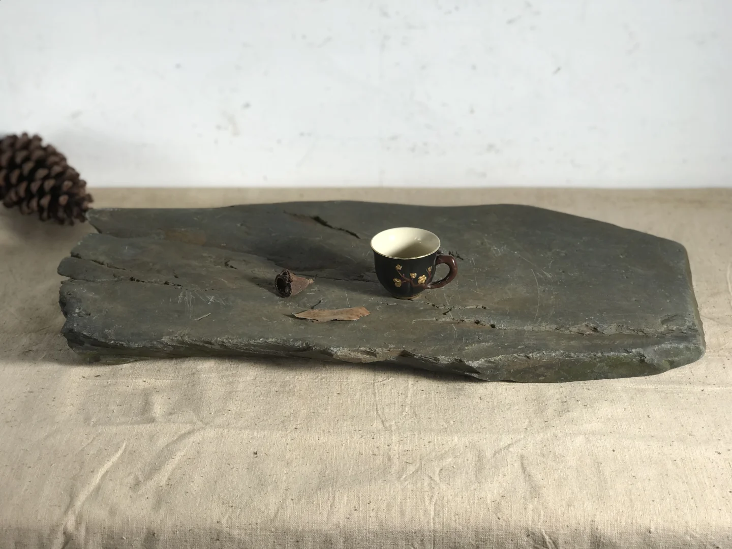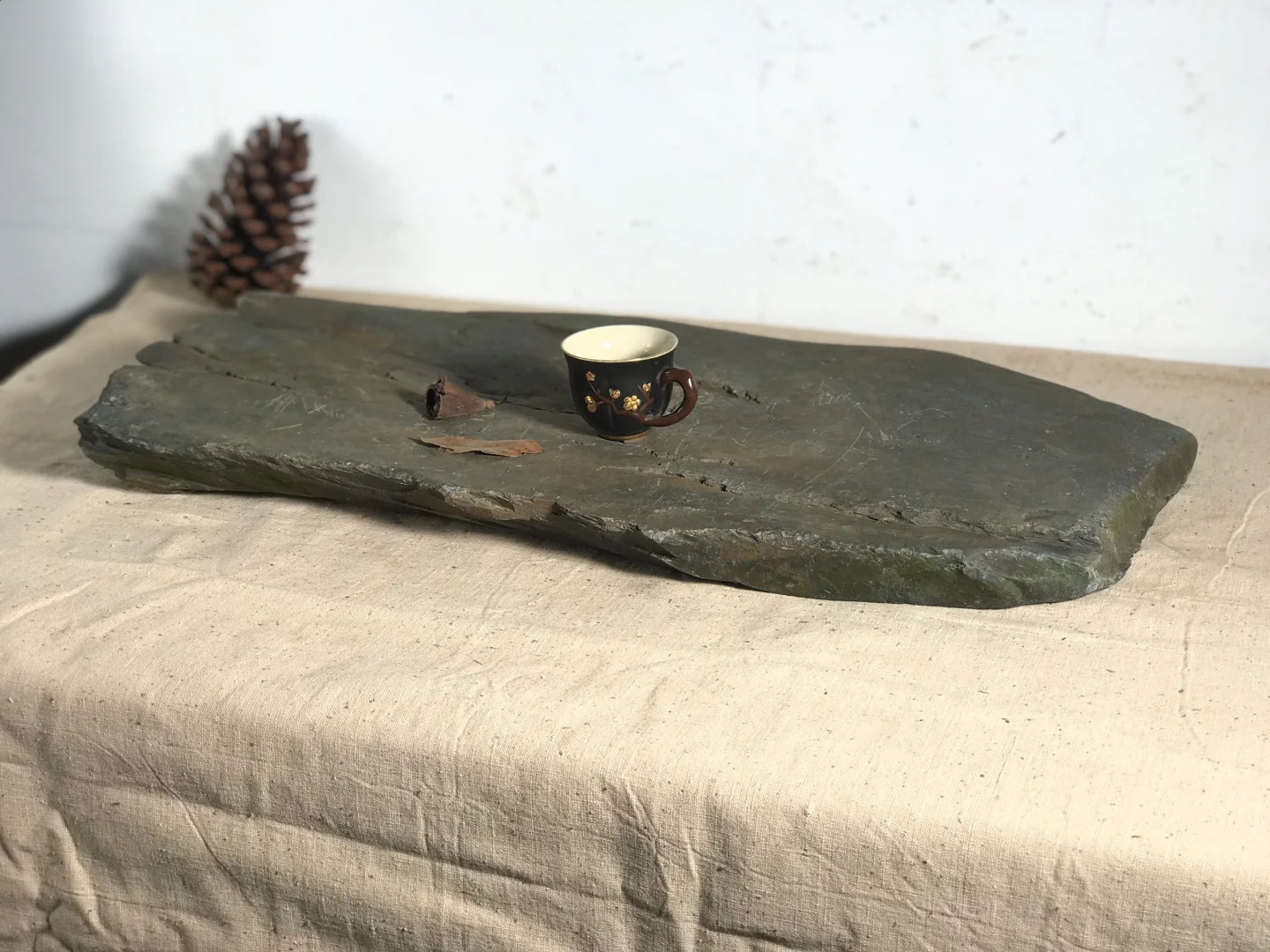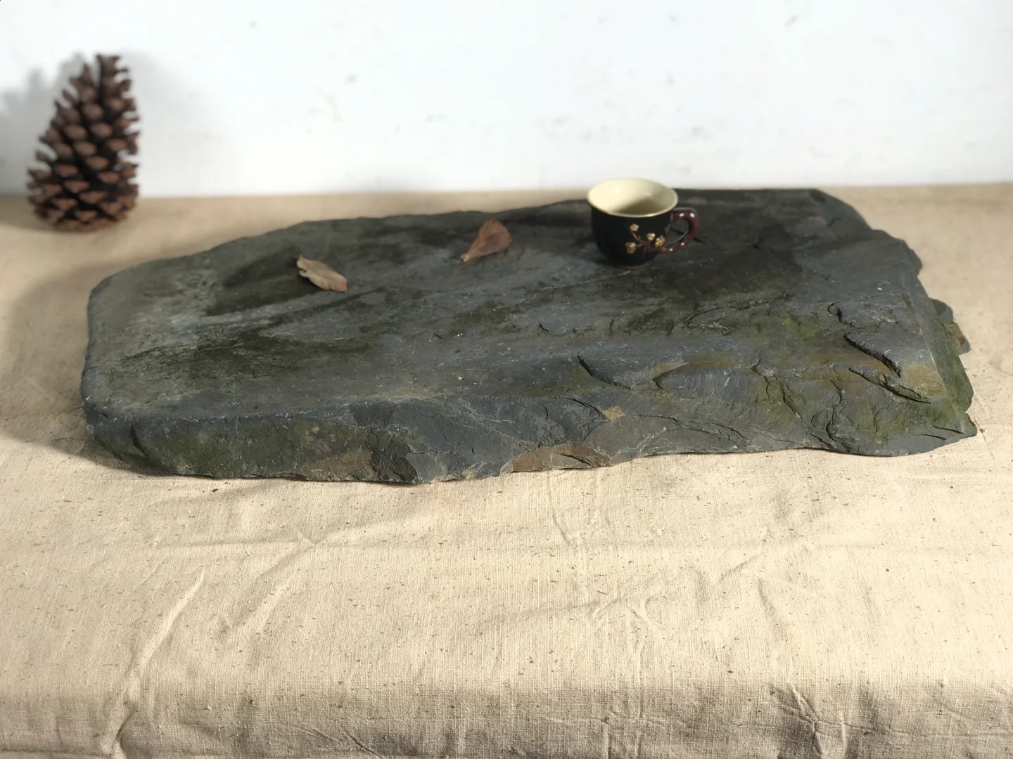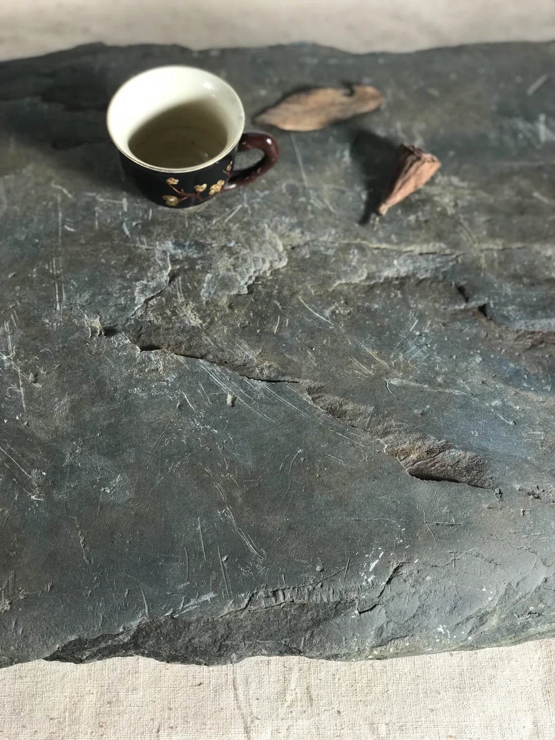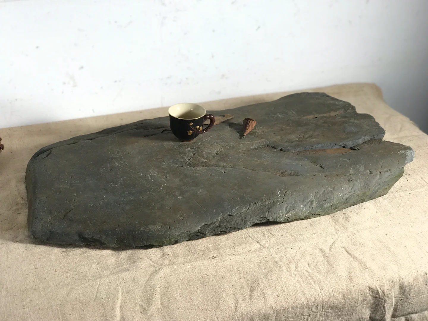 小石桌茶台,茶室、民宿、书房等极简侘寂空间设计摆件;摄影造景道具;58*32*5厘米厚,重约40斤。