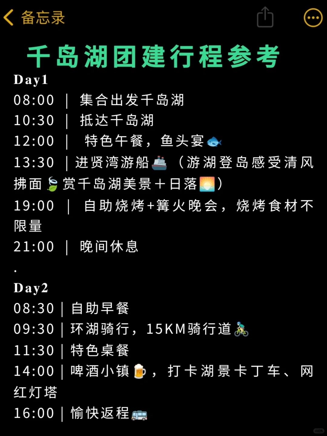 【千岛湖团建2日行程参考】