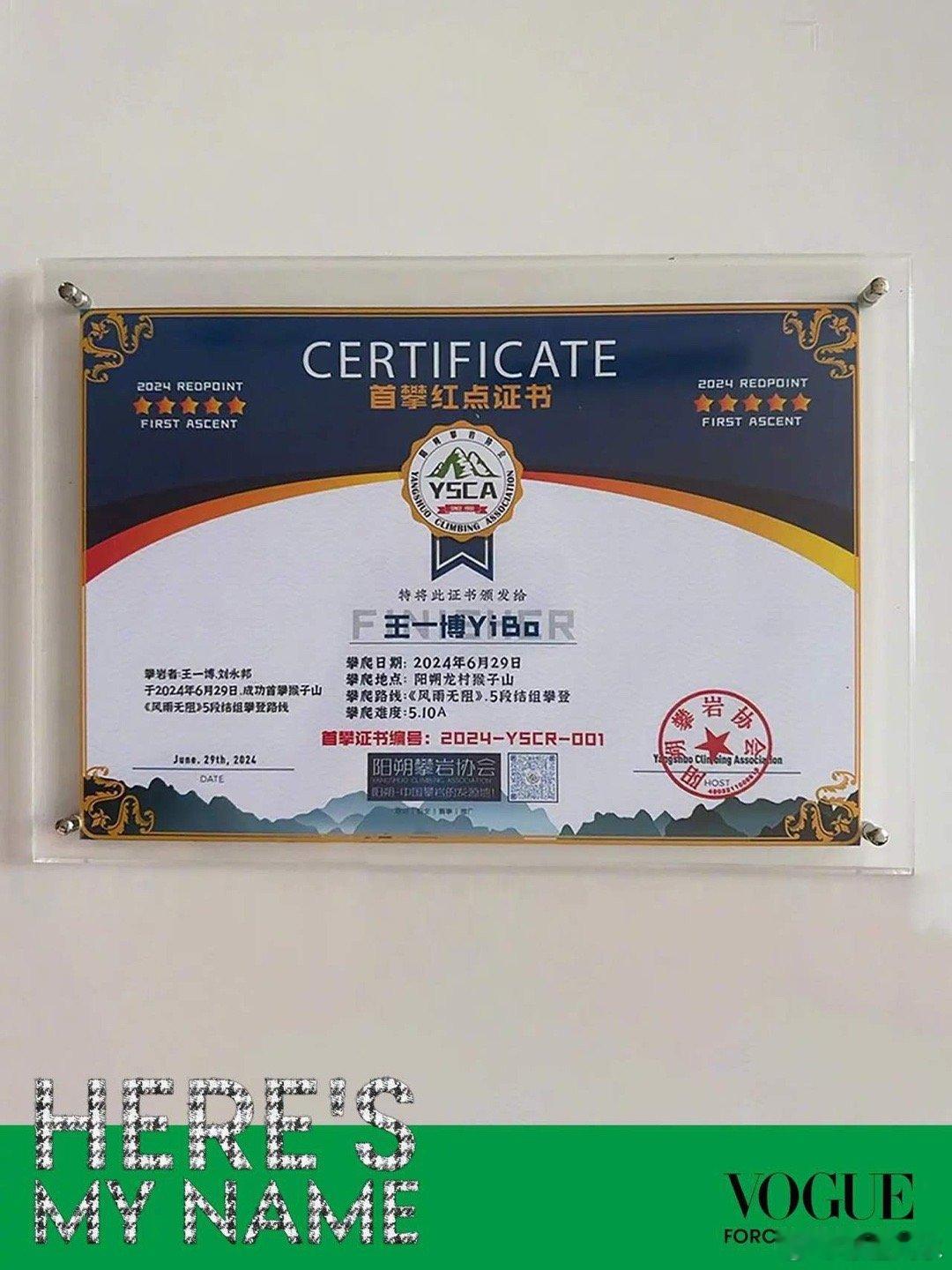 #王一博首攀红点证书#哇⁀⊙﹏☉⁀[哇][哇][哇]王一博首攀并开线“风雨无阻”的证书终于晒出来了。编号还是001,王一博,你真的很酷[赞][赞][赞]