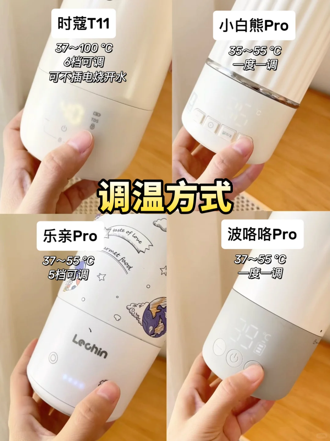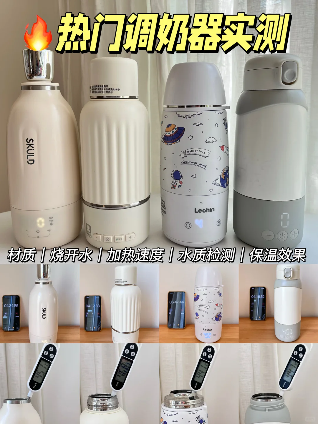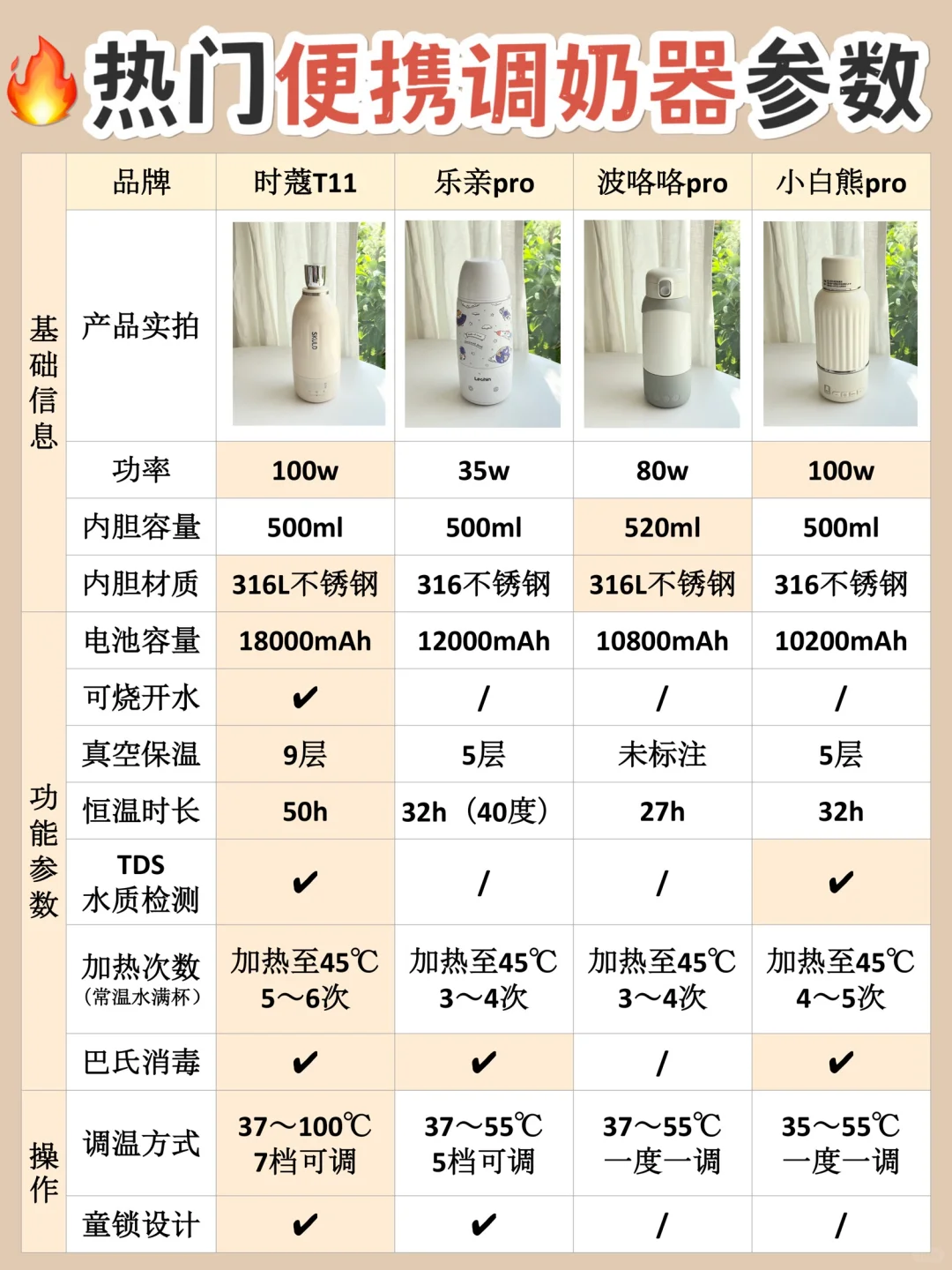 所以我实测了比较热门的4款便携调奶器,具体参数给大家放图片里了,👭们可以先对比再入手🛒