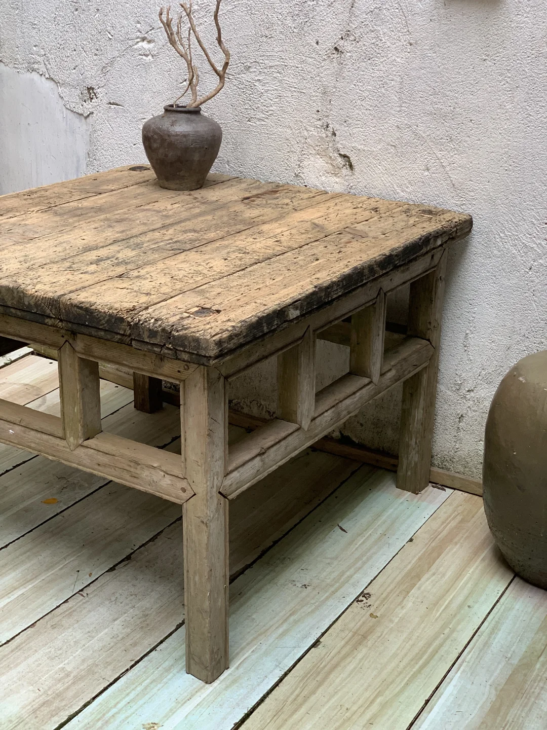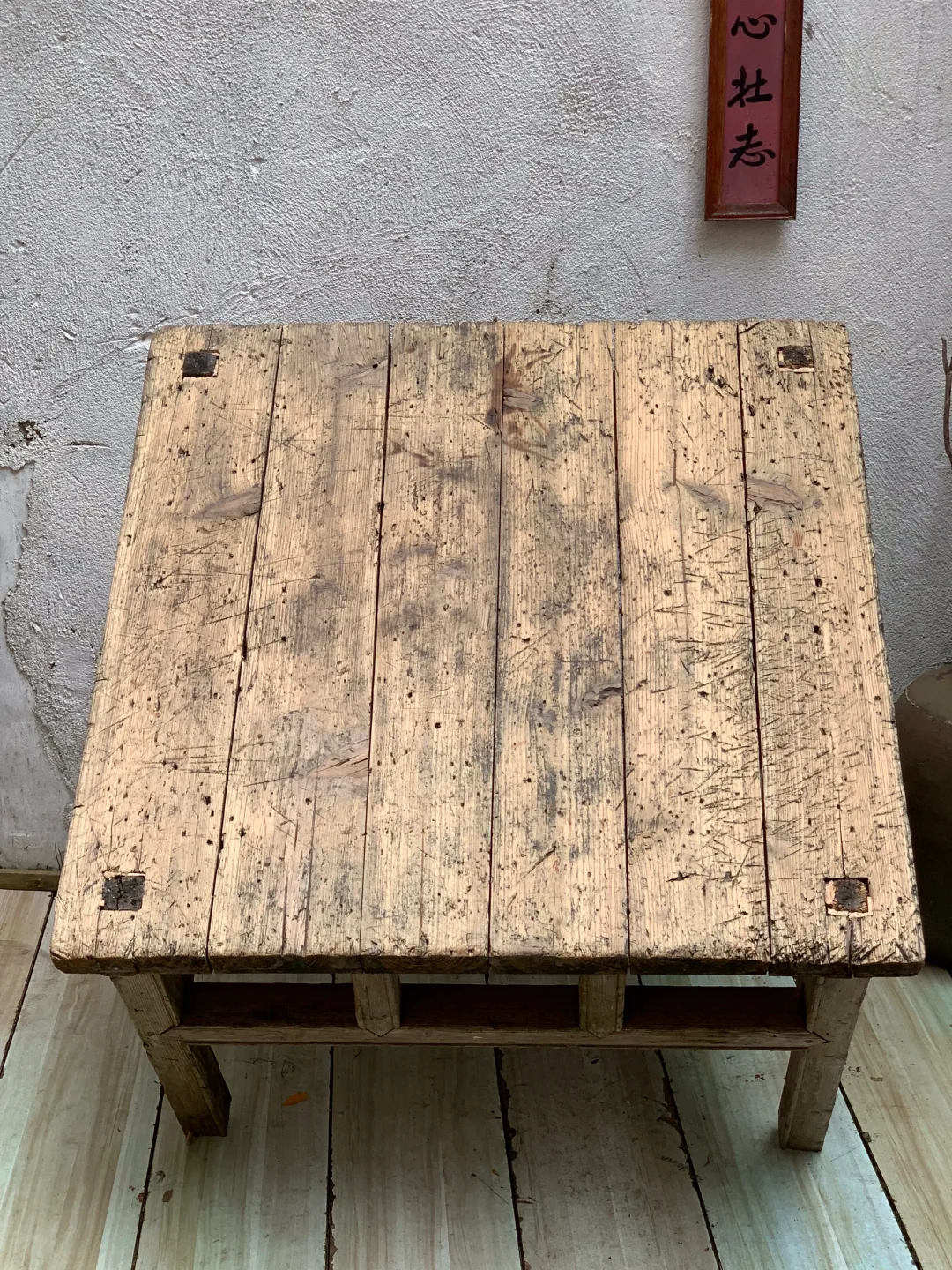 大方桌,朴实厚重;民宿、茶室极简侘寂软装家具;摄影造景道具,95*95*67厘米高。桌板6厘米厚,重约60斤。