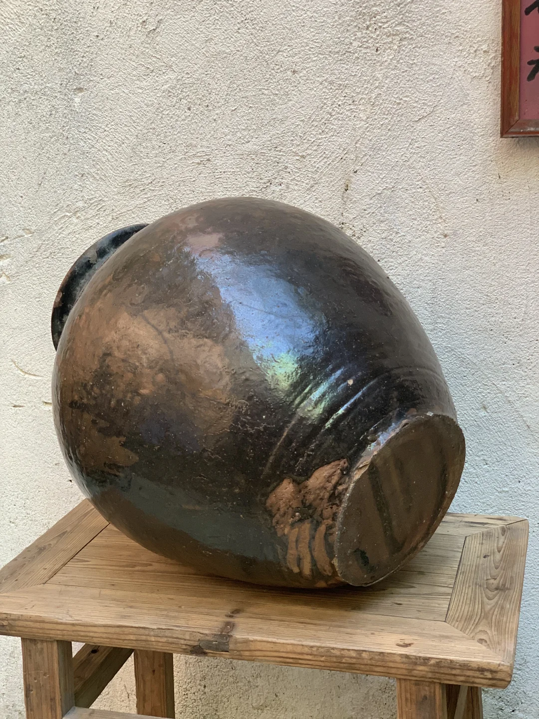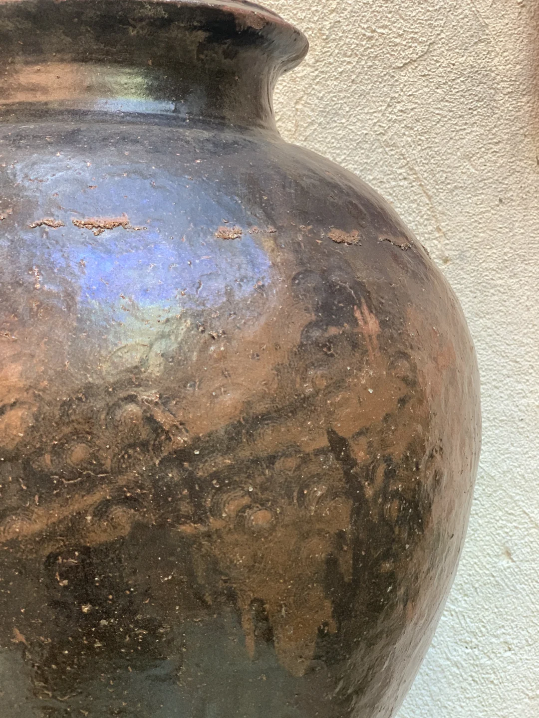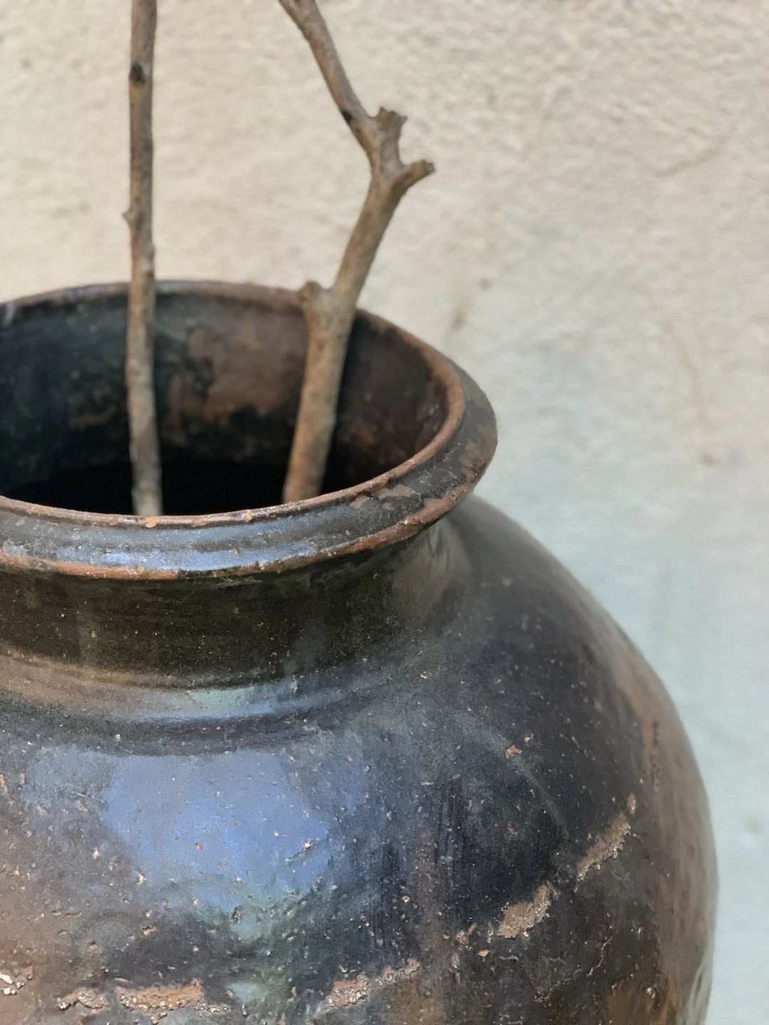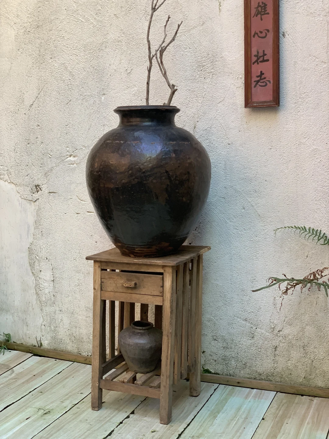钱纹大口径高罐,包浆油润;花艺插花;民宿茶室极简侘寂摆件;适合庭院大型绿栽;43*43*56厘米高,口径20厘米宽。