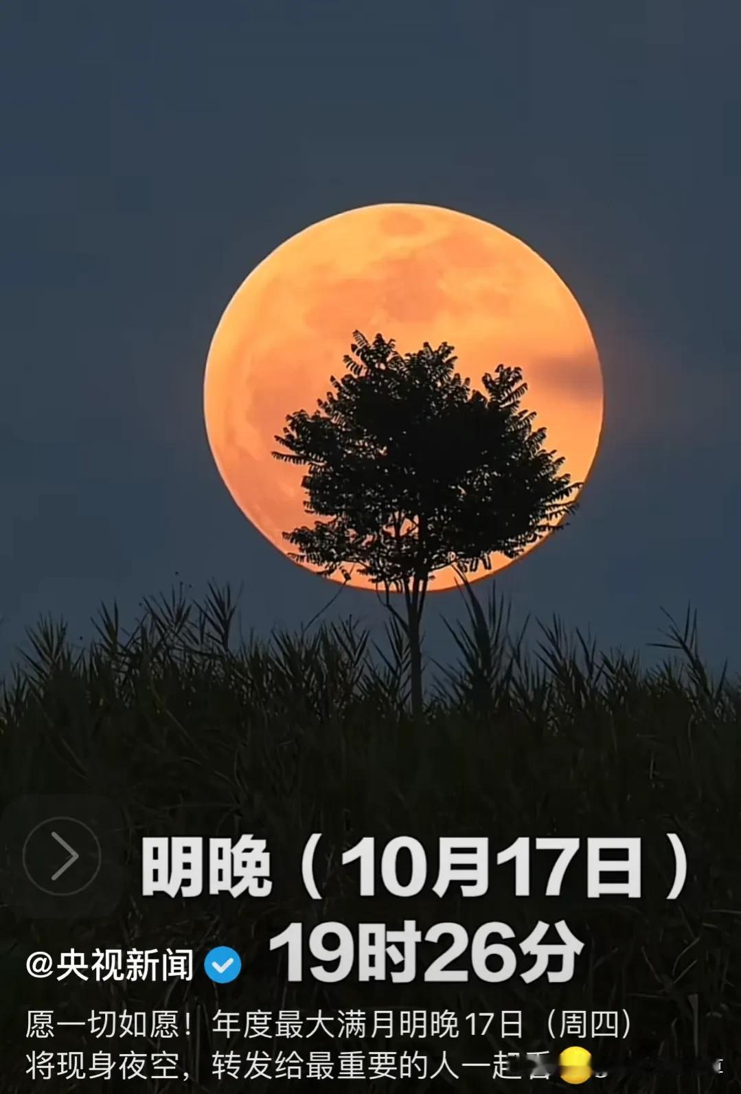 10月17日19:26分(周四) 年度最大满月将现身夜空 愿一切如愿! #大月亮