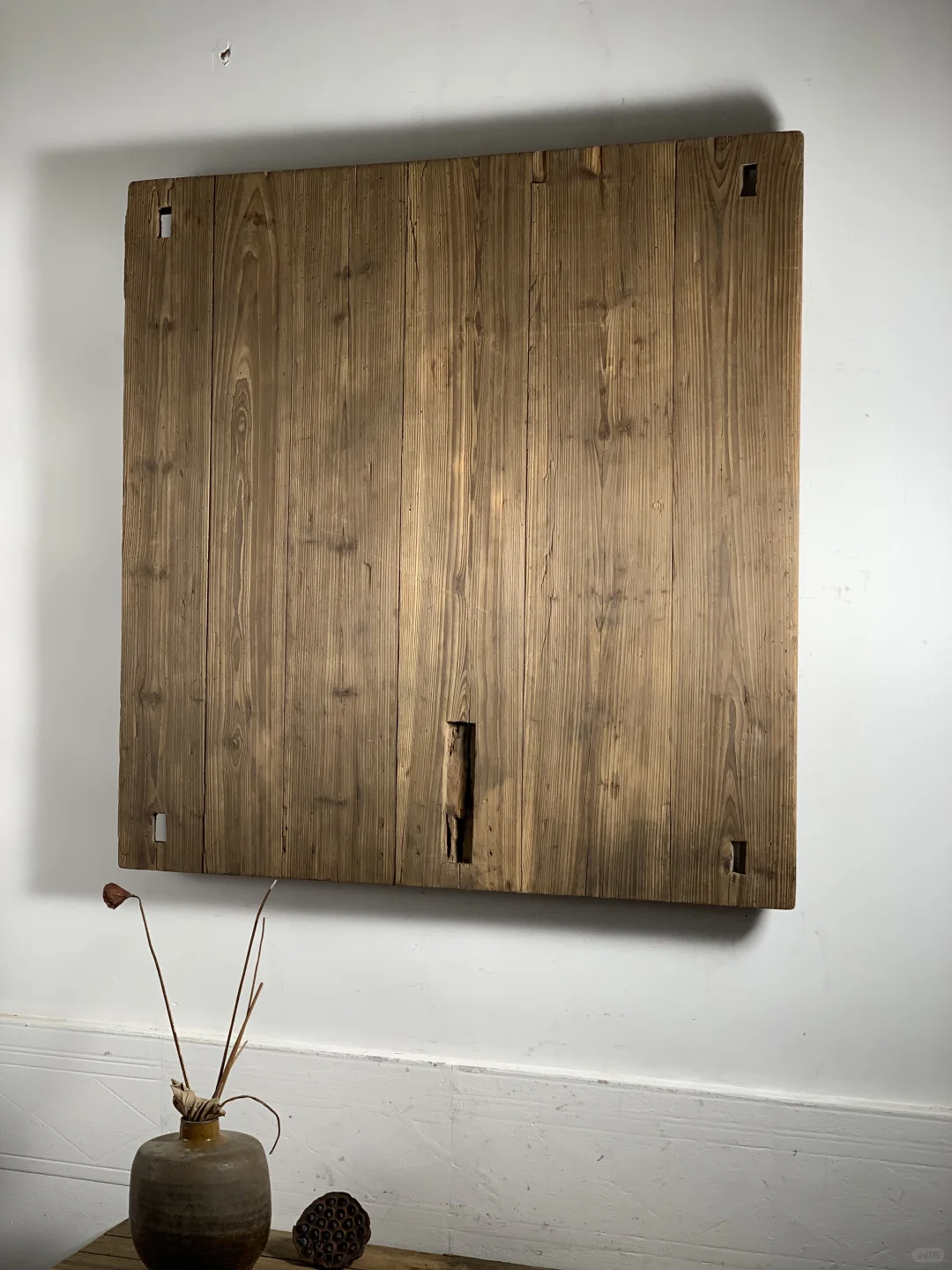 风化桌面,纹理干净包浆佳;美食摄影造景道具、民宿茶室、书房极简侘寂壁挂;86*86*4厘米厚;樟木厚重,正常使用。