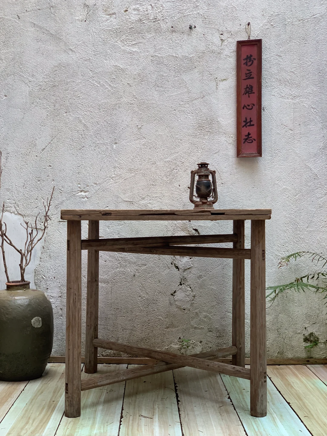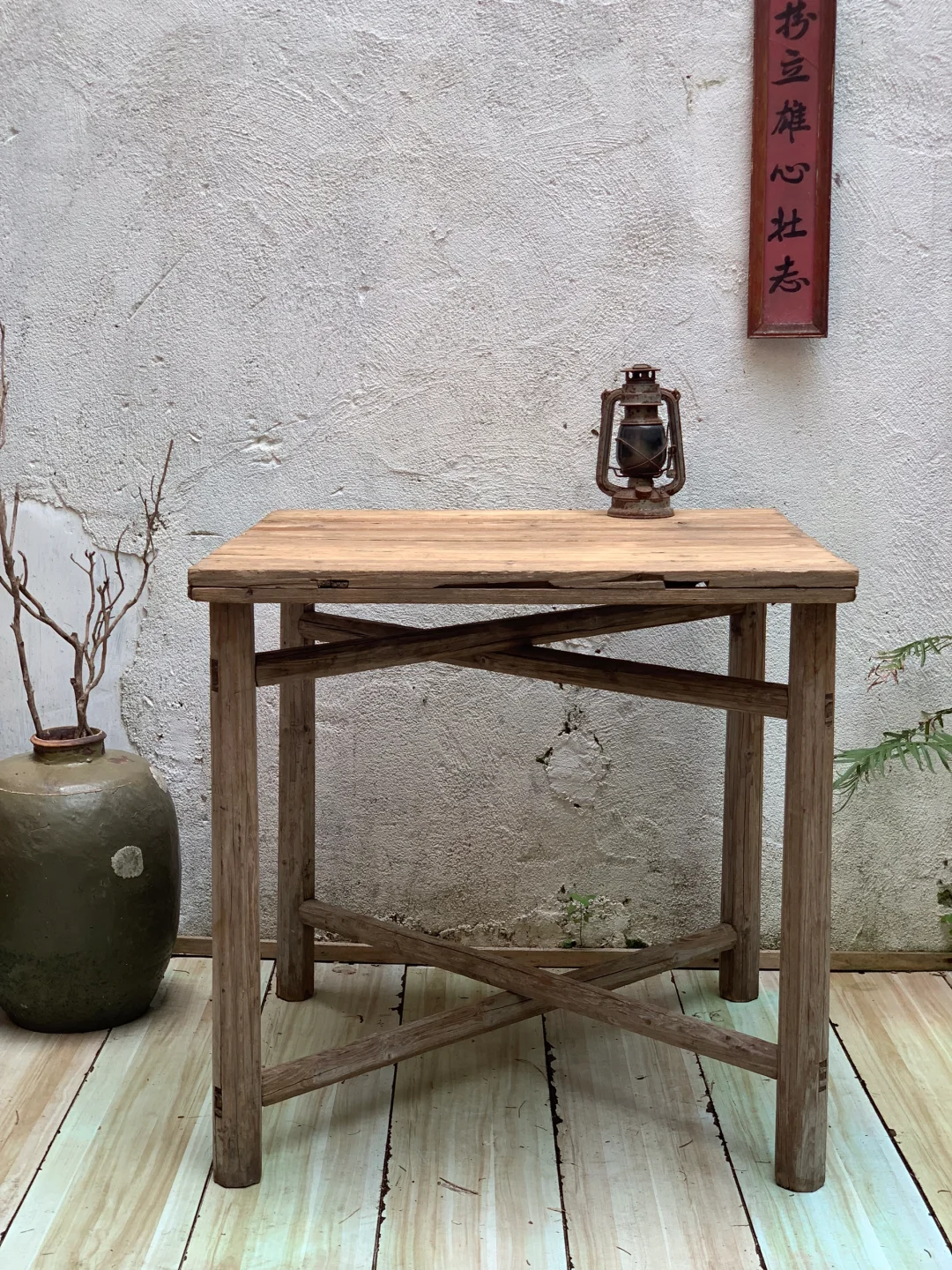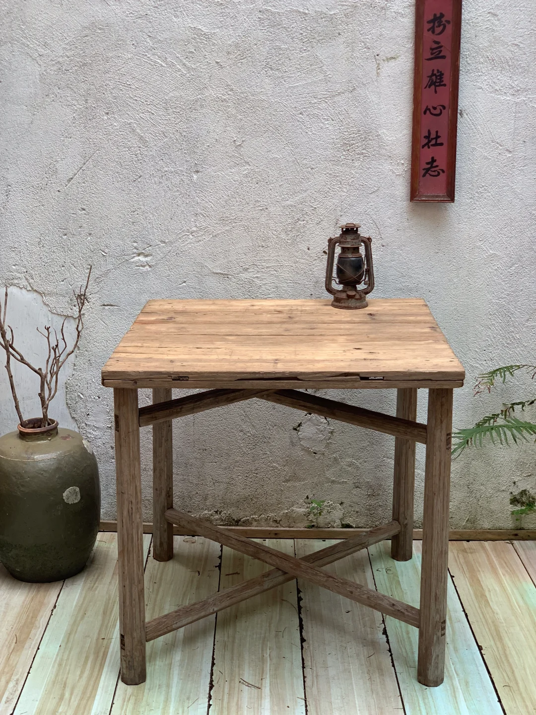 折叠方桌;风化纹理佳:民宿、书房、茶室极简侘寂家具;影视造景道具;86*86*86厘米高。正常使用。