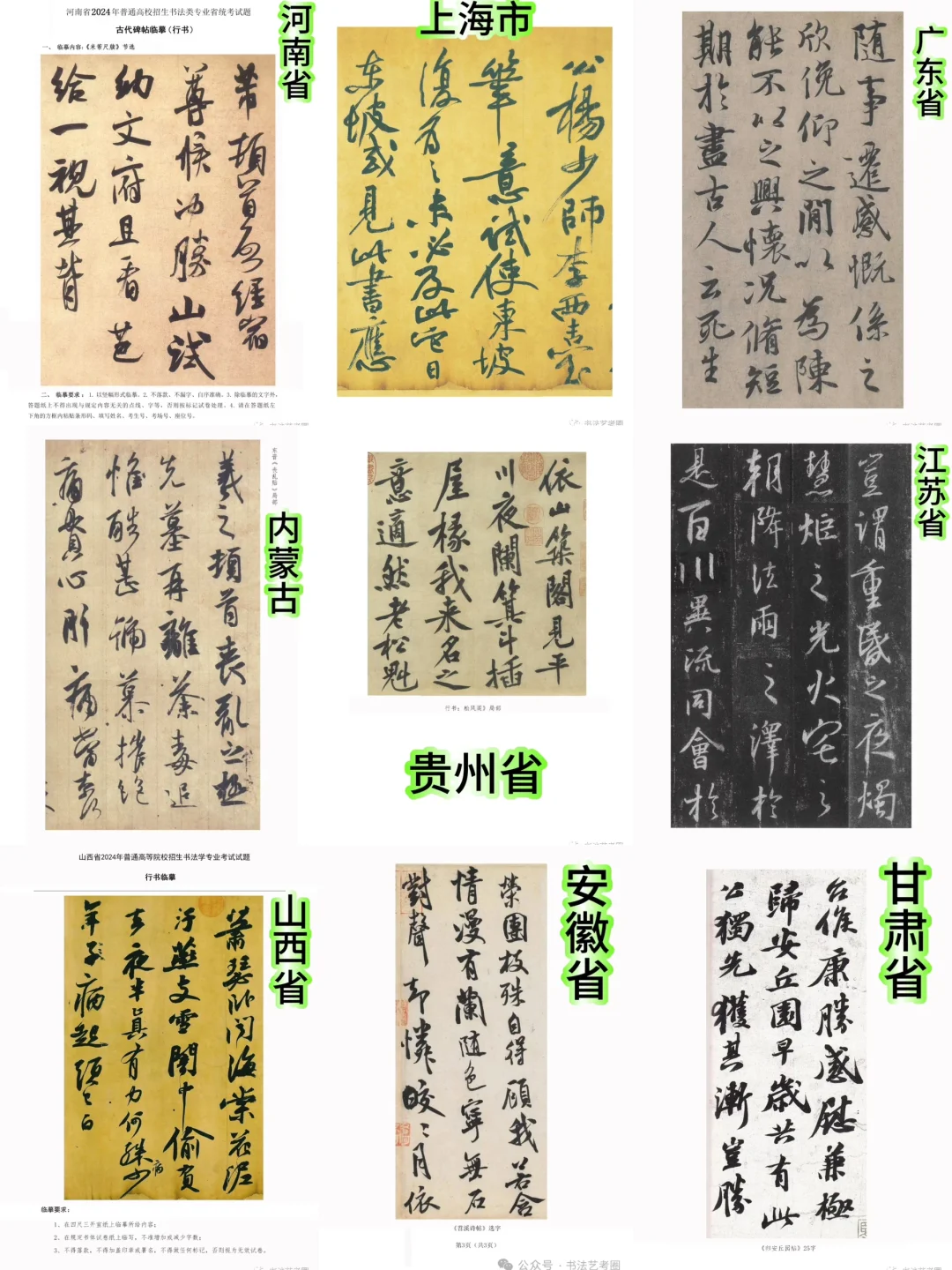 书法统考行书必考,或临摹或创作! 2024年有25个省份为书法临摹 其中王羲之8次 米芾9次 苏轼3次 黄庭坚2次…… 加油准备吧!