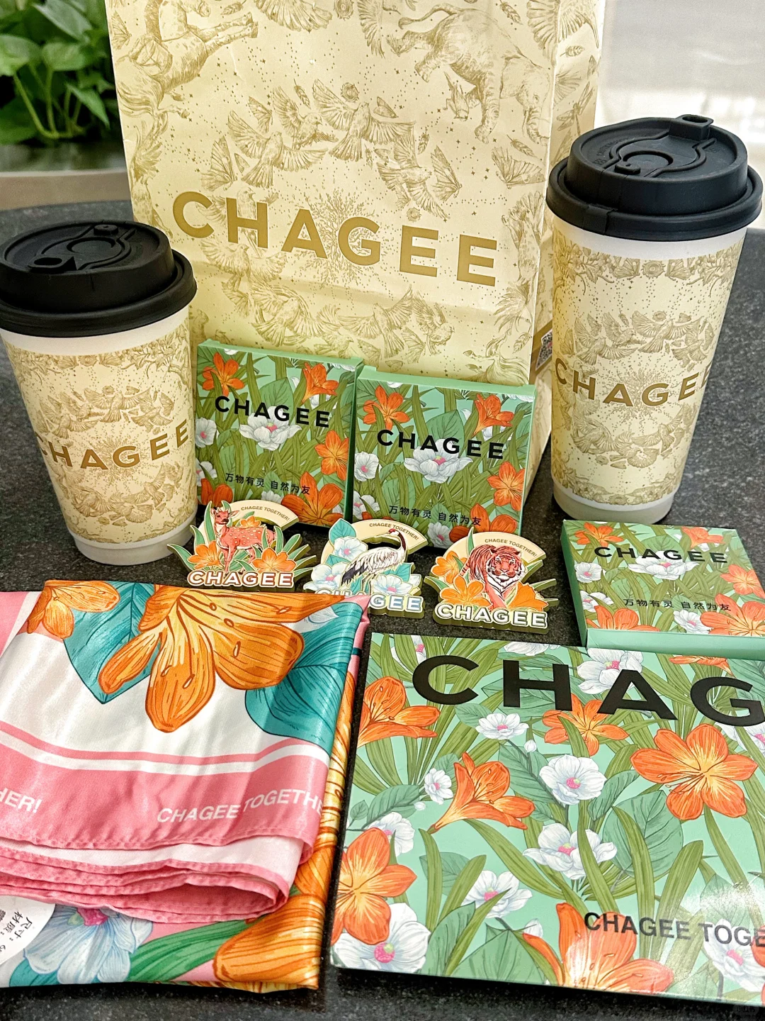 喜提姬姐家新周边梅花鹿徽章和东北虎丝巾