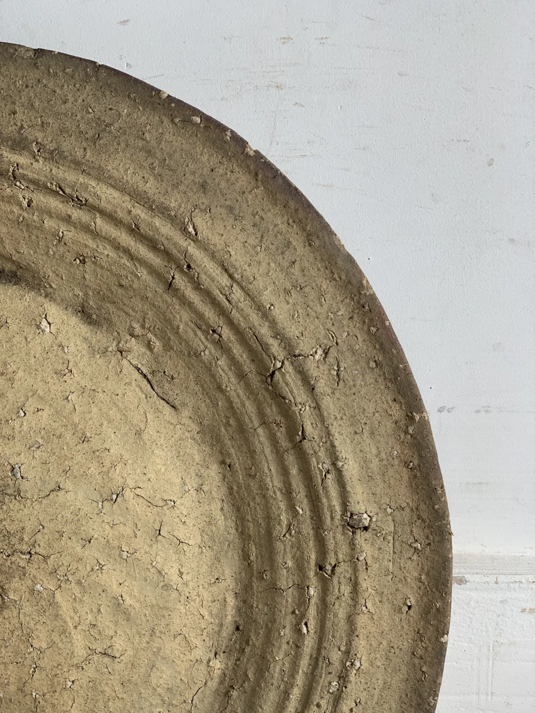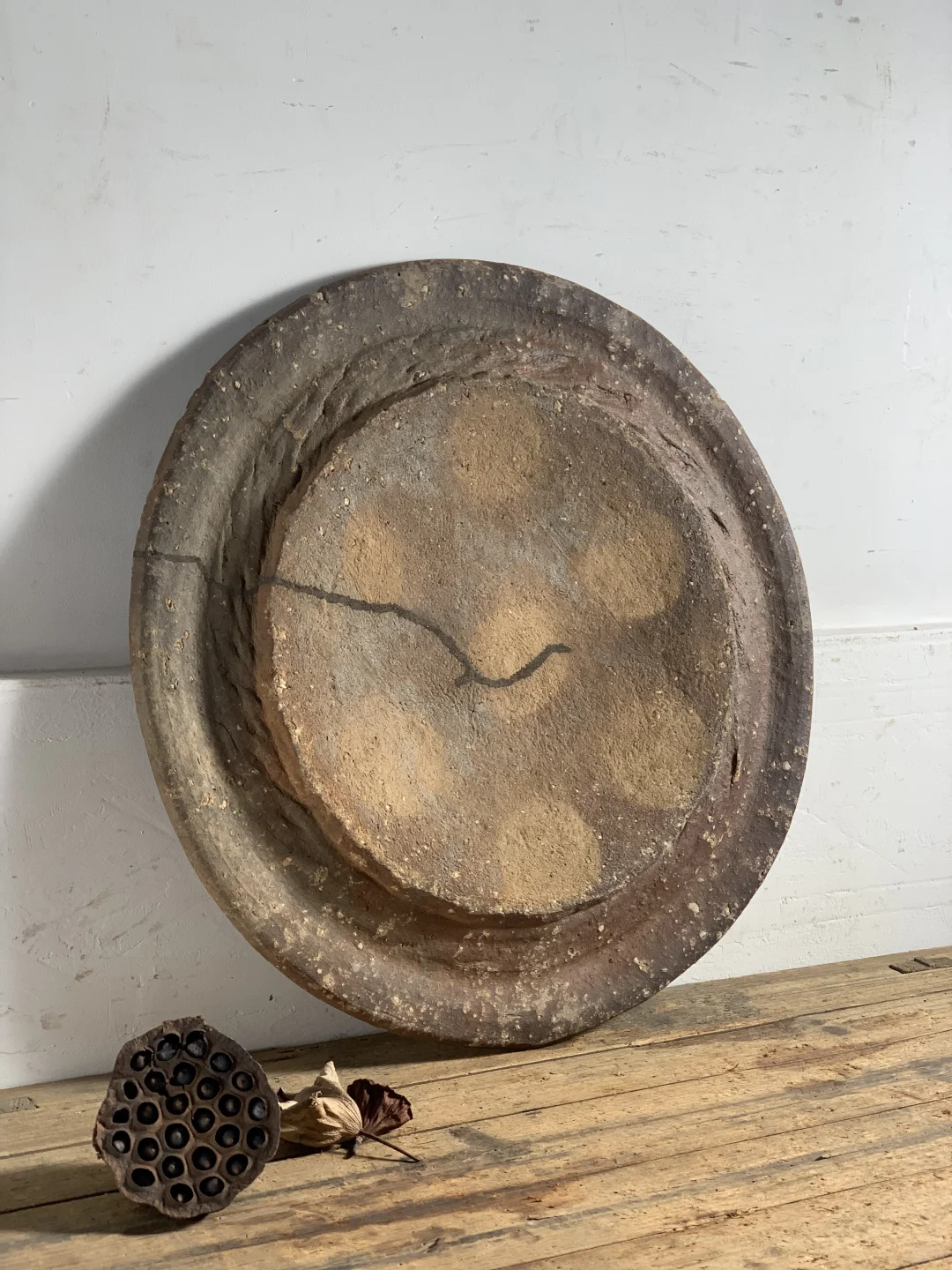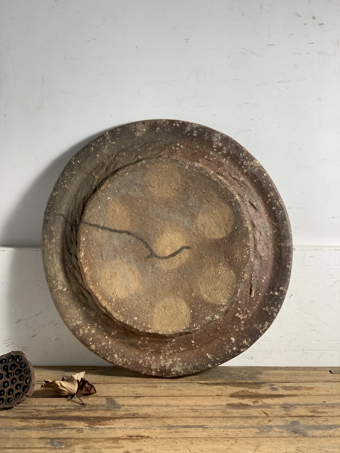 粗陶盘,大果盘、手工烧制,民宿、茶室、书房等极简侘寂摆件;46*48*3厘米深。