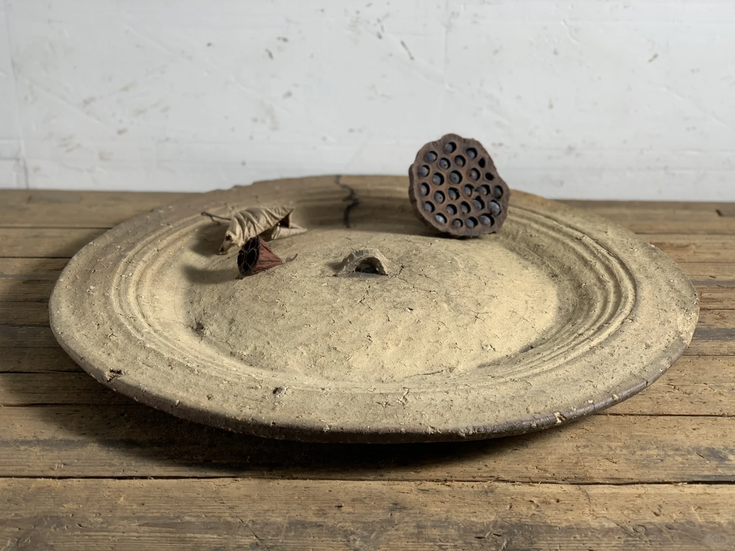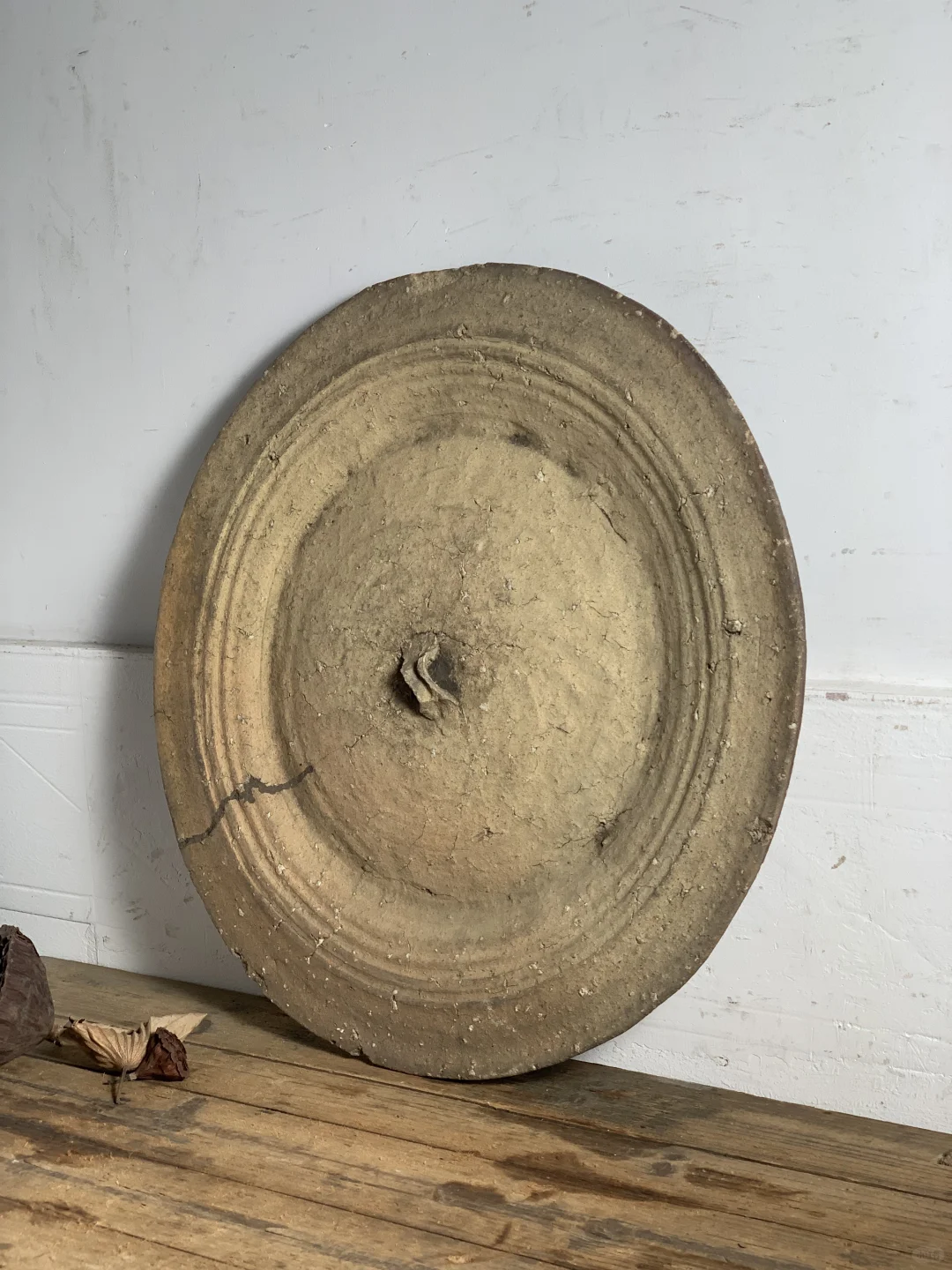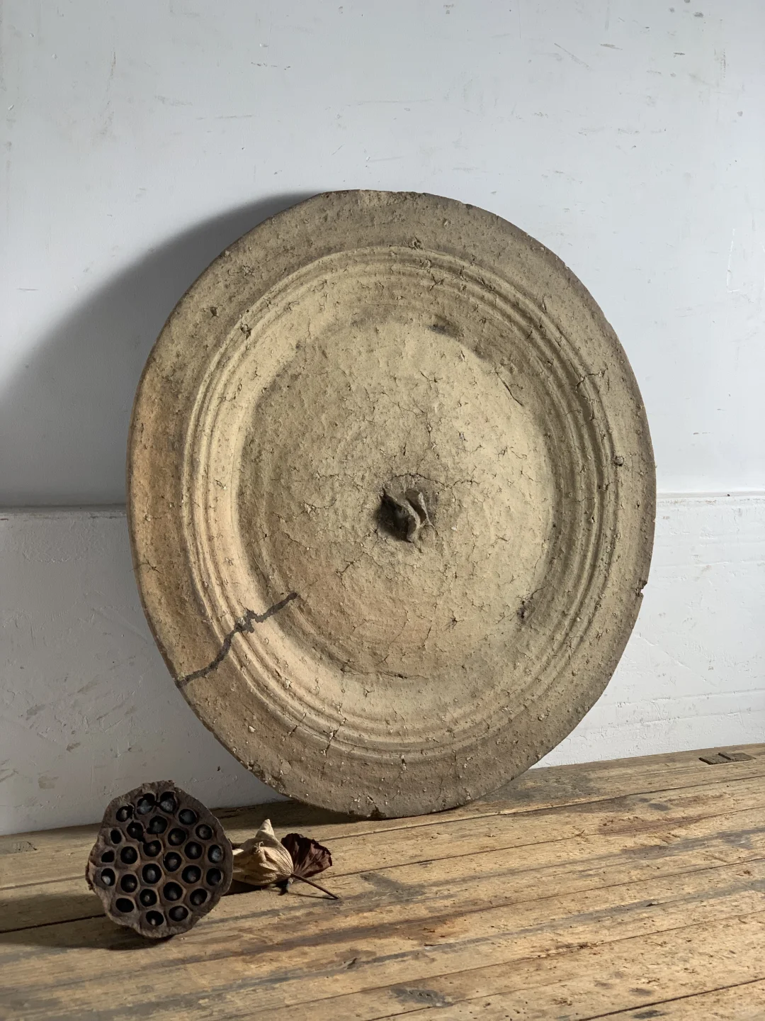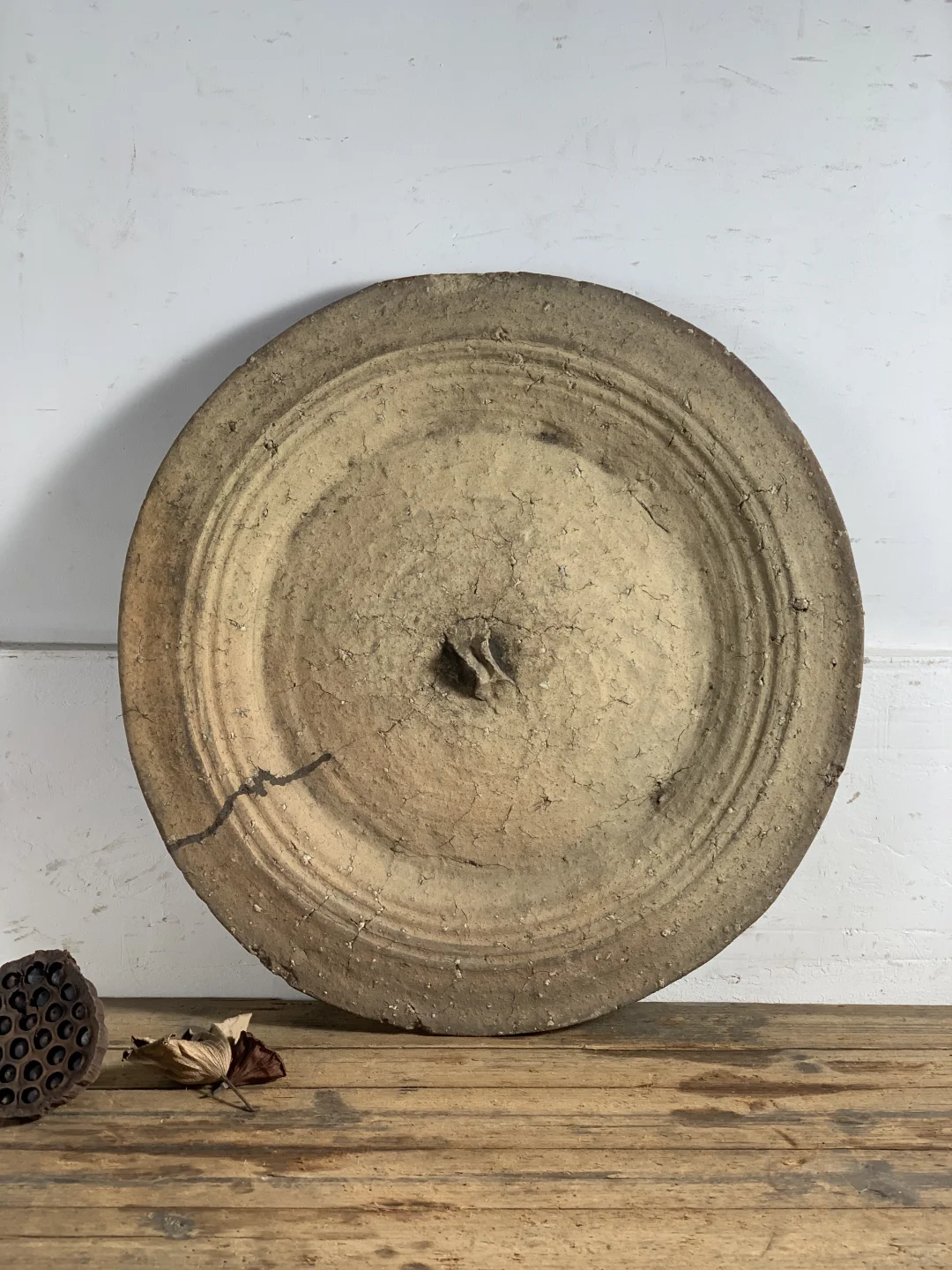 粗陶盘,大果盘、手工烧制,民宿、茶室、书房等极简侘寂摆件;46*48*3厘米深。