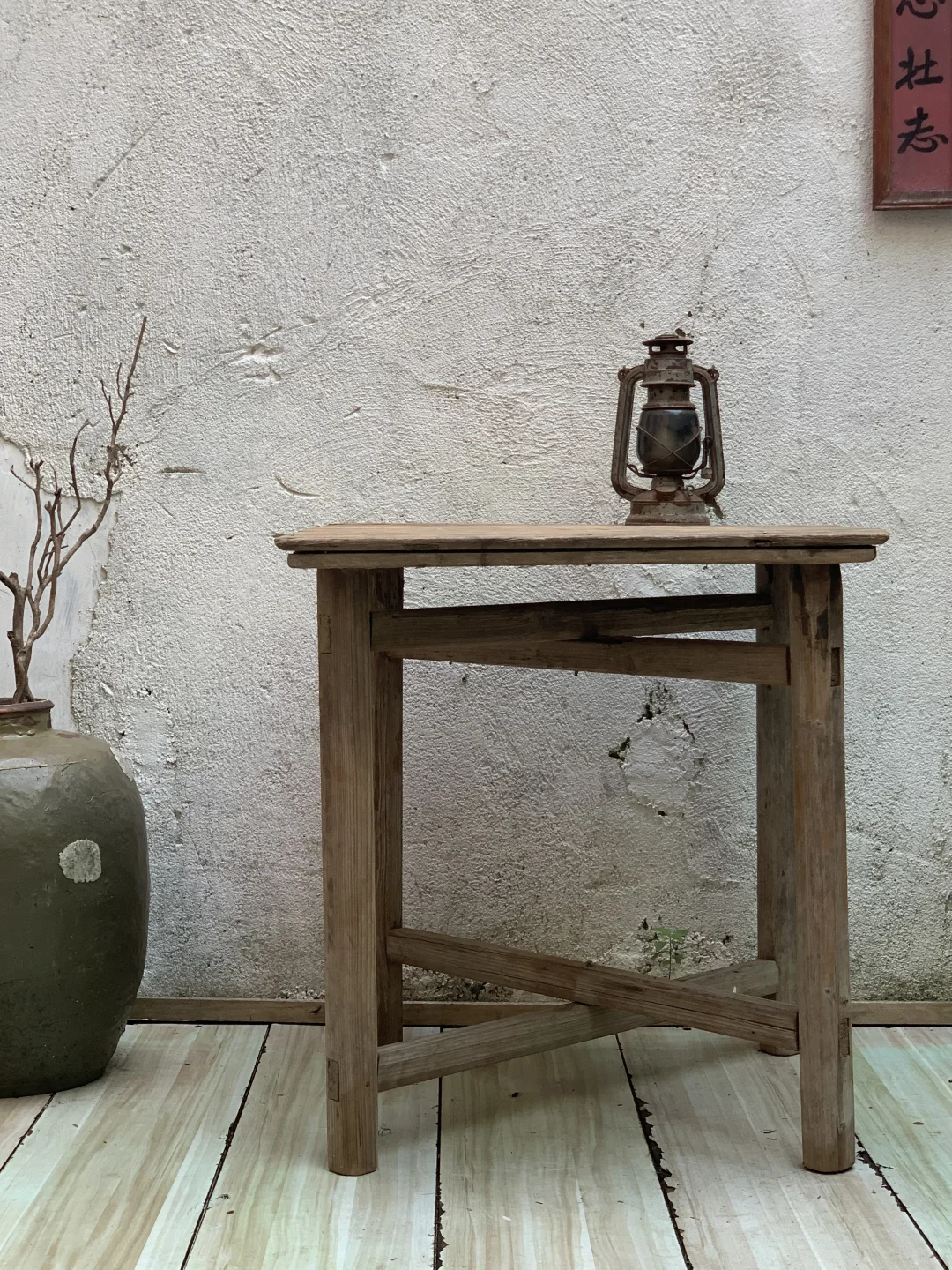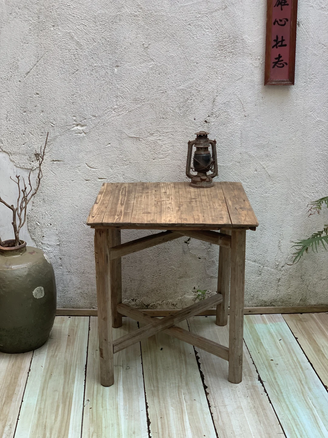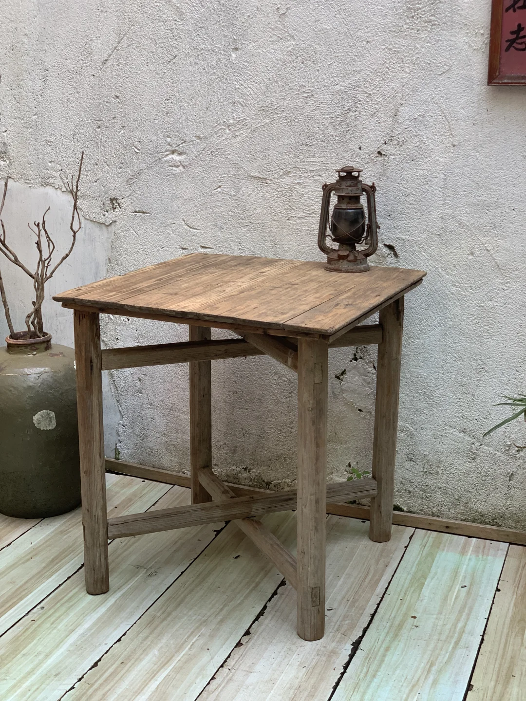 折叠小方桌;原木风化纹理:民宿、书房、茶室极简侘寂家具;影视造景道具;66*66*70厘米高。