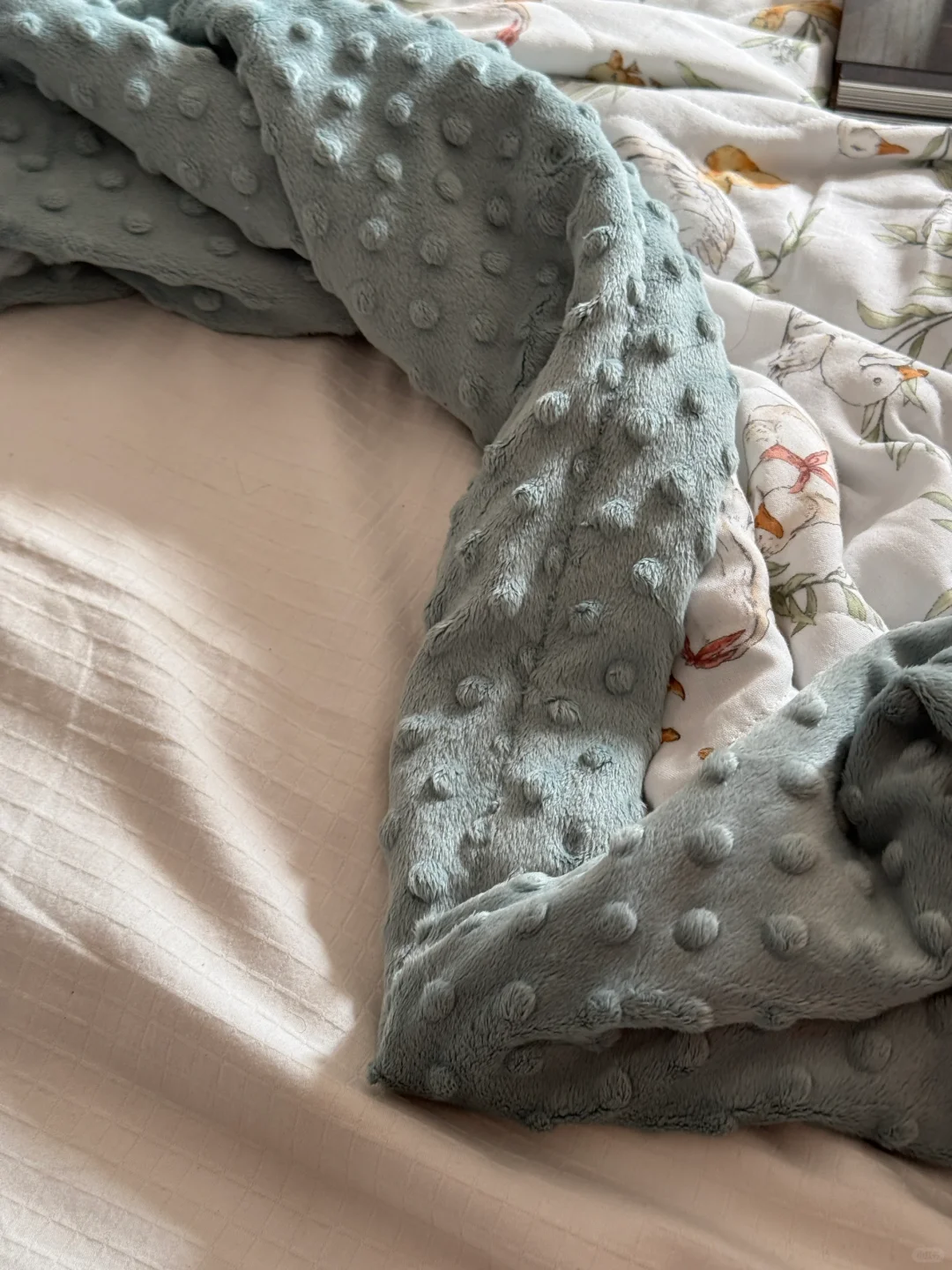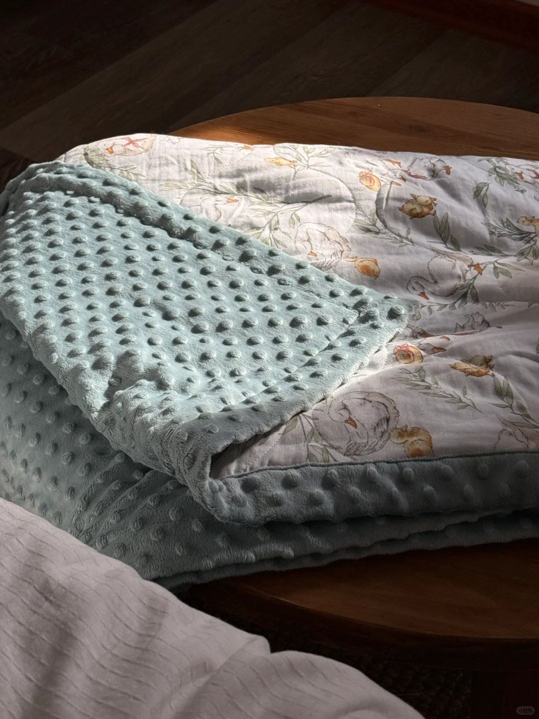 我想说!如果可以我都想住在豆豆毯里了! 太舒服了,当妈后才发现豆豆毯是这么舒服的东西! 这次入的是嫚熙豆豆毯 说真的有了宝宝以后对于好好用品格外注重 第一次对软糯亲肤有了更直观的感受! 它采用的杜邦SORONA纤维 摸起来松松软软的盖着轻盈又暖和,不会闷 表层用的豆豆绒,还原了妈妈的触感可以让宝宝更快入睡,睡的更加香甜。 7A级的抗菌防螨材质,更适合低敏宝贝,还可以两面换着盖,都很舒服~ 秋冬干燥季陪宝宝在床上任意玩耍,把被子盖头上也不怕静电 这个秋冬嫚熙陪伴!家里有娃的姐妹都赶紧去安排上!