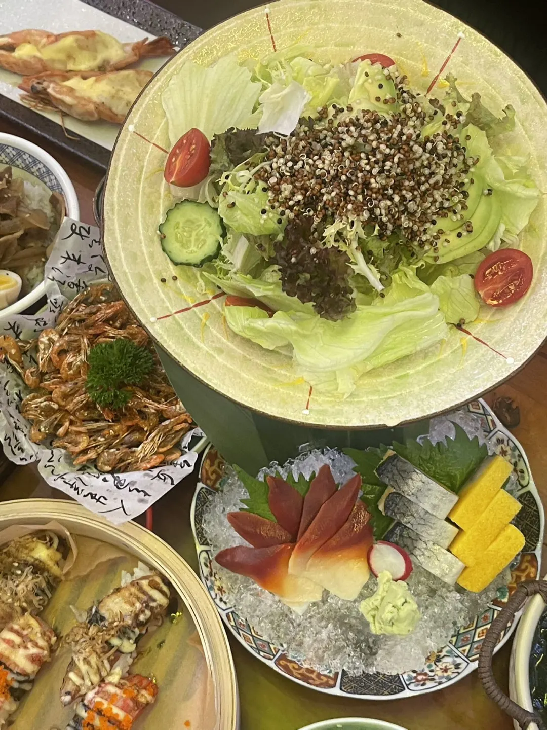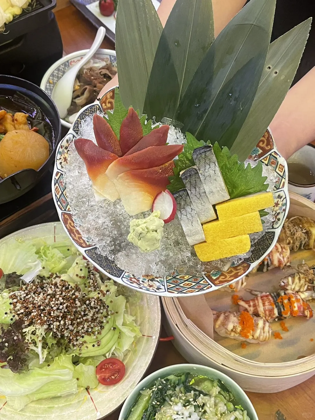 再来就是火炙寿司拼盘,每一口都是现点现做,火枪轻轻一炙,鱼生的鲜美加上微焦的饭团,口感层次分明,新鲜得仿佛在海边!🌊