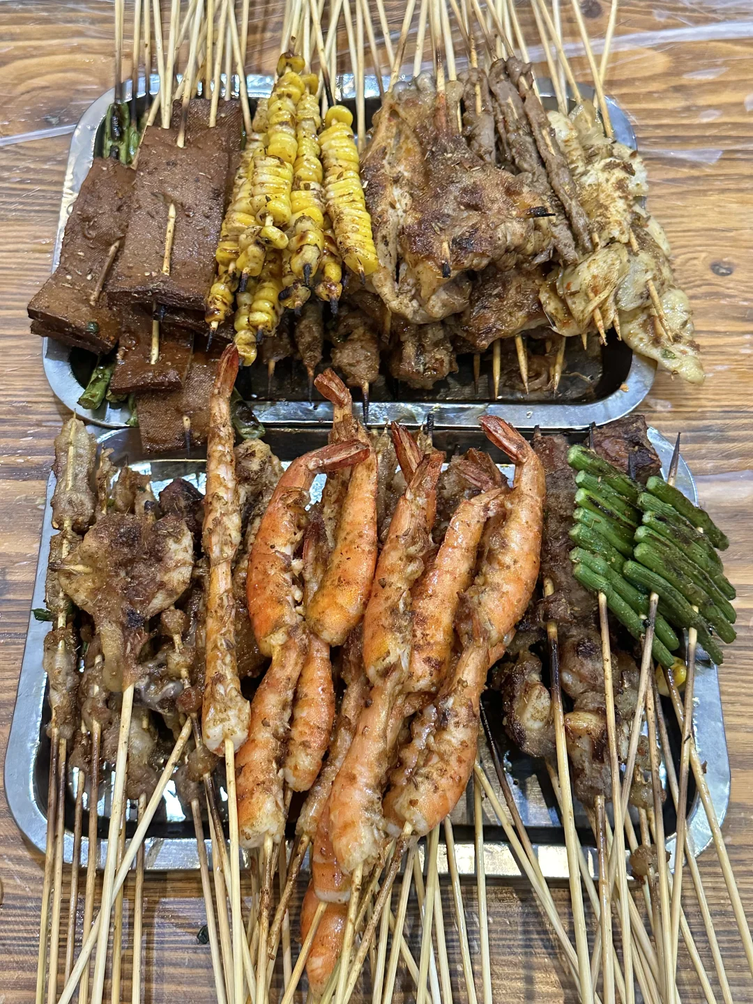 在长沙开了25年的老店,很多本地人来吃,叫(香格里拉烧烤),不是朋友推荐我还真不知道,真的不是网红店哦!!!他们家的烤牛油真的巨巨巨好吃,是我在长沙吃过最好吃的,奶香奶香的!还有蒜苗、基围虾、鸭掌筋、贡丸…都很好吃,种类也挺多的,路过书院南路一定要来试试!