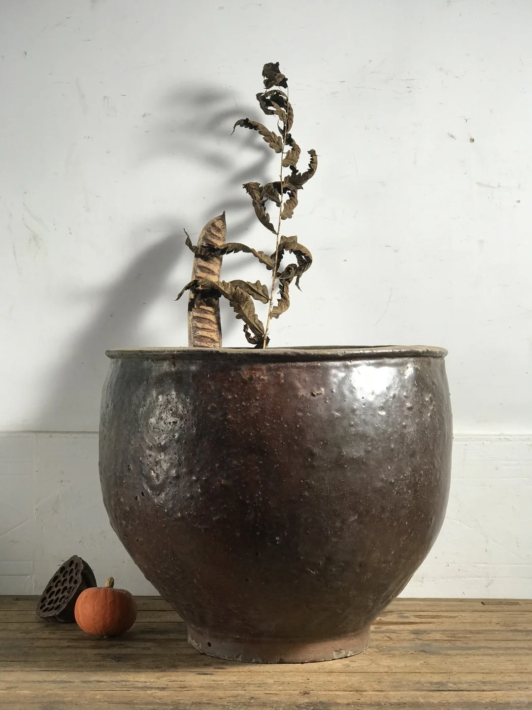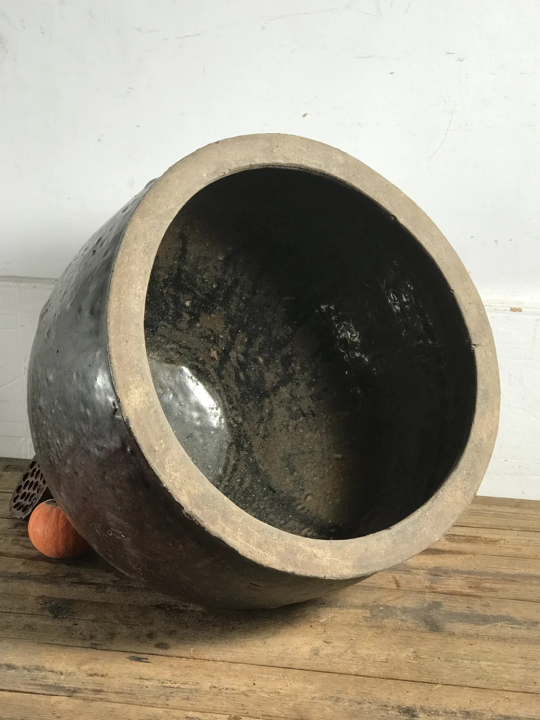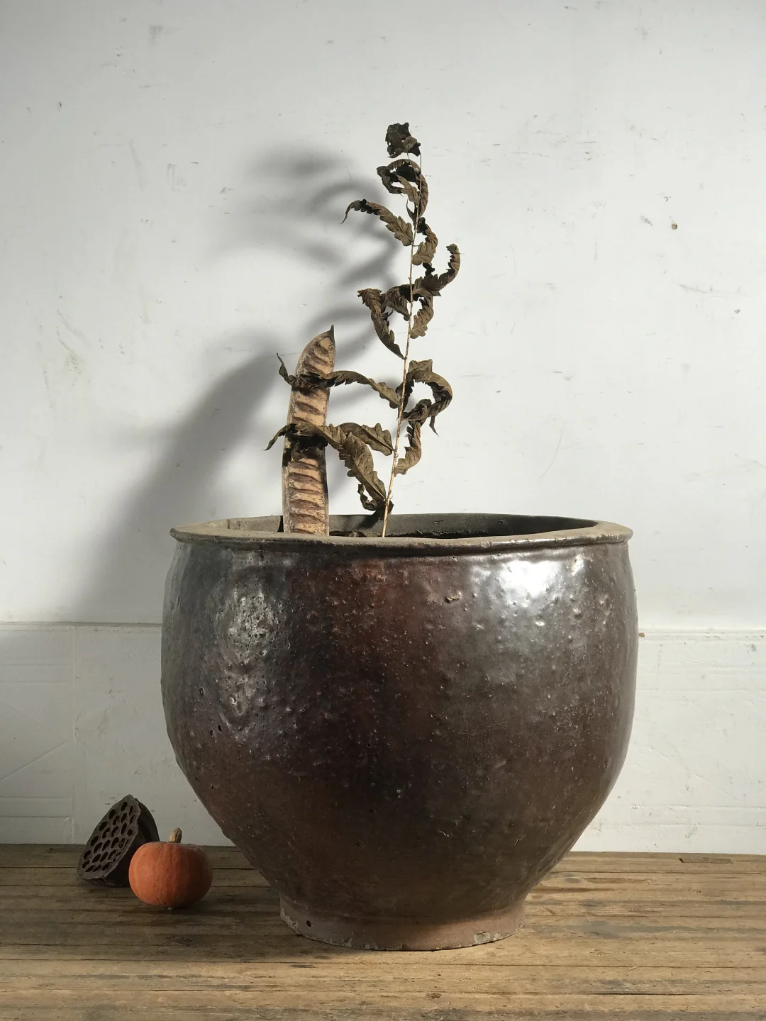 红釉陶缸、民宿、茶室极简侘寂摆件、大型绿植缸、养花养荷庭院流水布景摆设;40*40*34厘米高。口径34厘米宽。有补,不漏水,正常使用。