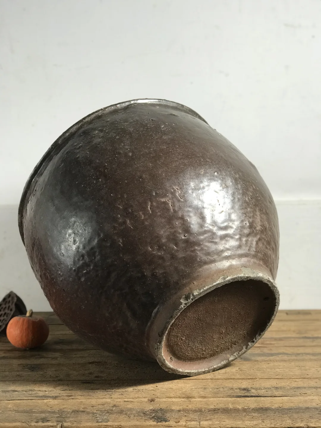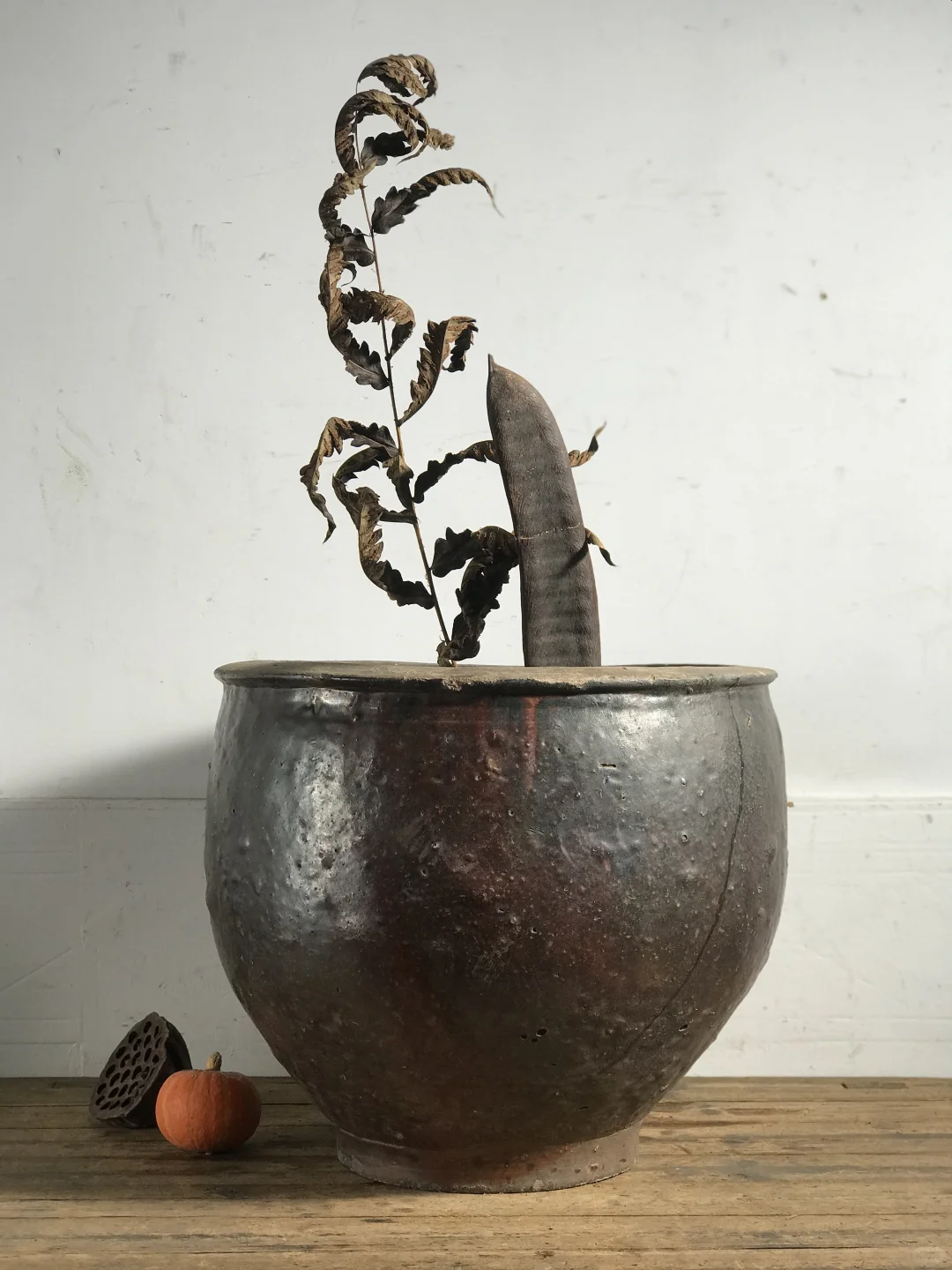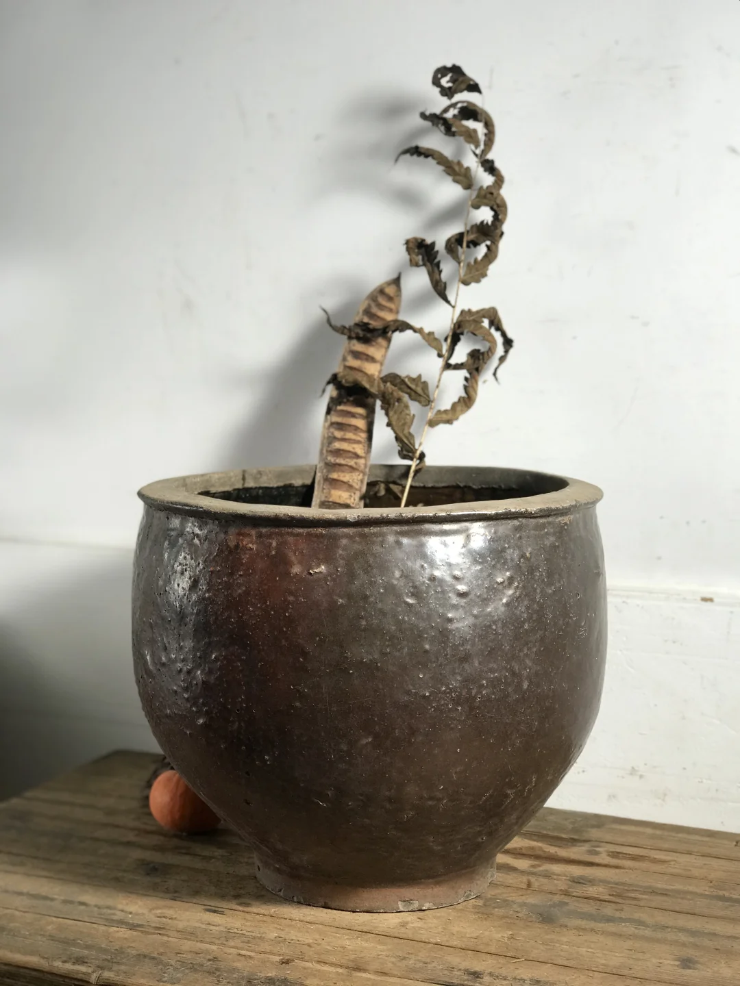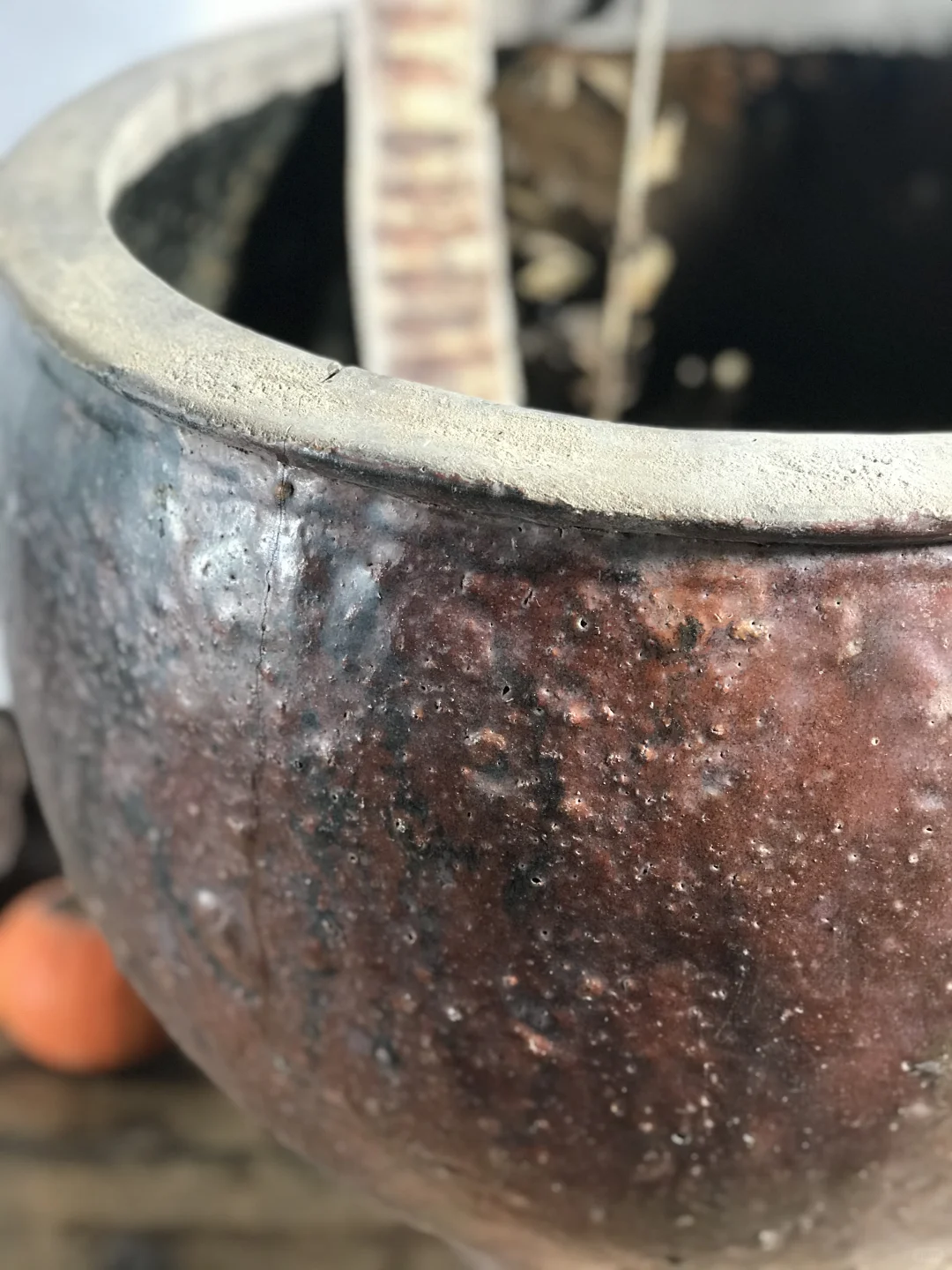 红釉陶缸、民宿、茶室极简侘寂摆件、大型绿植缸、养花养荷庭院流水布景摆设;40*40*34厘米高。口径34厘米宽。有补,不漏水,正常使用。