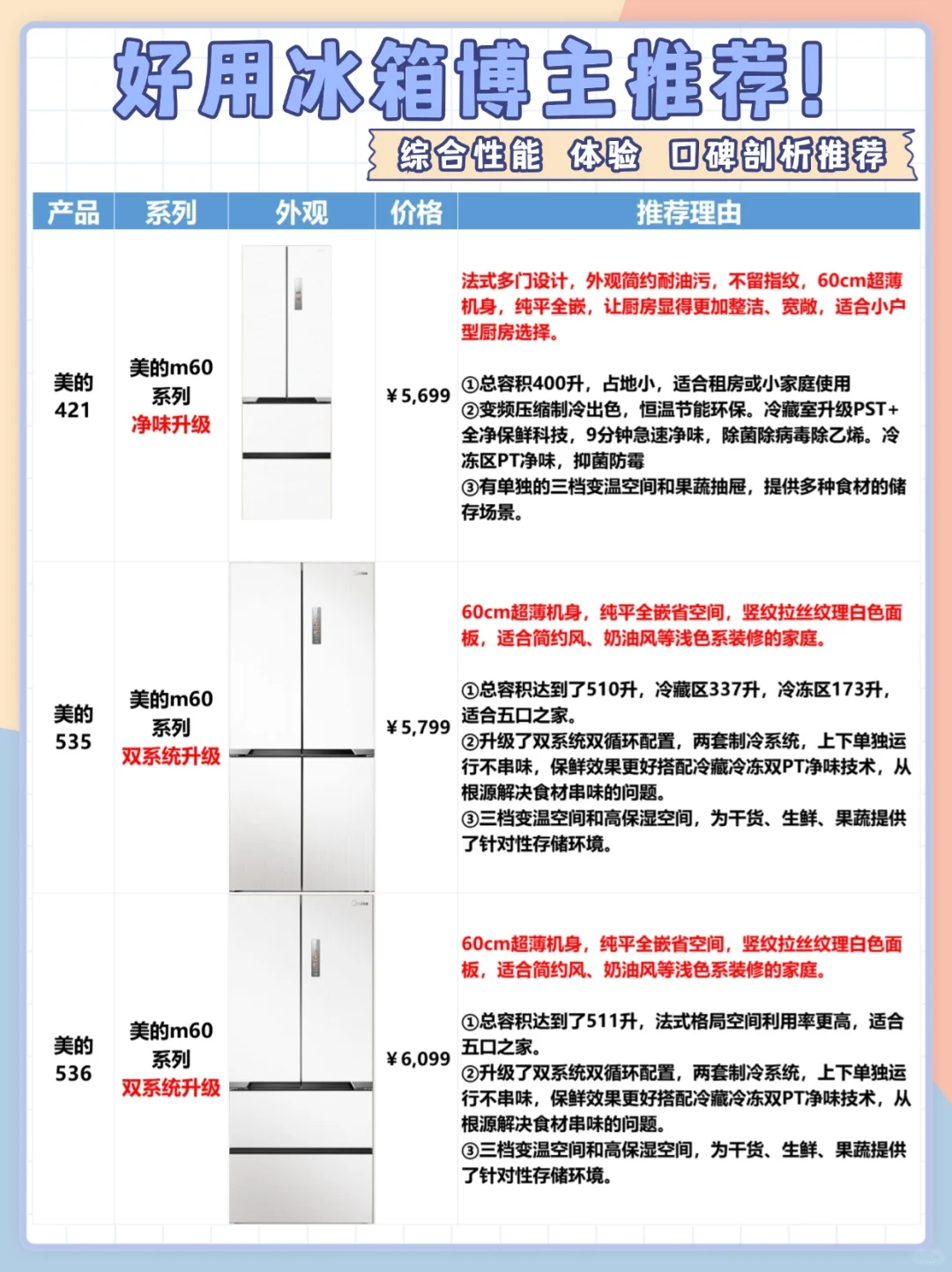 很多人在选择冰箱会纠结选哪款合适自己 不同冰箱到底有什么区别?冰箱怎么选❓ 花3天3夜,查阅官方数据、咨询官方客服和门店。研究了几十款冰箱,终于整理出了“冰箱推荐表”,告诉你如何选购。