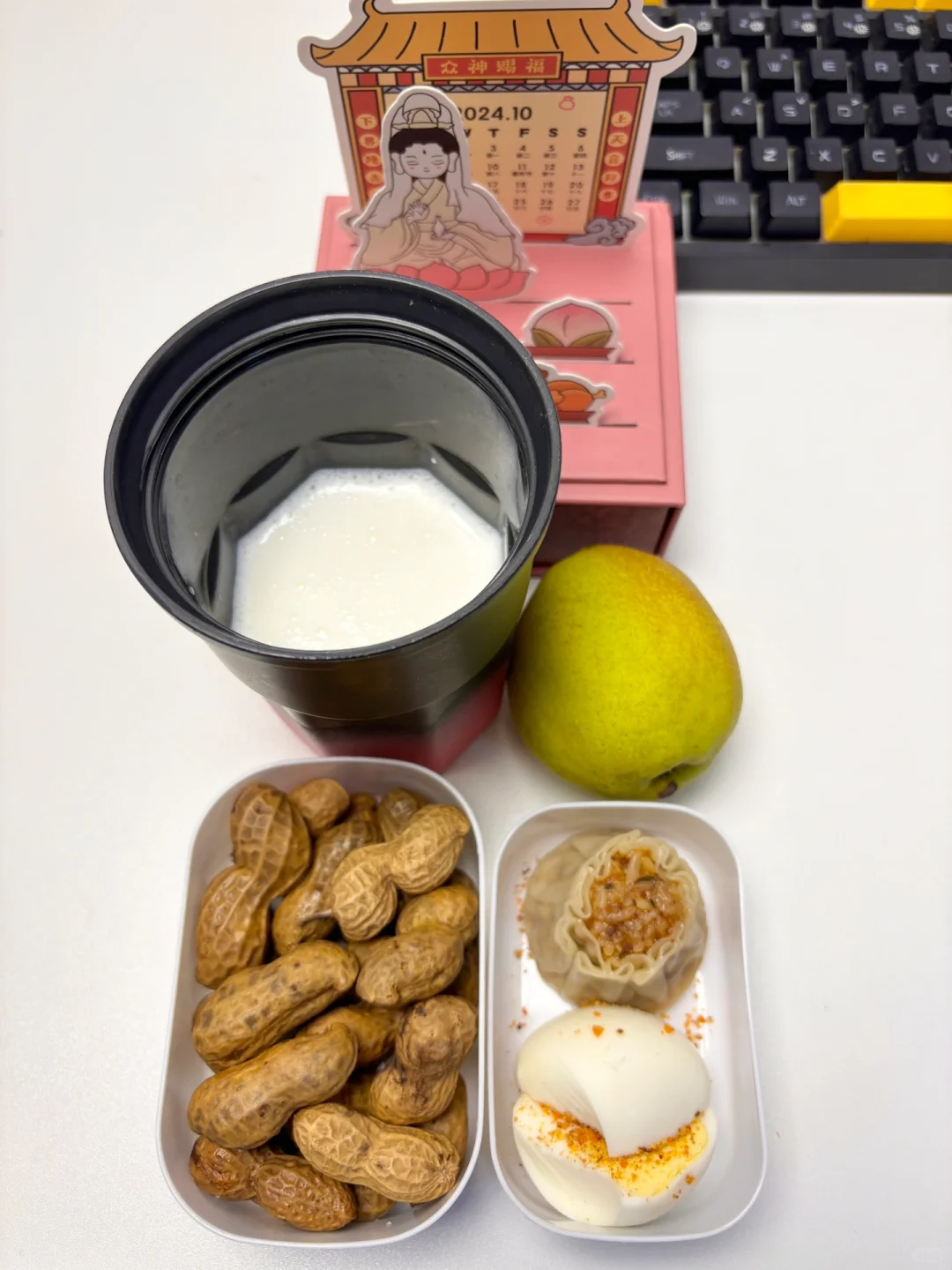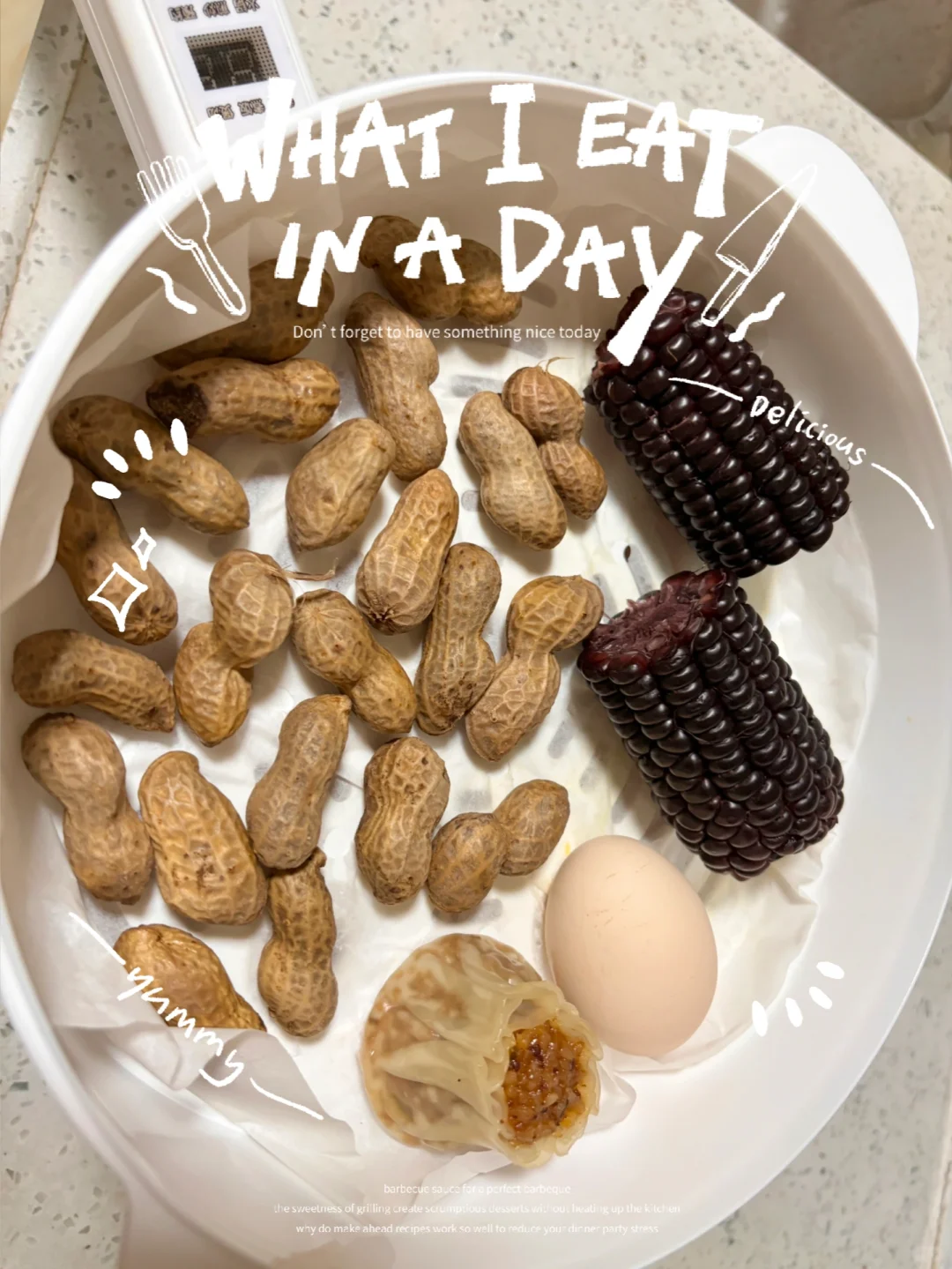 1⃣️早:花生、鸡蛋、烧麦、牛奶(2.2💰)