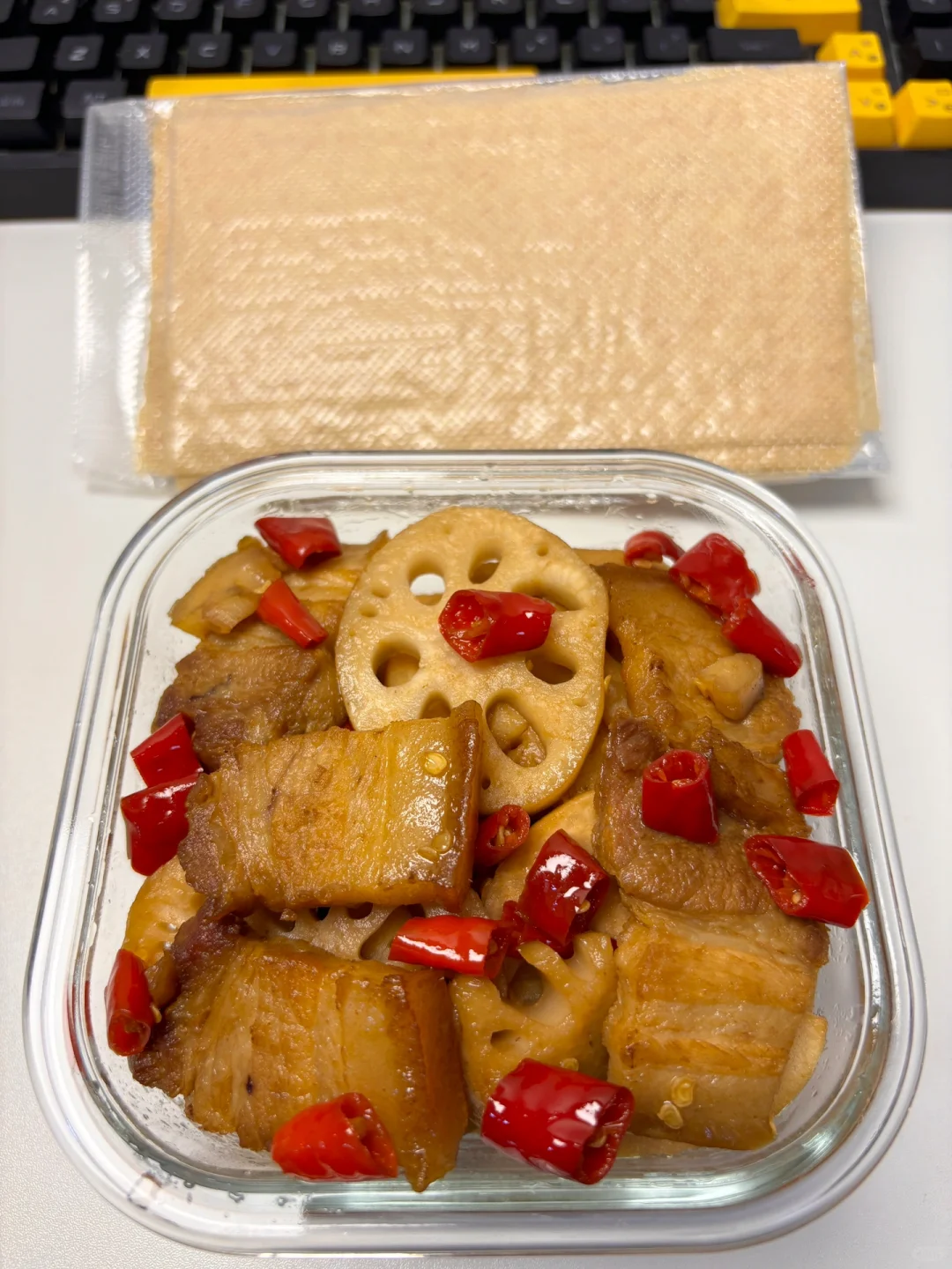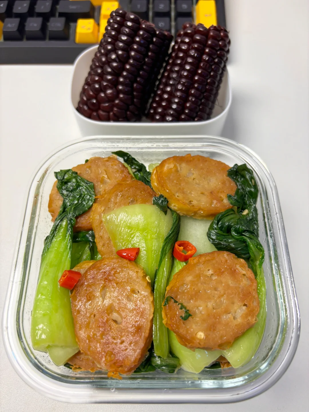 3⃣️晚:油菜炒肉卷、黑玉米(4💰)