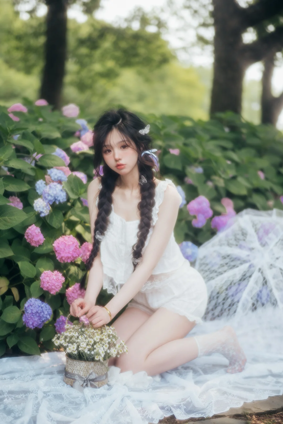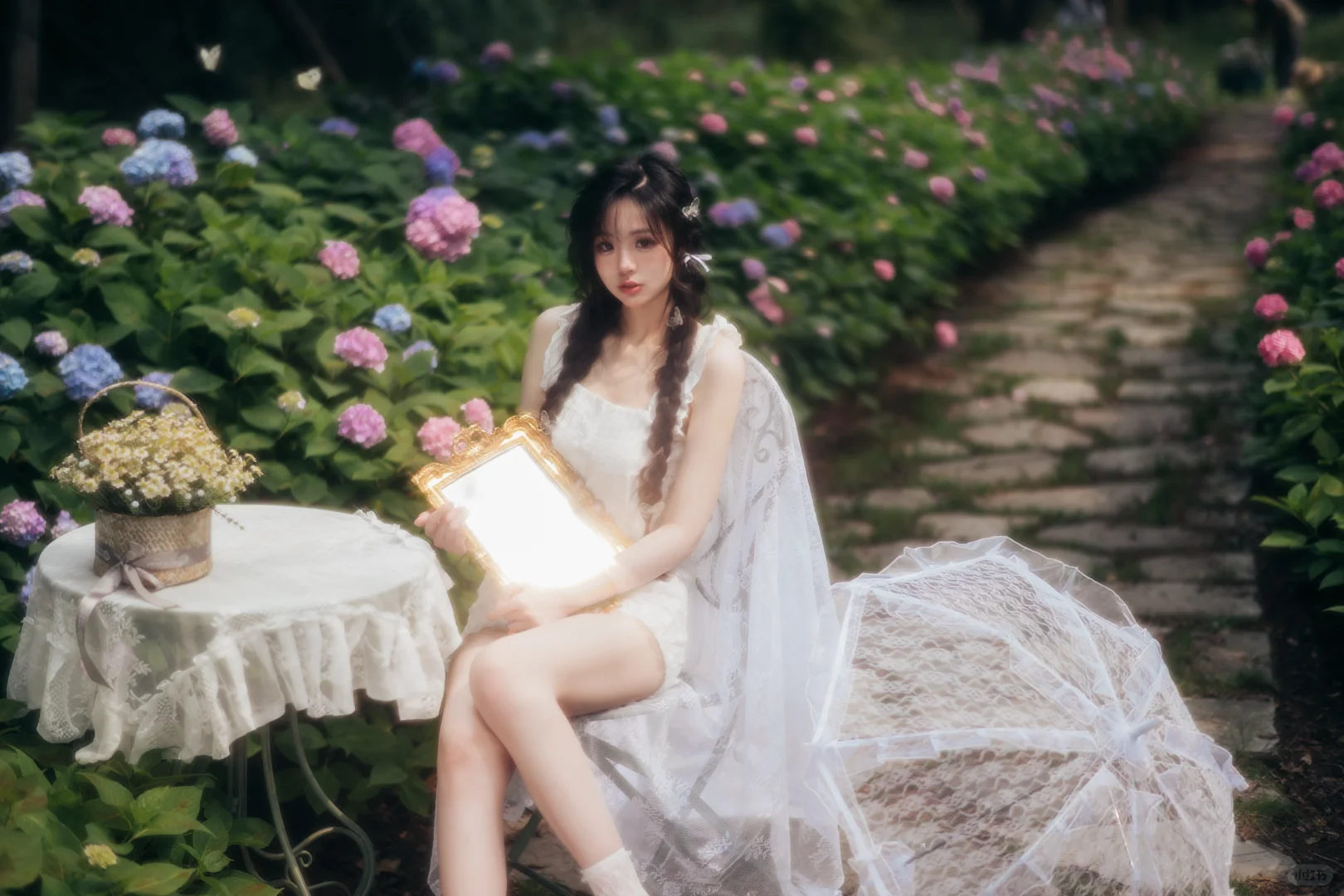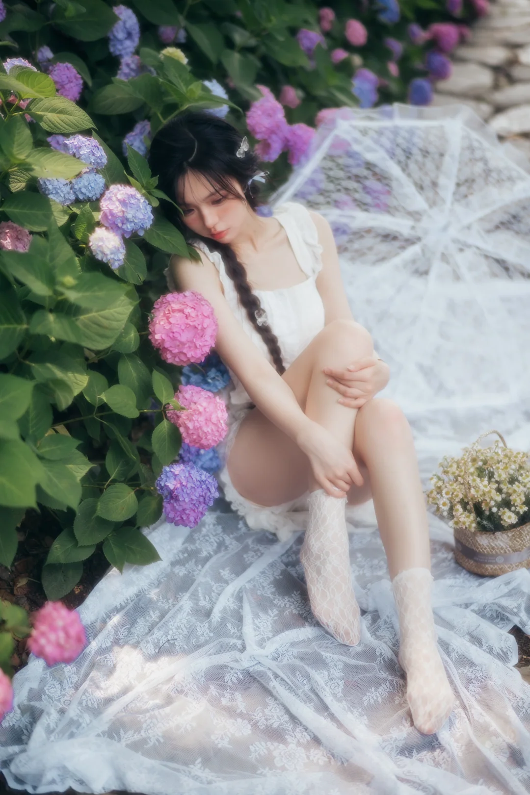 上海约拍 少女写真 氛围感 纯欲风 法式写真 甜妹 花海拍照 麻花辫 绣球花拍照 来拍照了