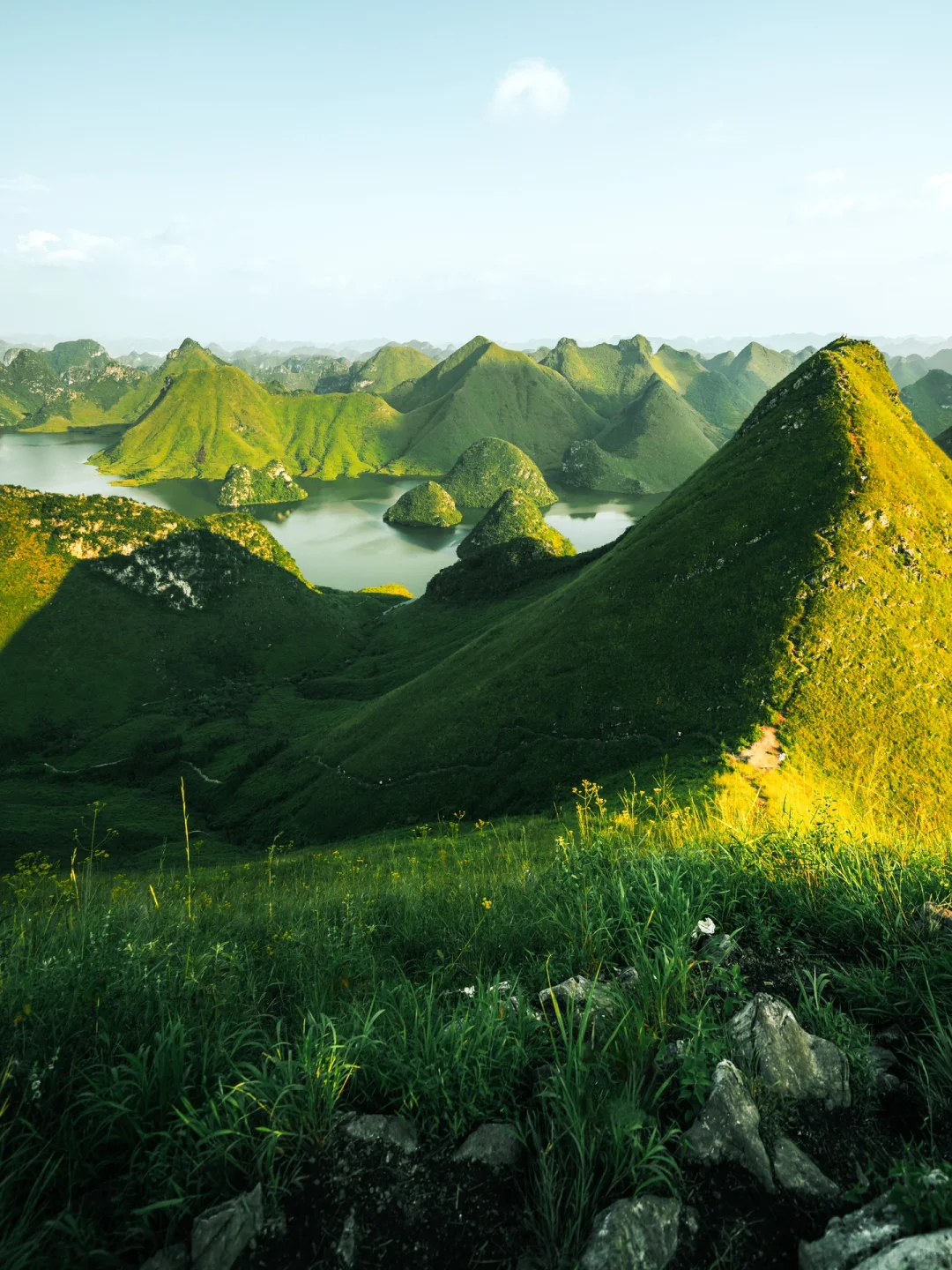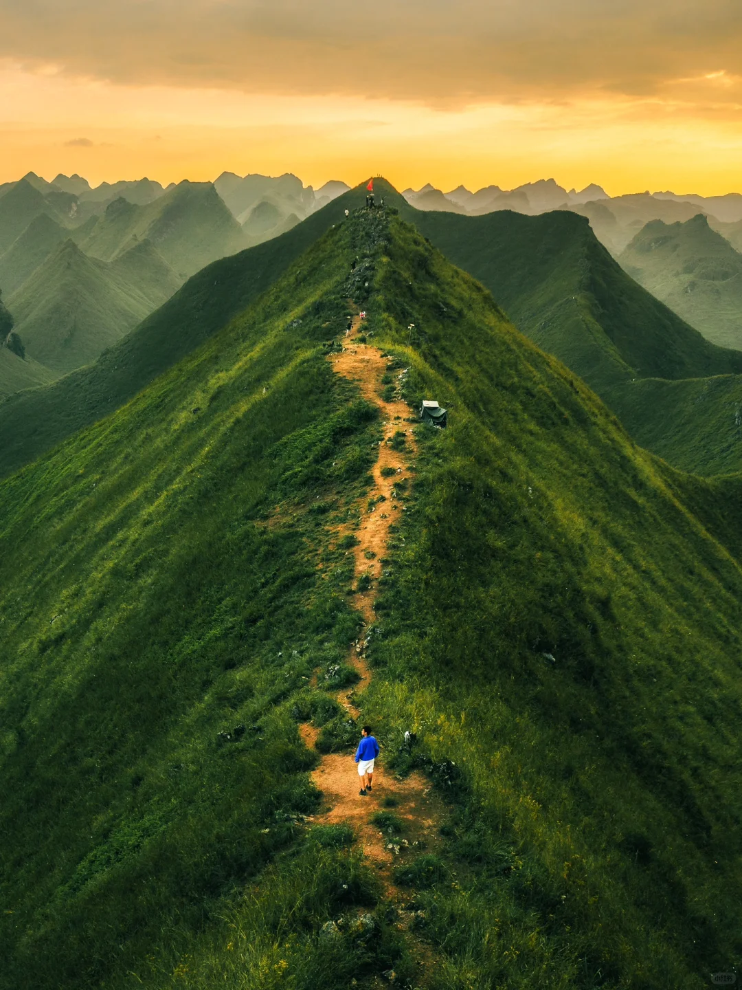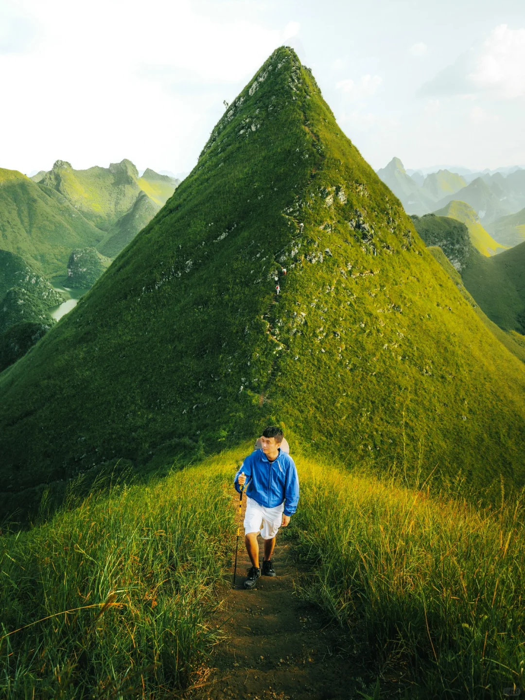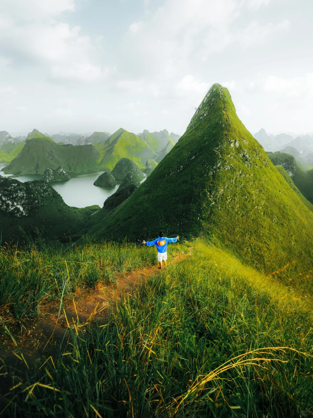 ⛰️剑龙山最近很火,因为地貌独特,这些山峰峥嵘耸立,形态各异,像利剑出鞘一般,加上这里是水库,风景很美!爬山虽然很累,但是站上山顶的那一刻,你会发现一切都是值得的! - ✅路线选择 ♻️大环线 有多个登山口,时间充裕的游客可以走大环线,不走回头路,耗时约4个多小时 💦水库 水库走上去约1个多小时,走到分岔路,1.向左边爬上去是距离水库最近的山头。2.向右边爬上去可以和大环线路段连接起来,是一个又一个小山头经山脊连接,山顶有旗和路牌,人可以在山脊上走,两侧风景不同,一侧水库山景,一侧田园山景。我走的是这条路线,拍完照原路下山返回 - ⛰️景点:剑龙山 📍地点:广西壮族自治区崇左市天等县(直接搜剑龙山停车场导航过去) 🚗交通:自驾,附近没有公共交通 🏨住宿:天等县城距离景点约40分钟车程 - ⚠️TIPS 1.要穿防滑鞋,带登山杖,上山容易下山难,脚下容易打滑 2.穿长裤!防晒衣!可以带遮阳帽,山顶没有躲太阳的地方,还是挺晒的 3.爬山过程中也会用到手,可以带手套防脏防磨 4.水的话可以多带几瓶 5.一定要带雨伞,这次去拍着拍着突然下了大雨,直接淋了一个多小时的雨才下山