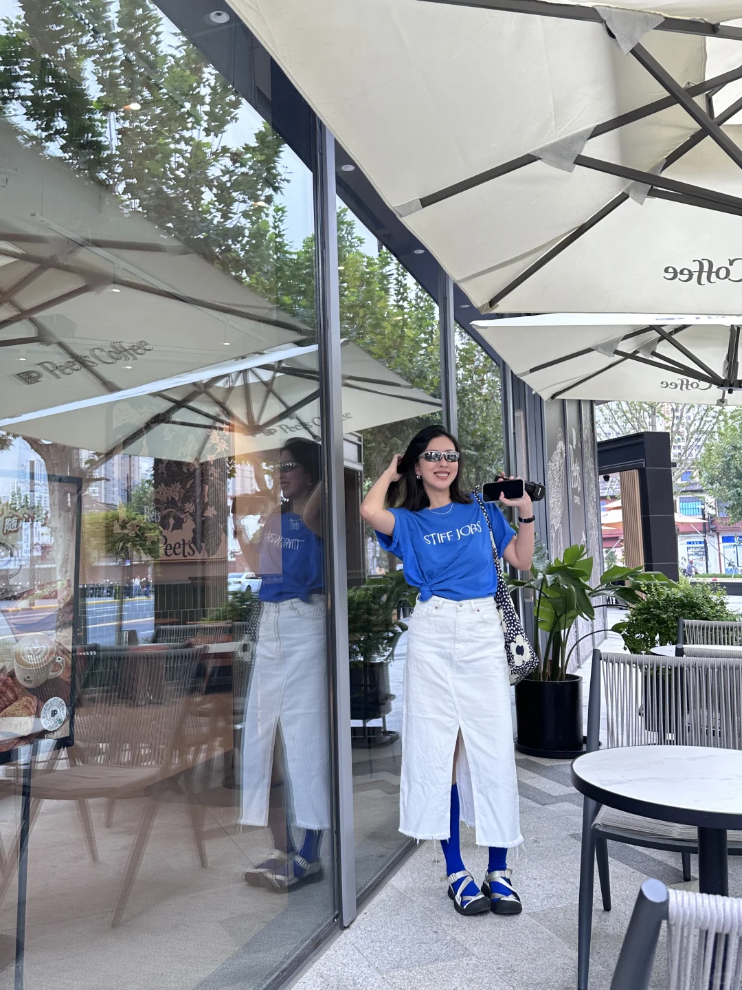 上海 36岁 36岁长这样 ootd每日穿搭 蓝色系 蓝色系穿搭 酒 爱喝酒的女生